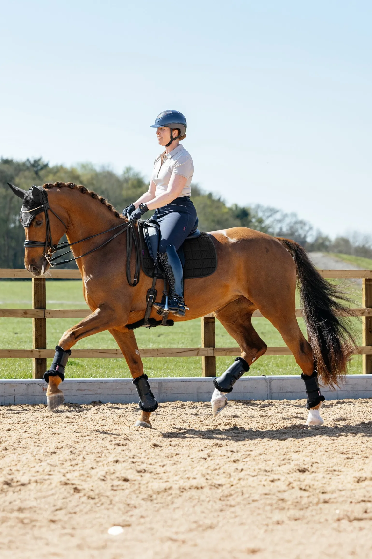 Die ideale Schabracke für Training und Turniere bei warmem Wetter – die technisch fortschrittlichen Materialien dieser kühlenden Schabracke sorgen für maximale Luftzirkulation und optimale Temperaturregulierung unter dem Sattel. Die 3D-Mesh-Oberseite mit perforiertem Schaumstoffkern ermöglicht maximale Belüftung während der Bewegung, sodass warme Luft entweichen und kühle Luft eindringen kann. Das innovative „Feel Cool“-Futter ist mit einer feuchtigkeitsaktivierten Kühltechnologie durchzogen, die Wärme von der Haut des Pferdes ableitet und durch das Gewebe entweichen lässt. Je mehr dein Pferd arbeitet, desto stärker wirkt der kühlende Effekt. Ein flexibler Mesh-Einsatz entlang der Wirbelsäule reduziert den Druck auf Widerrist und Rücken und fördert gleichzeitig die Luftzirkulation im Wirbelkanal.