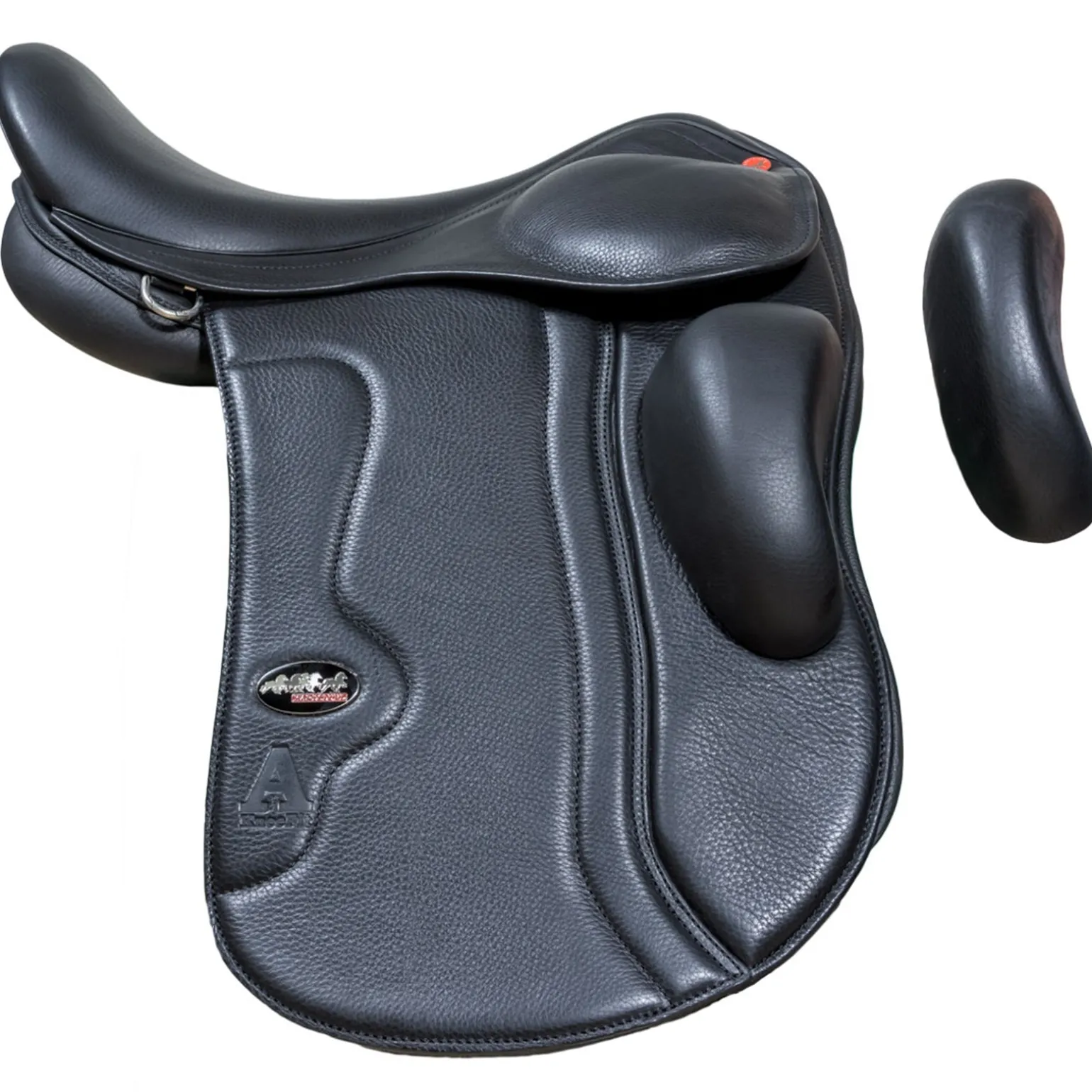 Ein sehr schöner Sattel mit verstellbaren und austauschbaren Kniepauschen sowie austauschbarem Kopfeisen in einem sehr flexiblen synthetischen High-Tech-Sattelbaum mit hervorragender Stoßdämpfung und Gewichtsverteilung. Die Knierollen sind mit Schrauben befestigt, wodurch Winkel und Position einfach eingestellt und die Knierollen gegen ein anderes Modell ausgetauscht werden können. Im Lieferumfang sind zwei Sätze Kniepauschen enthalten. Der Sitz ist sehr bequem gepolstert und bietet dem Reiter eine gute Unterstützung sowie eine gute Bewegungsfreiheit. Einsätze mit einem speziellen Schulterfreiheitsschnitt sorgen für eine optimale Beinwirkung und fördern zudem einen guten Kontakt zwischen Pferd und Reiter. Der Sattel hat eine moderne Beflockung mit mehreren Schichten Latex, die sich der Form des Pferdes anpasst und das Gewicht optimal verteilt. Der breite Kanal bietet zusammen mit einem speziellen Rückenausschnitt an der Vorderseite der Laschen eine gute Freiheit für die Wirbelsäule des Pferdes sowie für die Schulterblätter, was einen guten Rückenschwung des Pferdes fördert, was wiederum eine größere Beinaktivität stimuliert. Hergestellt aus hochwertigem europäischem Leder. Inklusive Sattelüberzug. 2 lange Gurte mit Y-System.