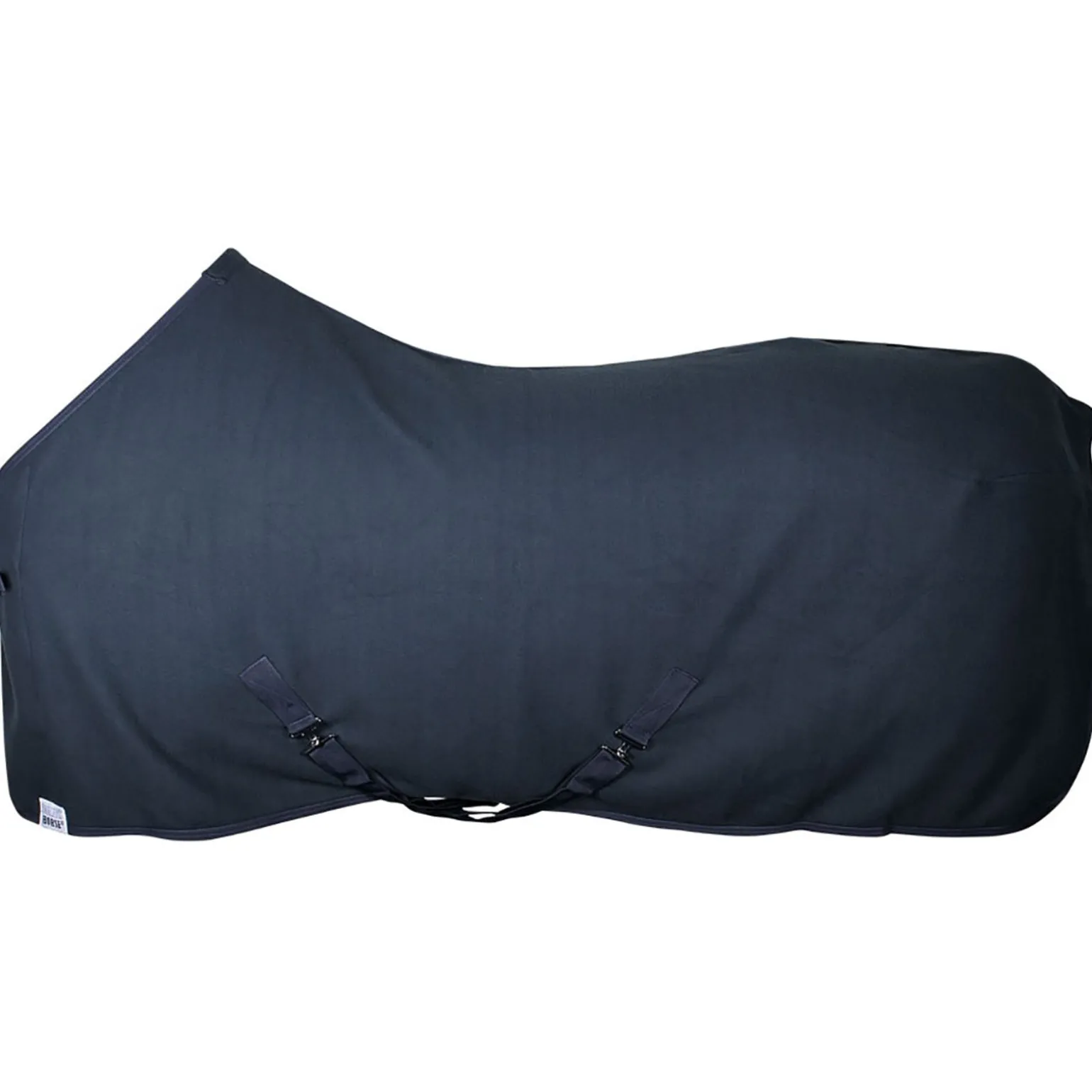 Fleecedecke mit einem Brustverschluss, Schweifriemen und Kreuzbegurtung.