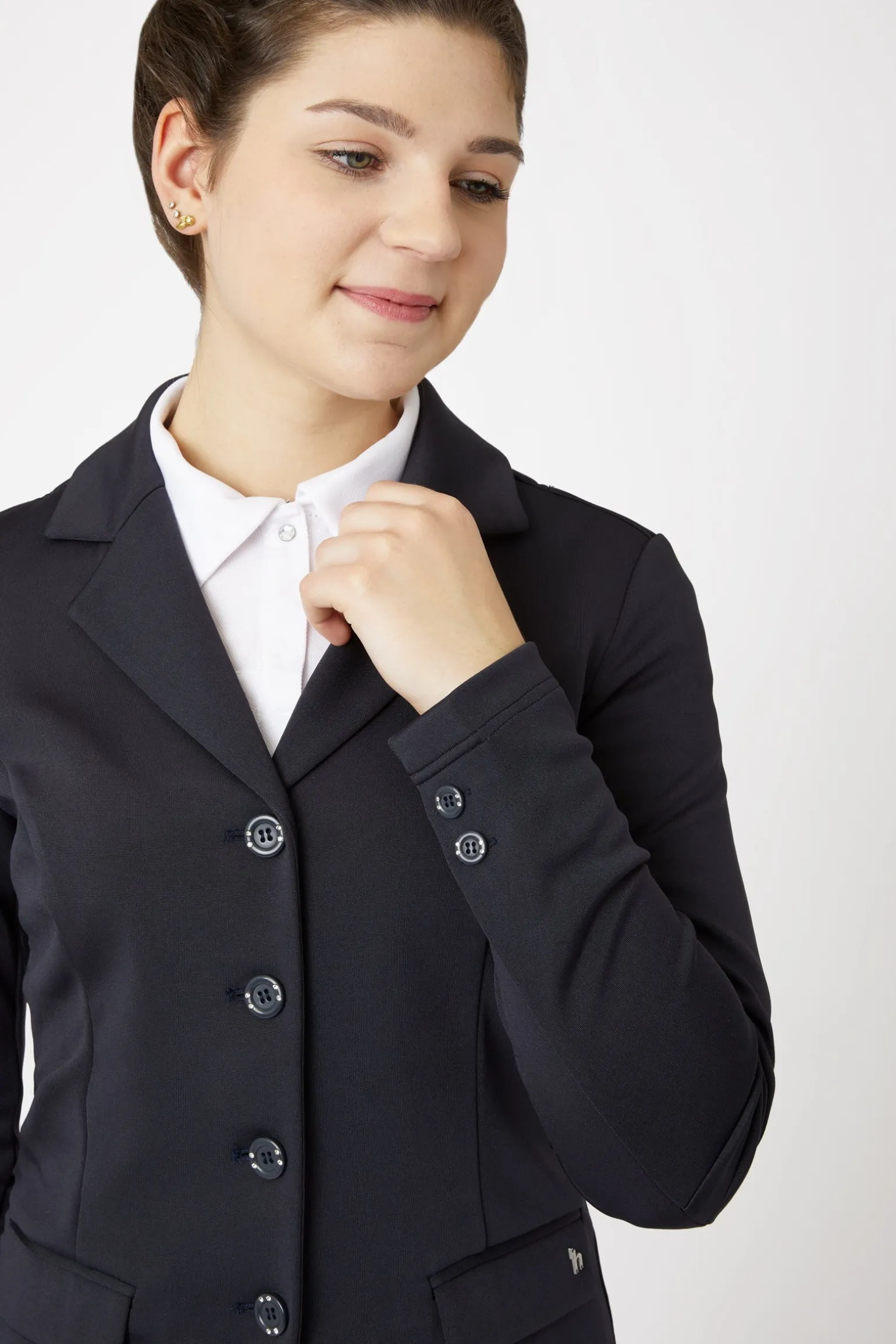 Das Horze Ada Turnierjackett ist aus weichem, bequemem Stoff gefertigt, der deine Bewegungsfreiheit nicht einschränkt. Klassischer Stil und Farben sind die perfekte Ergänzung für dein Turnieroutfit, und machen das Jackett zum dauerhaften Begleiter. Das dezente Metall-Logo gibt ihm den letzten Schliff. Kombiniere die Jacke mit deiner liebsten Turnierreithose und deinen Reitstiefeln für einen tollen Auftritt.