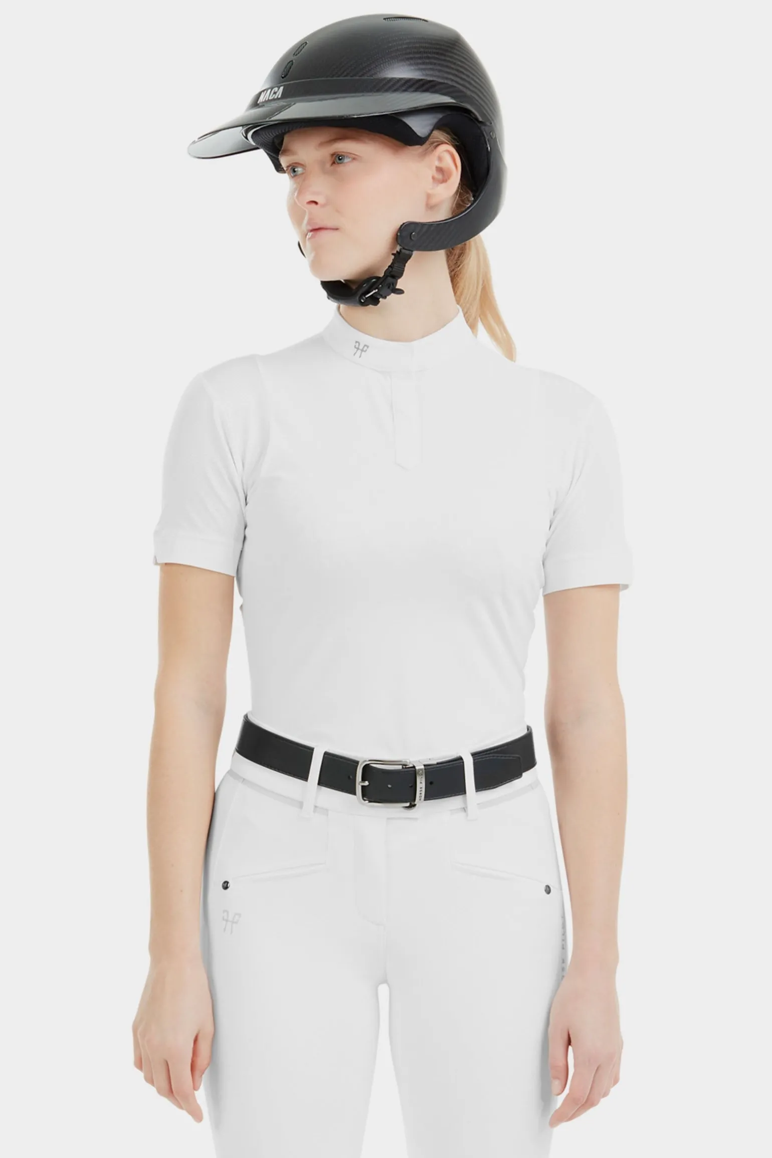 Das Zwei-Materialien-Design des Aerolight Shirts bietet Atmungsaktivität und Bewegungsfreiheit. Ausgestattet mit Horse Pilots Aerotech-Technologie ist ein Mesh-Material strategisch im Rücken, an den Ärmeln und an den Armausschnitten platziert, um Wärme bei intensiver Anstrengung effektiv abzuleiten. Das zweite Material, das auf der Brust und dem oberen Rücken positioniert ist, ist nicht nur hoch atmungsaktiv, sondern schützt dank der UV-Block-Technologie auch vor UV-Strahlen. Mit Bi-Stretch und ergonomischer Schulterpasse wurde das Aerolight-Hemd entworfen, um beim Reiten optimale Bewegungsfreiheit zu bieten. Die Form des Handgelenks wurde entwickelt, um Bewegungen beim Reiten zu erleichtern. Der Kragen entspricht Turnieranforderungen und lässt sich mit einem Magnetknopf für einen minimalistischen Look öffnen. Und weil ökologische Verantwortung eine zentrale Rolle in unseren Werten spielt, ist das Material nach OEKO-TEX® Standard 100 zertifiziert.