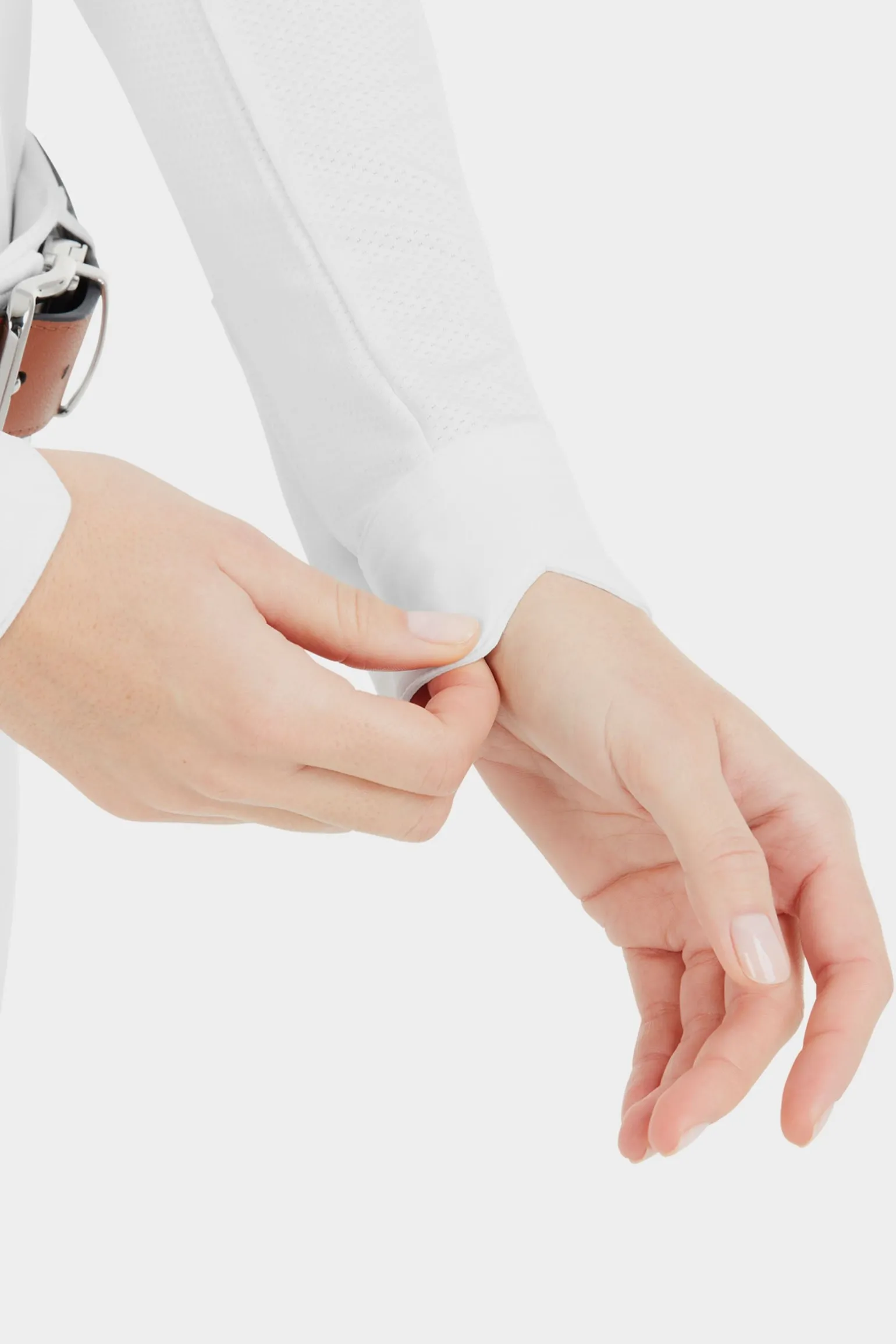 Das Zwei-Materialien-Design des Aerolight-Shirts bietet Atmungsaktivität und UV-Schutz für Wettbewerbe bei warmem Wetter. Ausgestattet mit Horse Pilots Aerotech-Technologie, ist ein Mesh-Material strategisch im unteren Rückenbereich, den Ärmeln und den Armausschnitten platziert, um Wärme bei intensiver Anstrengung effektiv abzuleiten. Das zweite Material, das auf der Brust und dem oberen Rücken positioniert ist, ist nicht nur hoch atmungsaktiv, sondern schützt dank der UV-Block-Technologie auch vor UV-Strahlen. Mit Bi-Stretch und ergonomischer Schulterpasse wurde das Aerolight-Hemd entworfen, um beim Reiten optimale Bewegungsfreiheit zu bieten. Die Form des Kragens entspricht Turnieranforderungen und lässt sich mit einem Magnetknopf für einen minimalistischen Look öffnen.Und weil ökologische Verantwortung eine zentrale Rolle in Horse Pilots Werten spielt, ist das Material nach OEKO-TEX® Standard 100 zertifiziert.