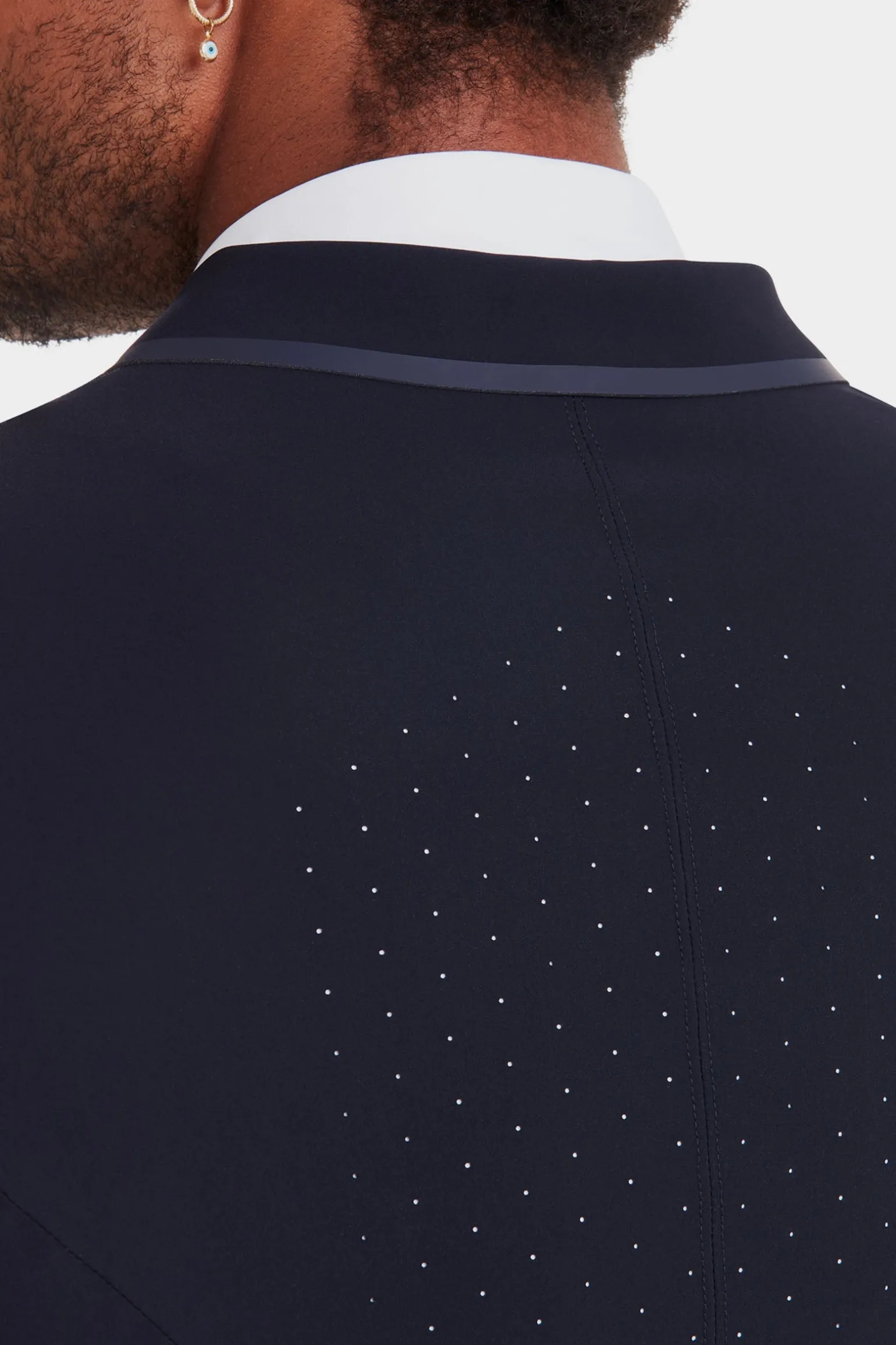Diese für die Leistung konzipierte Jacke verbindet Eleganz und technische Eigenschaften mit ihren Laserperforationen (Rücken, unter den Armen, Taille) für eine optimale Belüftung. Sie verfügt über Rückenschlitze, Magnetknöpfe und austauschbare Knöpfe für einen praktischen und raffinierten Stil beim Wettkampf. Die Knöpfe sind zum Anschrauben, es ist hilfreich, den Sitz vor und nach dem Waschen in der Maschine zu überprüfen.