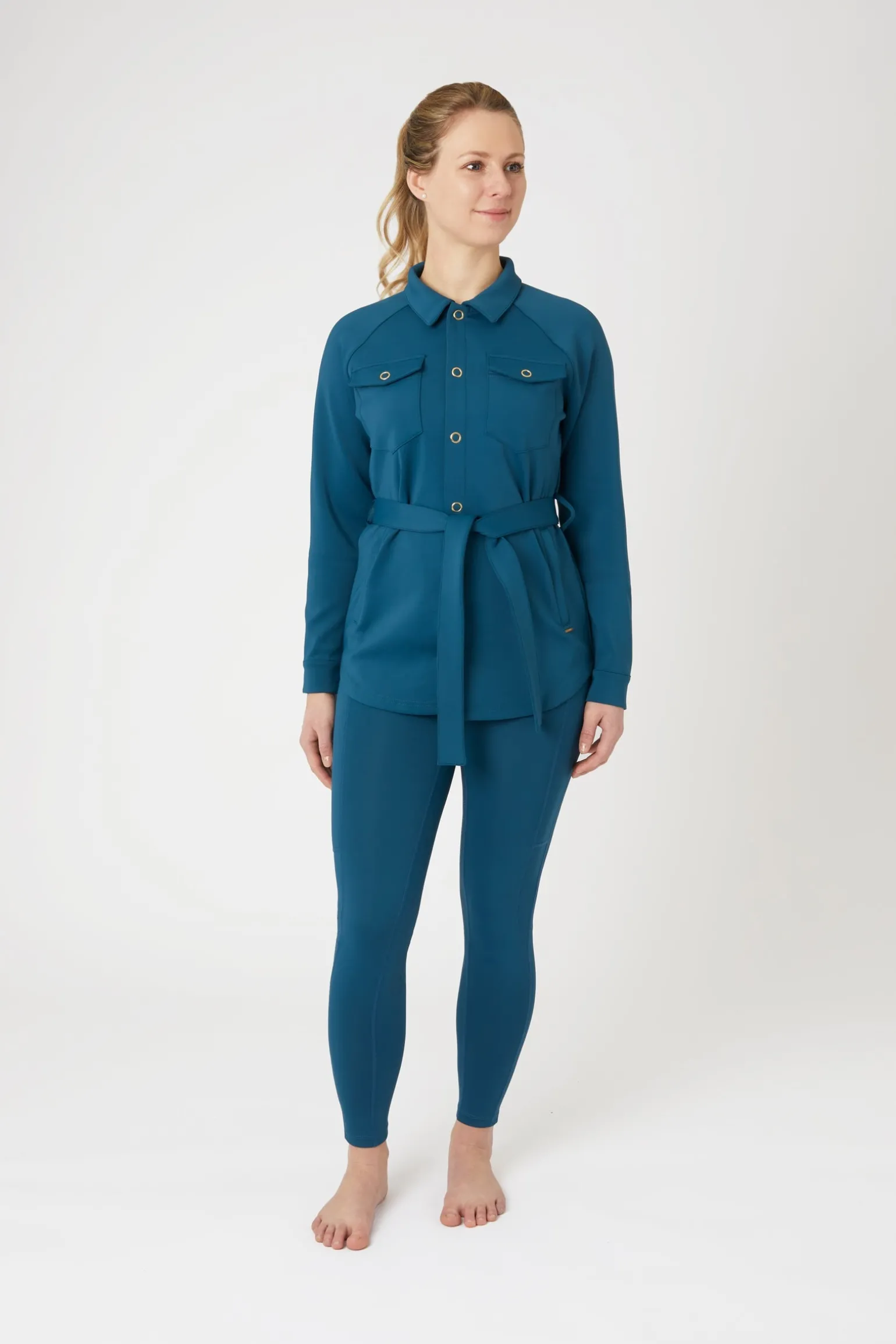 Die Alyssa Hemdjacke für Damen ist eine Kombination aus einem klassischen Hemd und einer leichten Jacke. Der lockere Schnitt kann dank des abnehmbaren Gürtels trotzdem schmeichelhaft sein. Geräumige Brusttaschen und Reißverschlusstaschen auf der Vorderseite bieten dir viel Platz, um Werkzeuge oder Wertsachen schnell zu verstauen. Der leichte Scuba-Stoff ist atmungsaktiv und schmutzabweisend und bietet UV-Schutz, was ihn perfekt für Tage auf dem Hof macht.