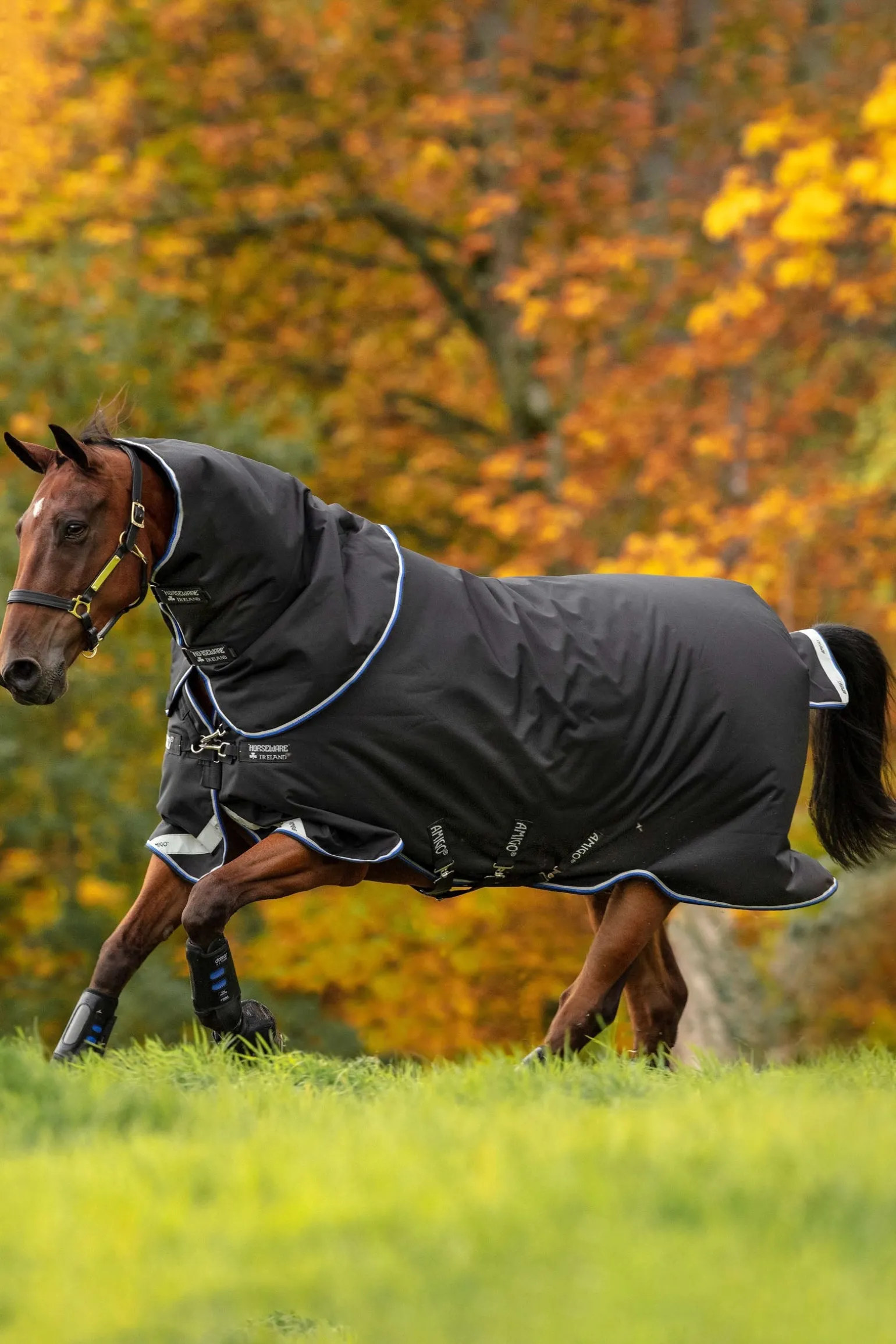 Die Amigo® Bravo 12 Plus (250 g Medium) Outdoordecke ist eine äußerst vielseitige, wasserdichte und atmungsaktive Decke, die dir dank ihres einzigartigen und cleveren Designs zahlreiche Möglichkeiten in einer einzigen Decke bietet. Gefertigt aus starkem, wasserdichtem und atmungsaktivem 1200D Polyester-Außenmaterial mit 250 g Faserfüllung für zusätzliche Wärme. Diese Decke ist kompatibel mit dem Horseware®-Linersystem, sodass du bei sinkenden Temperaturen ganz einfach mehr Wärme hinzufügen kannst. Das glanzverstärkende Innenfutter hilft, Reibung und Scheuern zu minimieren. Jedes Detail dieser Decke ist darauf ausgelegt, dir und deinem Pferd den Alltag zu erleichtern! Das sichere und einfach zu bedienende V-Front-Verschlusssystem von Horseware, der Surefit Neck und das einzigartige doppelte Beinausschnitt-Design ermöglichen deinem Pferd uneingeschränkte Bewegungsfreiheit beim Laufen und Grasen. Drei Kreuzgurte, Schweiflatz und Schweifriemen sorgen für einen sicheren und bequemen Sitz. Im Lieferumfang enthalten ist eine abnehmbare Kapuze für zusätzliche Flexibilität sowie reflektierende Streifen für bessere Sichtbarkeit beim Raus- und Reinführen oder bei abendlichen Kontrollen mit der Taschenlampe. Amigo® deckt die Bedürfnisse von dir und deinem Pferd vollständig ab!