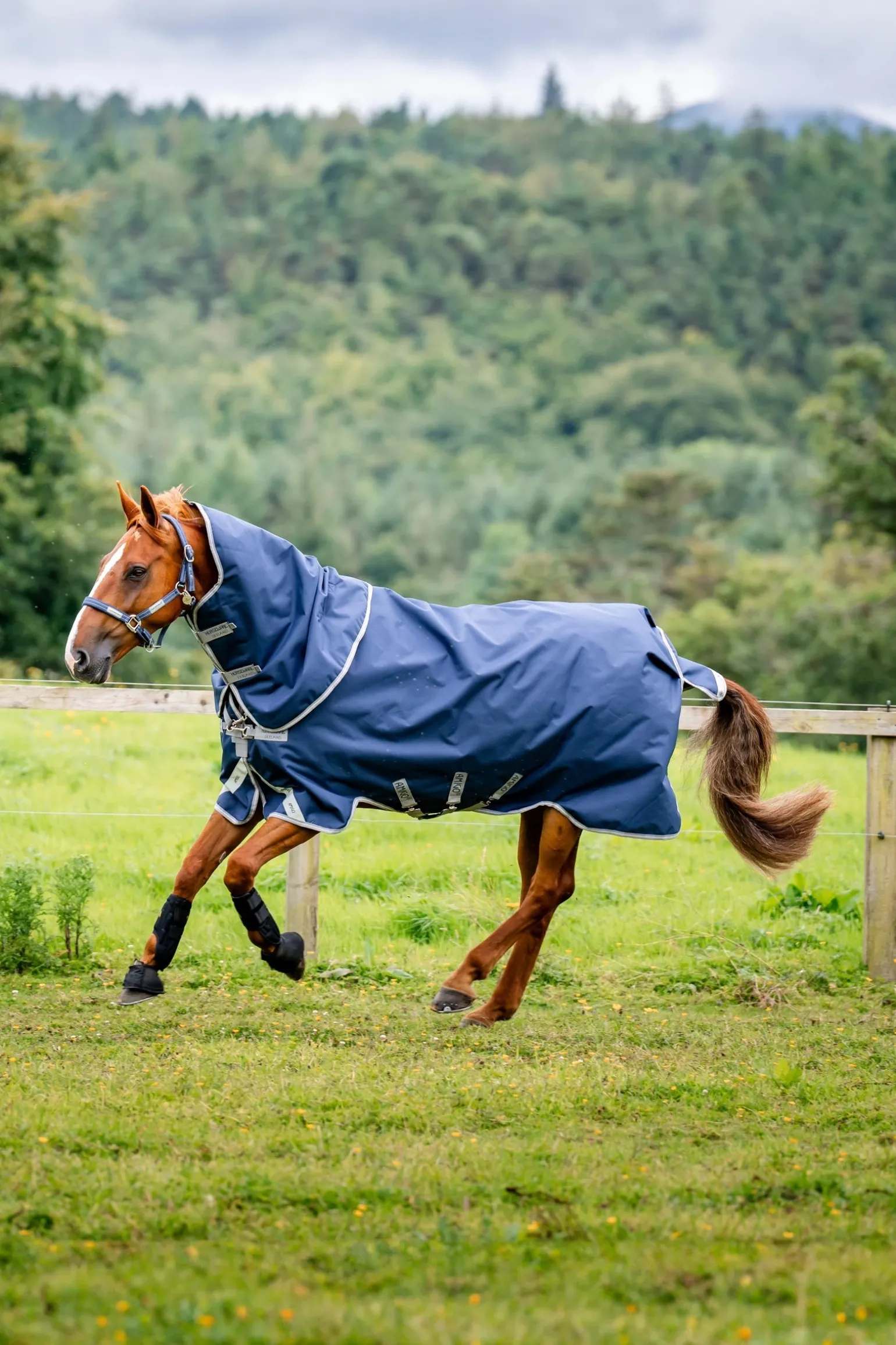 Schwere Weidedecke, die dem Wind trotzen und starker Nutzung widerstehen kann.