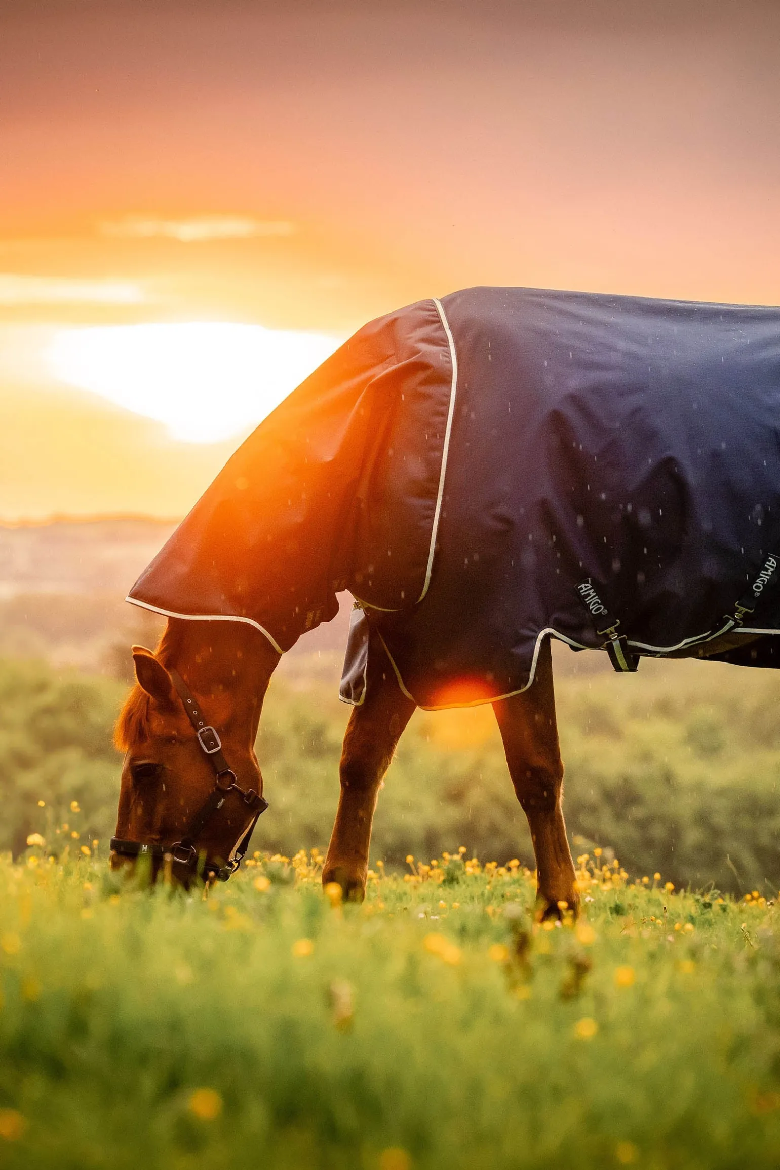 Die Amigo® Ripstop 900D Plus Outdoordecke (200 g Medium) bietet erstklassigen Schutz und Komfort für dein Pferd. Das wasserdichte und atmungsaktive Außenmaterial aus 900D Ripstop Polyester sowie 200 Gramm Faserfüllung sorgen dafür, dass dein Pferd bei jedem Wetter trocken und warm bleibt. Diese Decke wird mit abnehmbarem Halsteil und Schlaufen für das Horseware® Liner System geliefert, sodass sich zusätzliche Wärme und Schutz bei kaltem Wetter einfach ergänzen lassen. Gerader Frontverschluss und Vorderbeinausschnitte erhöhen den Komfort, indem sie mehr Bewegungsfreiheit ermöglichen. Das glanzverstärkende, antistatische und antibakterielle Innenfutter, zwei Kreuzgurte, optionale Schlaufen für Beinschnüre und ein Schweifriemen sind Eigenschaften, die du und dein Pferd schätzen werdet. Wähle die Amigo® Ripstop 900D Plus Outdoordecke (200 g Medium) für mittlere Wärmeisolierung, die höchsten Komfort mit Vielseitigkeit verbindet und dein Pferd trocken, warm und geschützt hält.