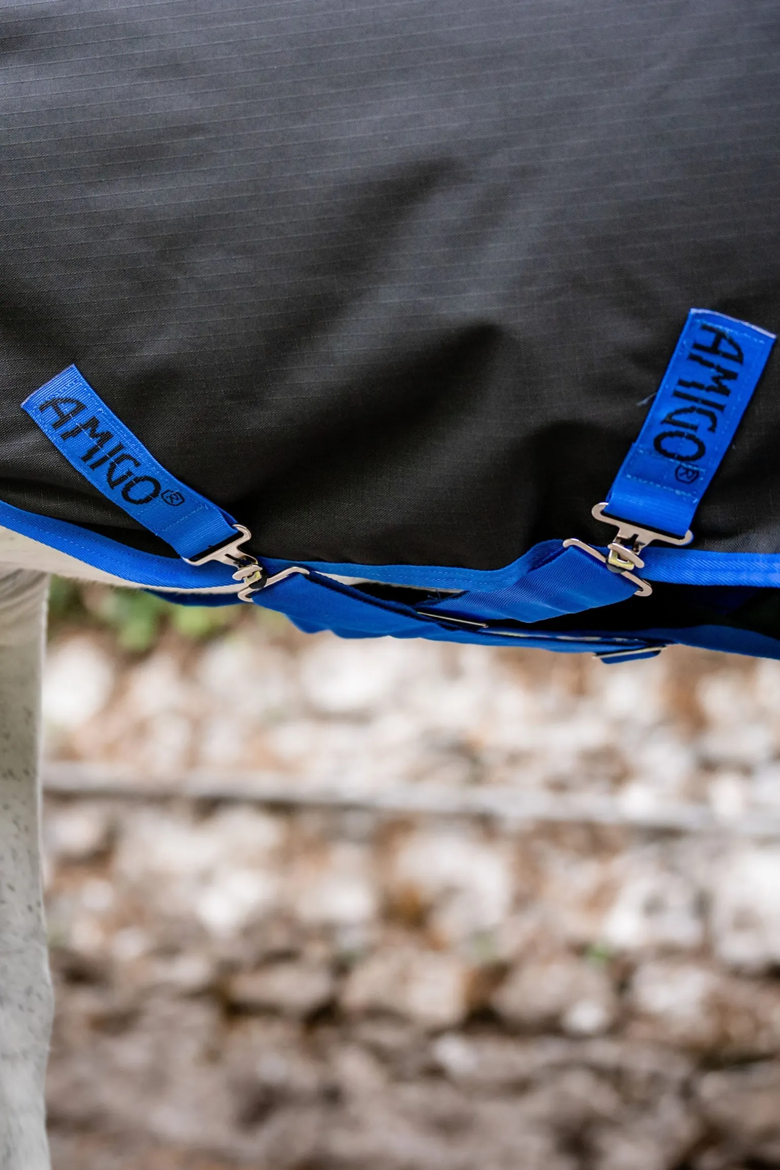 Die Amigo® Ripstop 900D Turnout (0g Light) bietet Schutz und Komfort für dein Pferd. Die Weidedecke ist aus robustem, strapazierfähigem 900D-Ripstop-Polyester gefertigt und darauf ausgelegt, deinem Pferd in rauem Wetter komfortablen Schutz zu bieten. Zu den Merkmalen dieser Decke gehören ein wasserdichtes und atmungsaktives 900D-Ripstop-Außenmaterial, ein glanzgebendes, antistatisches und antibakterielles Innenfutter, ein gerader Brustverschluss und zwei Kreuzgurte für einen sicheren Sitz. Ein Schweifriemen hält die Decke an ihrem Platz. Dank ihrer Halsteil-Ösen und Liner-Laschen ist diese Decke mit dem Amigo® Ripstop-900D-Halsteil und dem Horseware®-Liner-System kombinierbar. Durch ihre Vielseitigkeit ist sie ideal für wechselnde Wetterbedingungen. Mit der Amigo® Ripstop 900D Turnout (0g Light) bietest du deinem Pferd Schutz und Komfort sowie einen tollen Look.