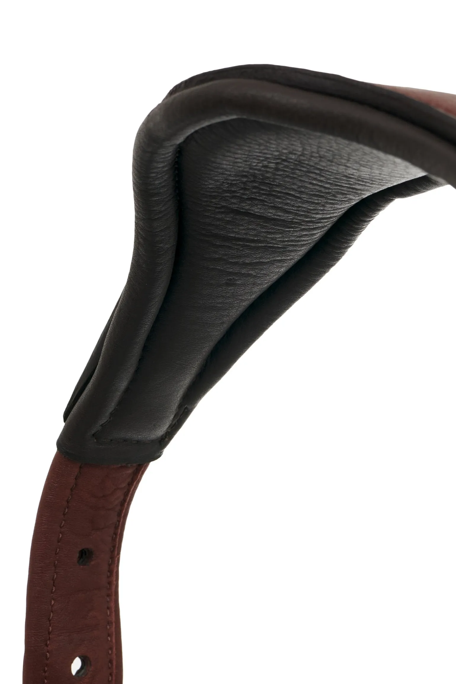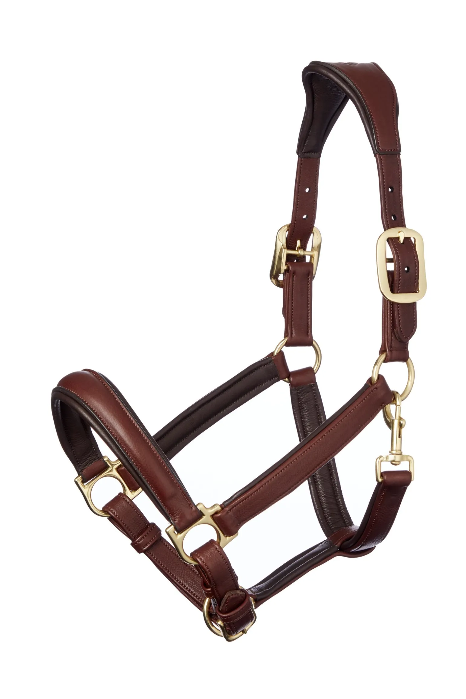 Die soliden Metallbeschläge, der unterlegte Kehlriemen und die gepolsterten Backenstücke verleihen dem klassischen Halfter einen Hauch von Luxus.