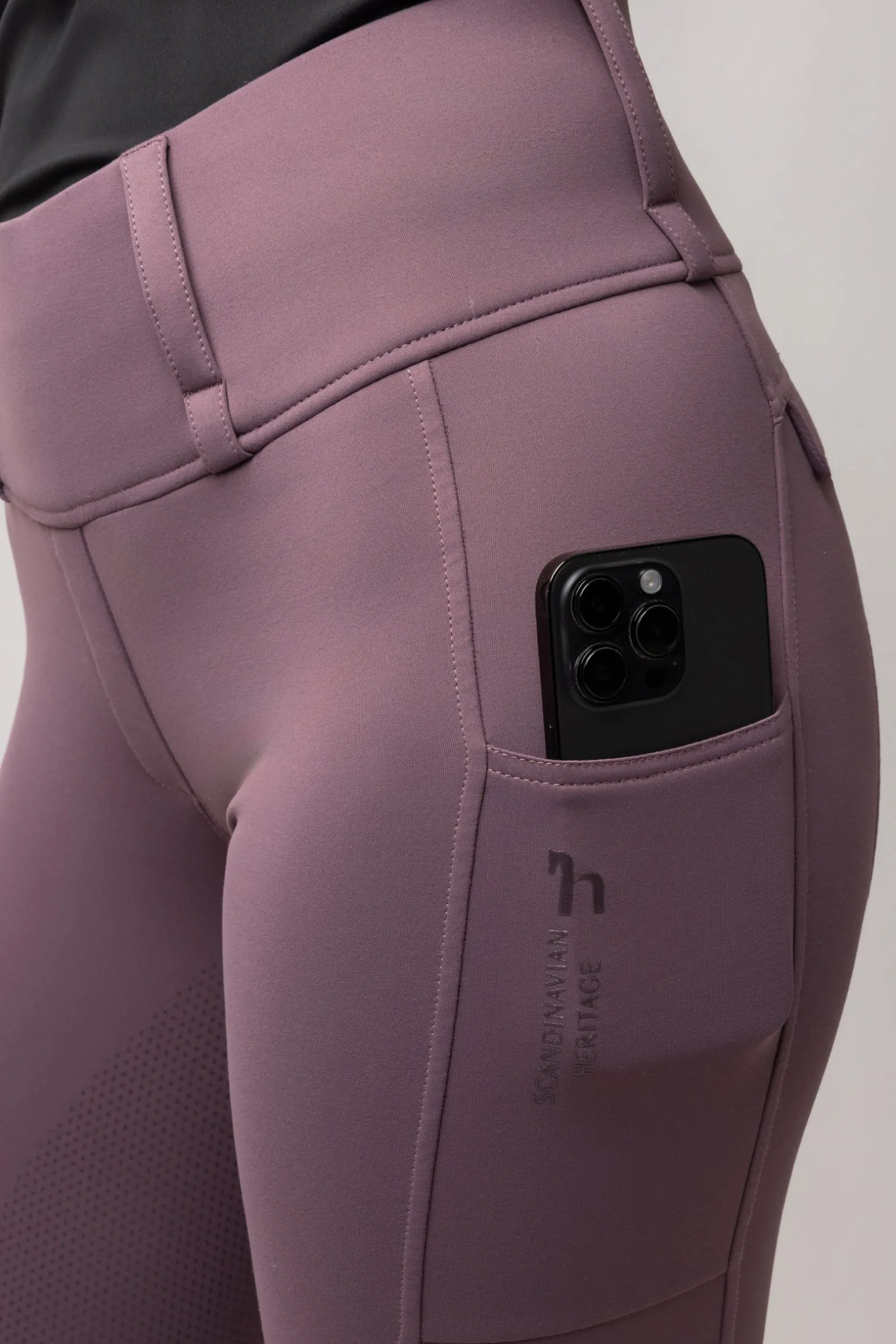 The Horze Anya Hybrid Thermotights combine insulation with a sleek, flattering fit. Their thermo fabric keeps you warm while remaining breathable and stretchy for freedom of movement. The cozy fleece inside adds comfort, and the high waistband ensures a secure feel. A silicone full seat provides excellent grip in the saddle. Stylish details include fake back pocket flaps and a practical thigh phone pocket. With their easy-care design and versatile use, these tights are ideal for winter riding.