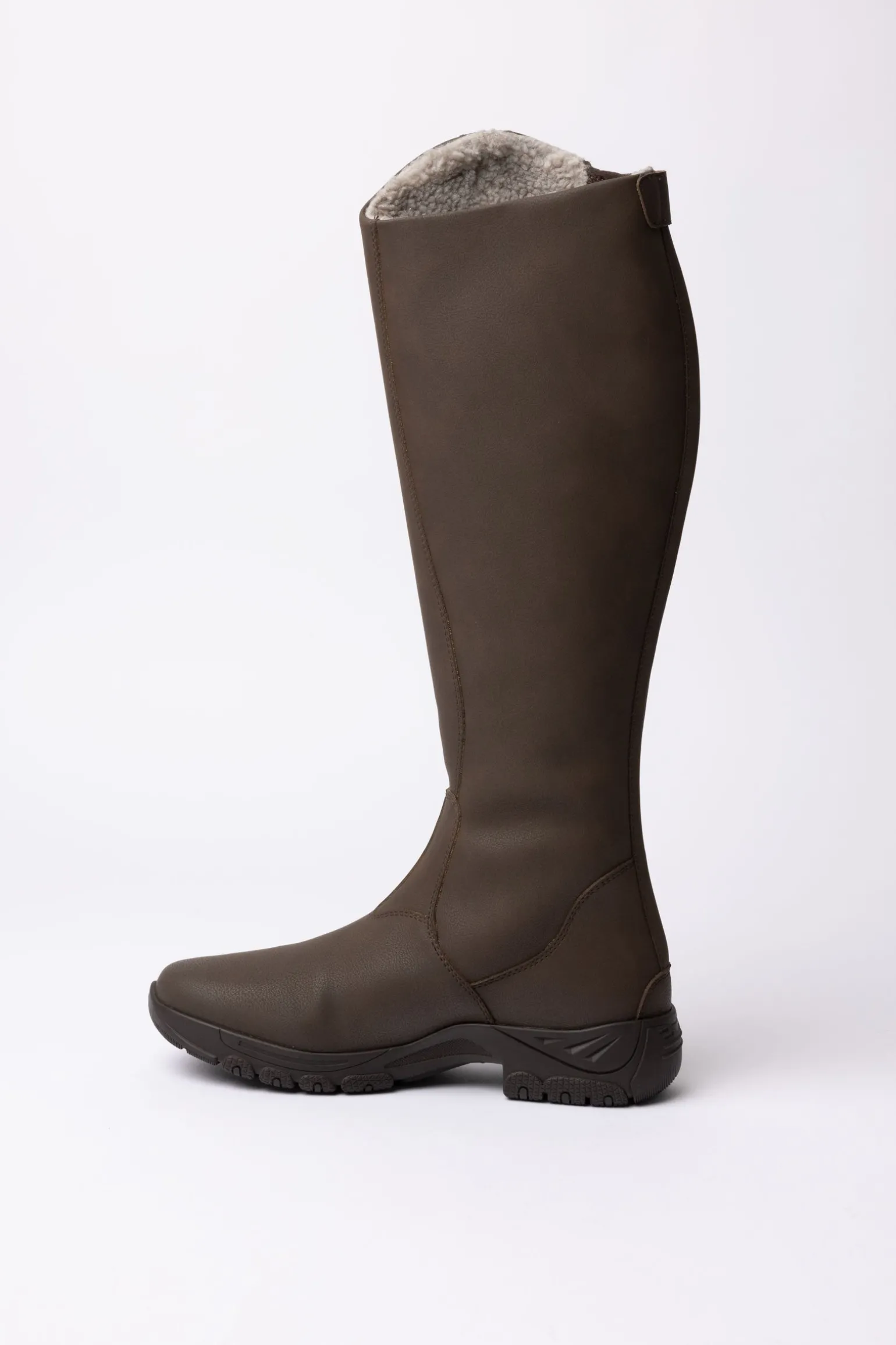 Reitstiefel aus PU-Leder mit Kunstfellfutter, elastischen Einsätzen und rutschfester Sohle.