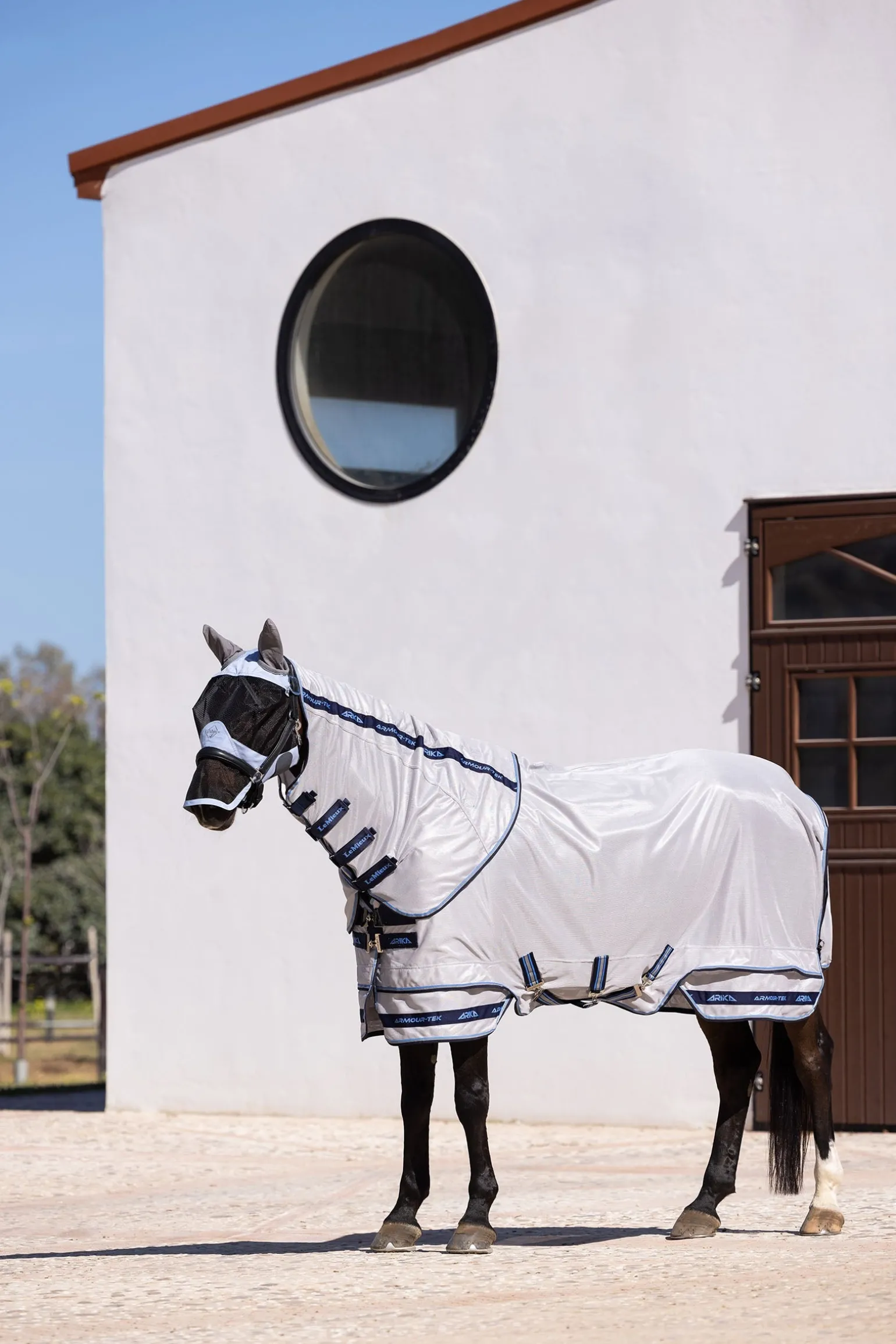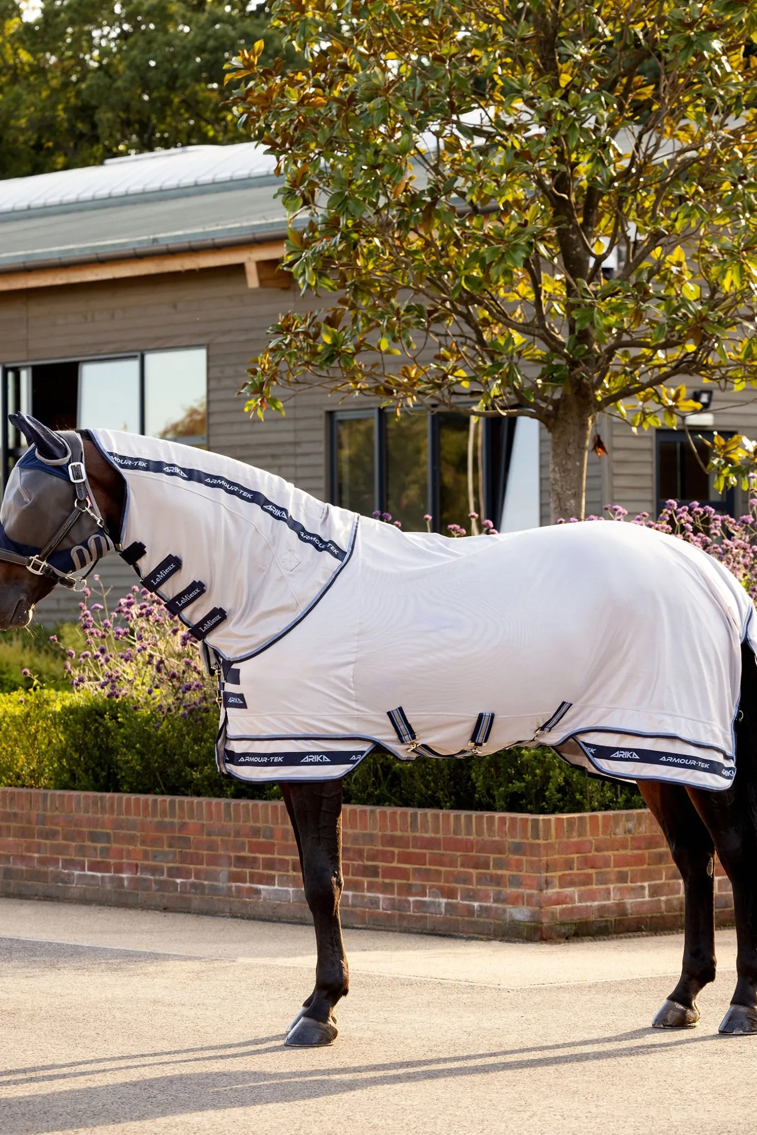 Schütze dein Pferd vor Fliegen und reguliere gleichzeitig seine Temperatur bei warmem Wetter mit der atmungsaktiven, leichten und hochschützenden Arika Armour-Tek Fliegendecke.