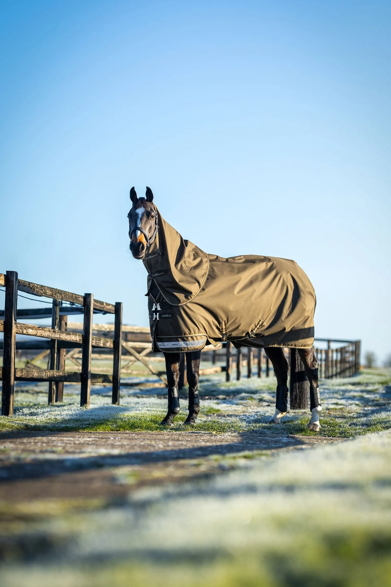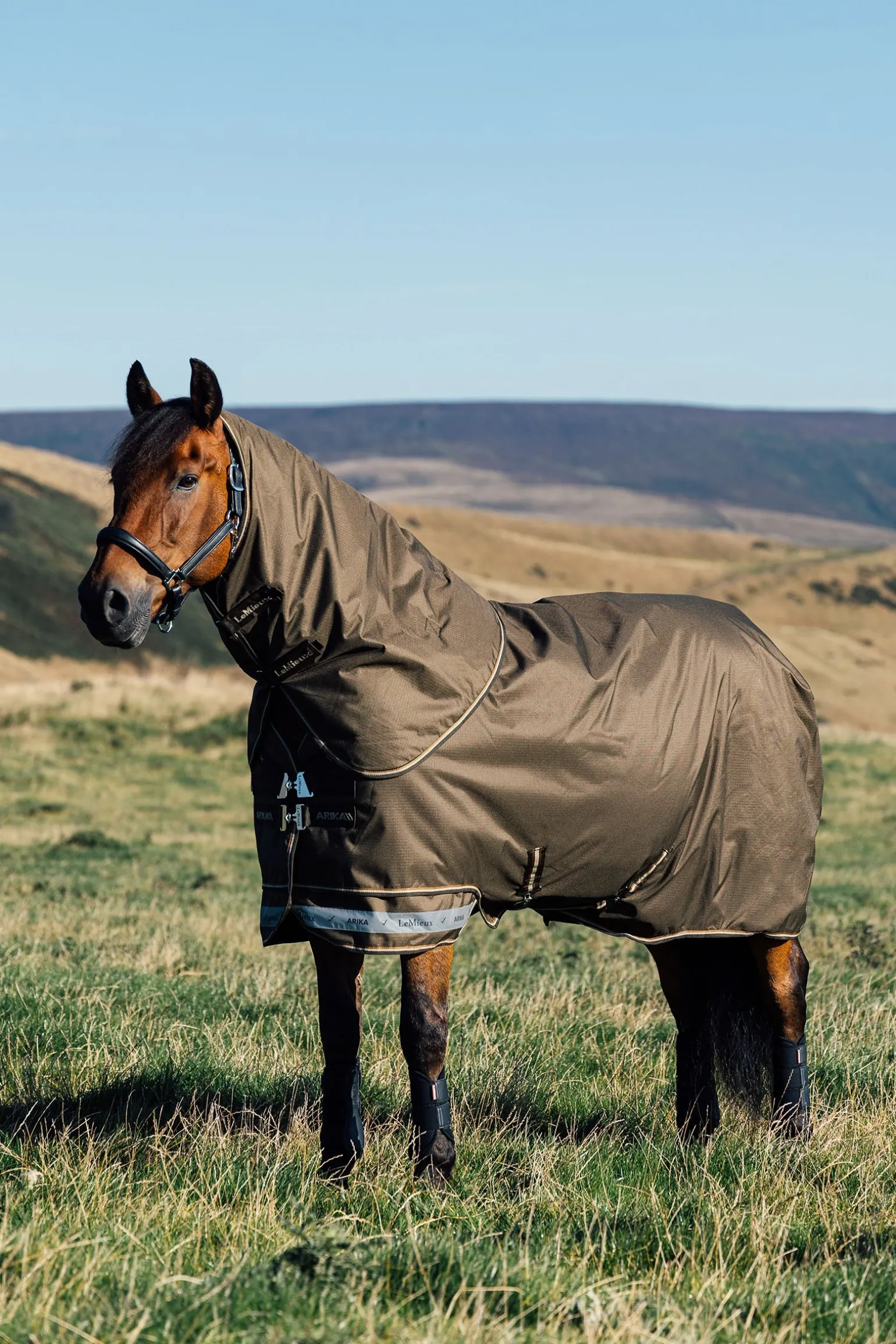 Bringe Farbe auf die Weide mit der Arika Ripstop Outdoordecke. Entwickelt mit denselben technischen Merkmalen wie die beliebte Arika Turnout-Serie, ist diese leichte, aber strapazierfähige Decke ideal für Übergangszeiten. Sie schützt dein Pferd und hält es bei nassem Wetter trocken und komfortabel. Das wasserdichte und atmungsaktive 600 Denier Ripstop-Außenmaterial ist ohne Rückennaht geschnitten, um Undichtigkeiten zu verhindern. Die Decke bietet eine Wasserdichtigkeit von 3000 mm und eine Atmungsaktivität von 3000 mvp für optimalen Komfort auf der Weide. Das antibakterielle, antistatische Schulterfutter sorgt für Stabilität und erhöht den Glanz. Das patentierte zweiteilige Design des unteren Saums verhindert Spannungen im vorderen Bereich, was Bewegungsfreiheit gewährleistet. Der patentierte T-Verschluss im 45°-Winkel und das antibakterielle, antistatische Schulterfutter reduzieren den Druck auf Brust und Schulter, minimieren die Scheuergefahr und ermöglichen Bewegungsfreiheit beim Spielen und Grasen. Du kannst zwischen verschiedenen Füllgewichten wählen, um die Decke an die Bedürfnisse deines Pferdes anzupassen. Die thermogebundene Füllung verklumpt nicht und rutscht nicht, auch wenn sie nass ist. Praktische technische Merkmale machen diese Decke zur idealen Wahl für den Weideeinsatz. Reflektierende Details sorgen für gute Sichtbarkeit im Dunkeln. Der PVC-beschichtete Schweifriemen ist leicht zu reinigen. Gekreuzte Bauchgurte halten die Decke sicher am Platz, und elastische Beinschnüre bieten zusätzlichen Halt. Das abnehmbare Halsteil bietet verschiedene Abdeckungsoptionen, während die Arika-Liner-Systembefestigungen am Hals und hinten die Verwendung von Unterdecken ermöglichen, um die Temperaturregulierung während der verschiedenen Jahreszeiten anzupassen.