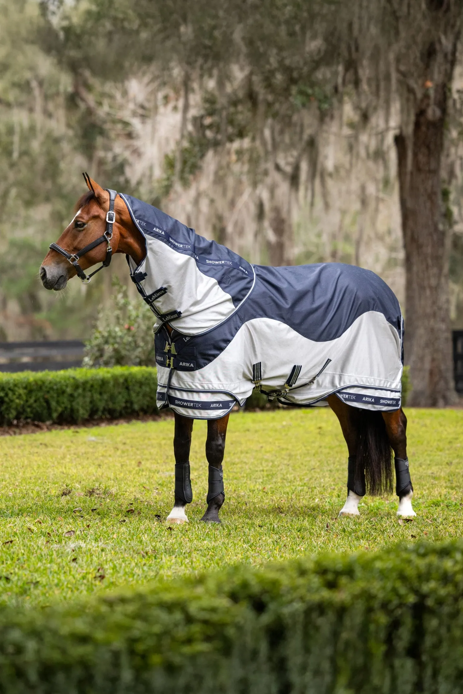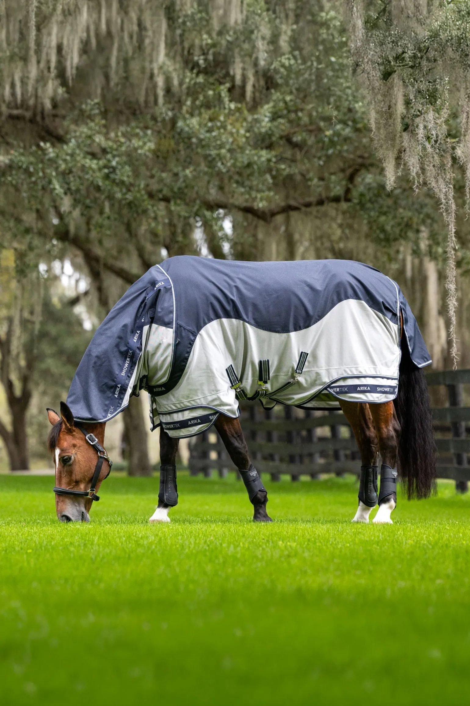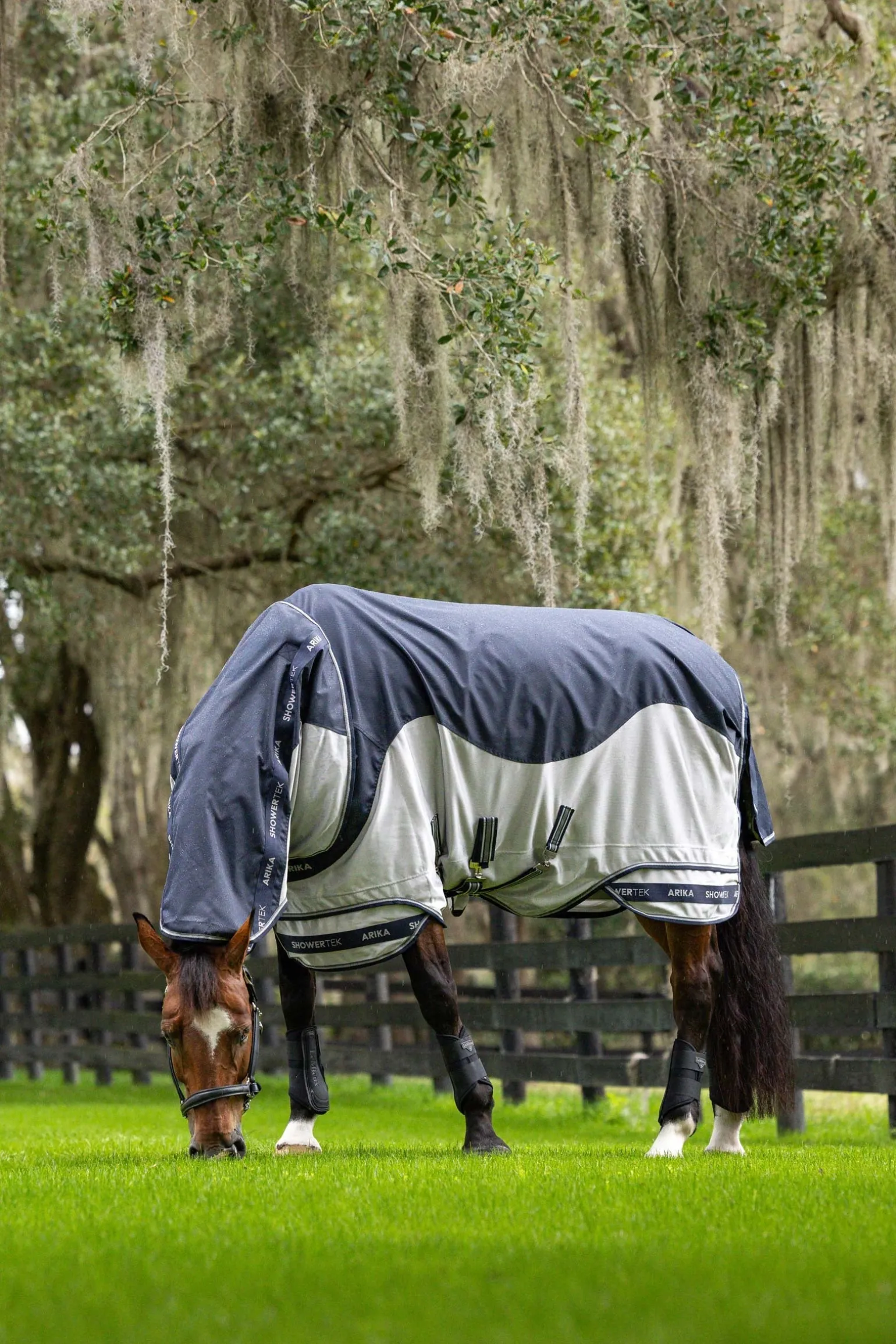 Entwickelt für unvorhersehbare Wetterbedingungen schützt die Arika Shower-Tek Fliegendecke Pferde vor Wind, Regen und dem Ausbleichen des Fells durch Sonneneinstrahlung, ohne die Atmungsaktivität zu beeinträchtigen.