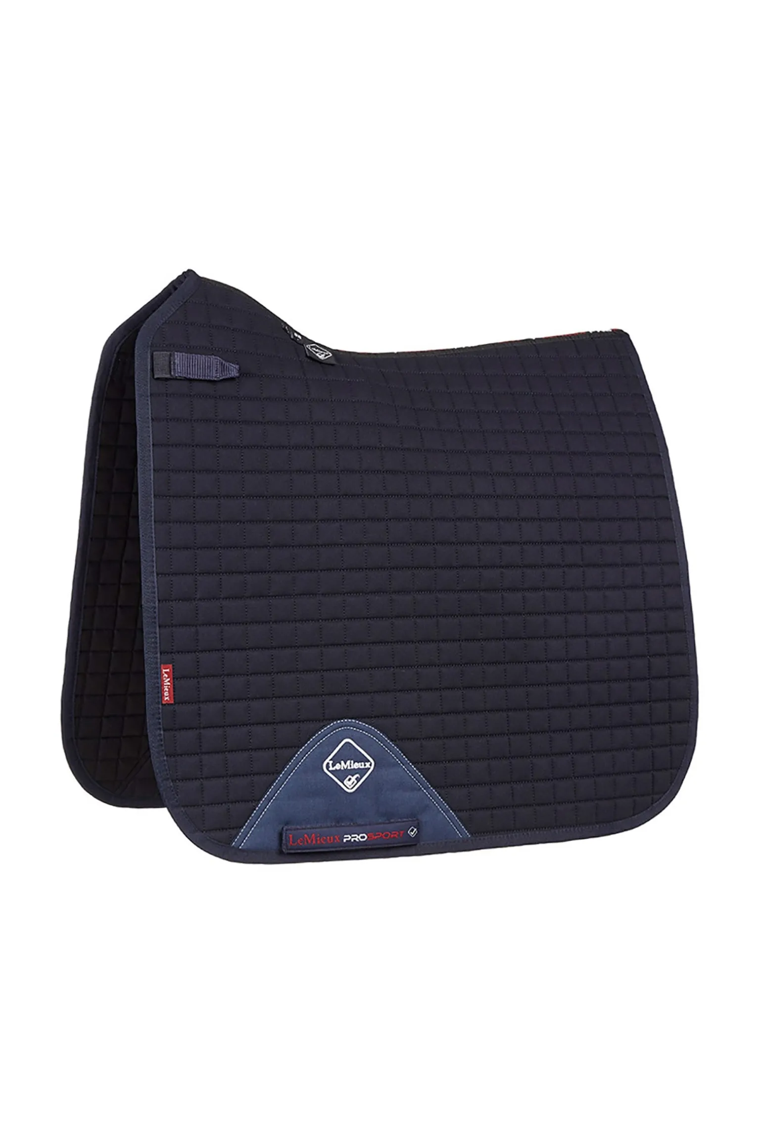 Modisches und strapazierfähiges Pad für maximale Leistung des Materials, für das tägliche Training oder Turniereinsätze geeignet. Premium Baumwolle außen und Fütterung für Temperaturregelung und Atmungsaktivität. Klassischer Dressur-Schnitt mit hohem Widerrist, elastischen D-Ringen & Gurt-Schutz mit innen versteckten Schlaufen um ein Rutschen zu verhindern. Gut in der Maschine zu waschen.