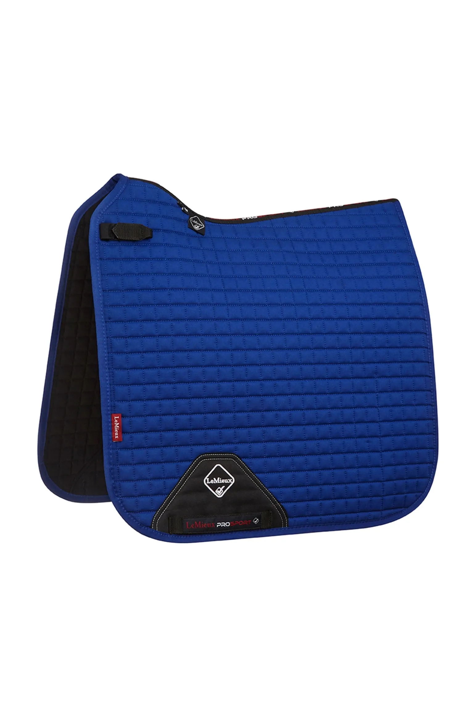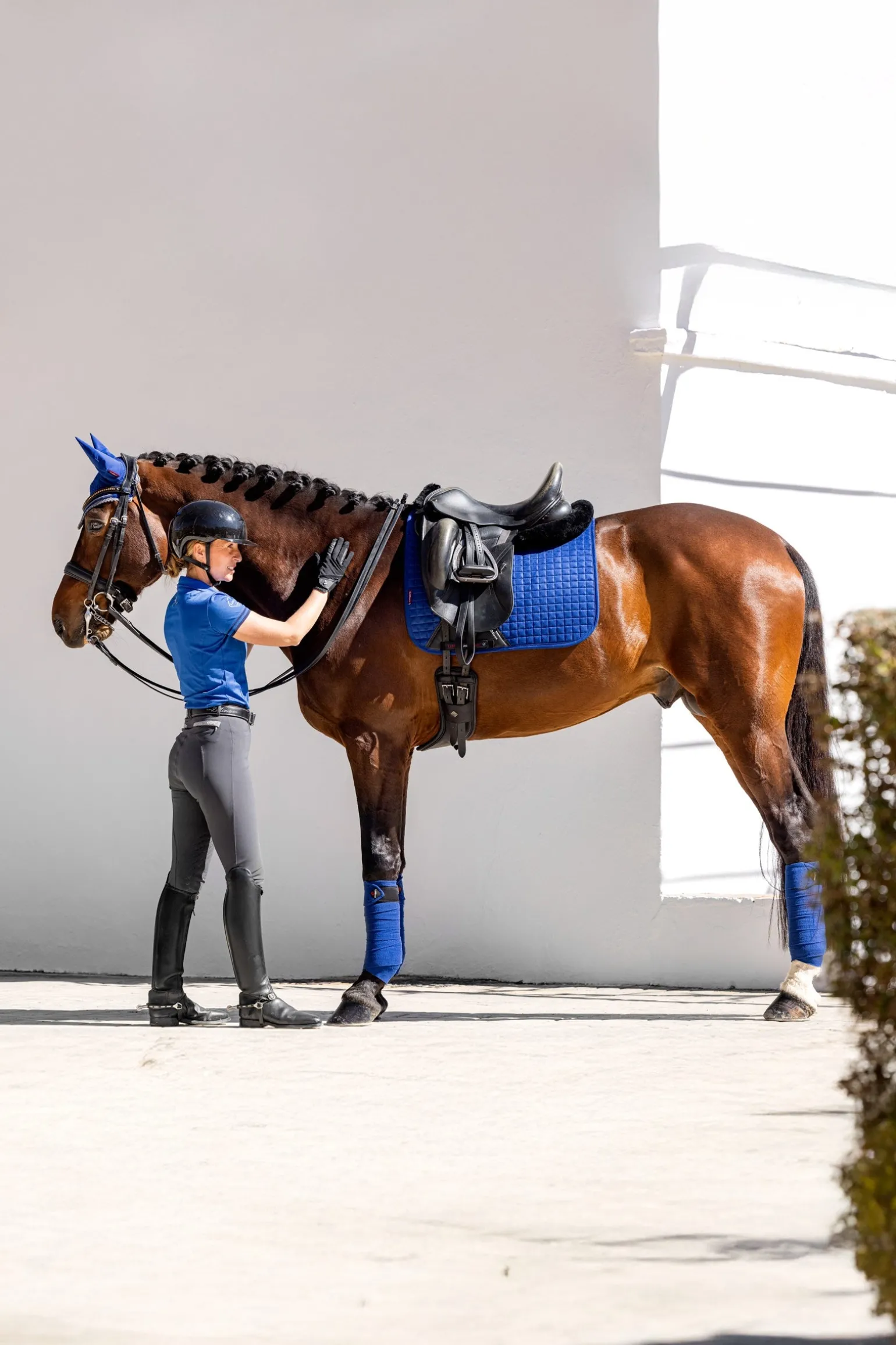 Modisches und strapazierfähiges Pad für maximale Leistung des Materials, für das tägliche Training oder Turniereinsätze geeignet. Premium Baumwolle außen und Fütterung für Temperaturregelung und Atmungsaktivität. Klassischer Dressur-Schnitt mit hohem Widerrist, elastischen D-Ringen & Gurt-Schutz mit innen versteckten Schlaufen um ein Rutschen zu verhindern. Gut in der Maschine zu waschen.