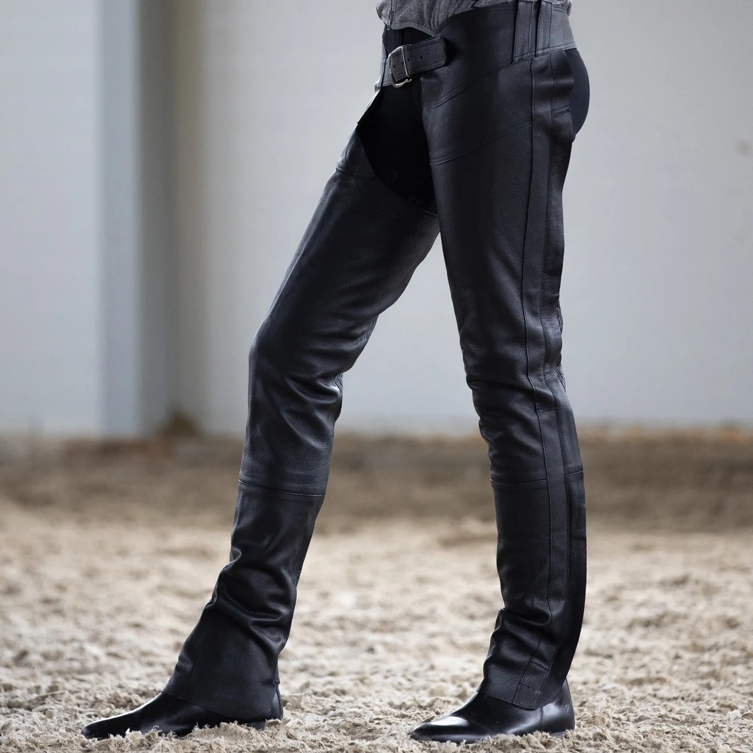 Ursprünglich von Cowboys getragen, um sich in unwegsamem Gelände vor dornigen Büschen zu schützen, kannst nun auch du die Vollchaps von Horze ausprobieren und all ihre Vorteil selbst erleben. Die Chaps geben deinem Bein zusätzlichen Halt im Sattel und bilden eine weitere wärmende Schicht. Sie schützen deine Reithose und Beine davor, an den Steigbügelriemen zu reiben, vor alltäglicher Abnutzung im Stall und vor möglichen Verletzungen, die du beim Ausreiten erleiden könntest. Dadurch, dass sie aus echtem Leder mit eingearbeiteten elastischen Einsätzen hergestellt sind, werden sie mit jedem Ritt bequemer. Zu guter Letzt sitzen diese Chaps ganz ausgezeichnet und sind dein neuestes Must-Have!