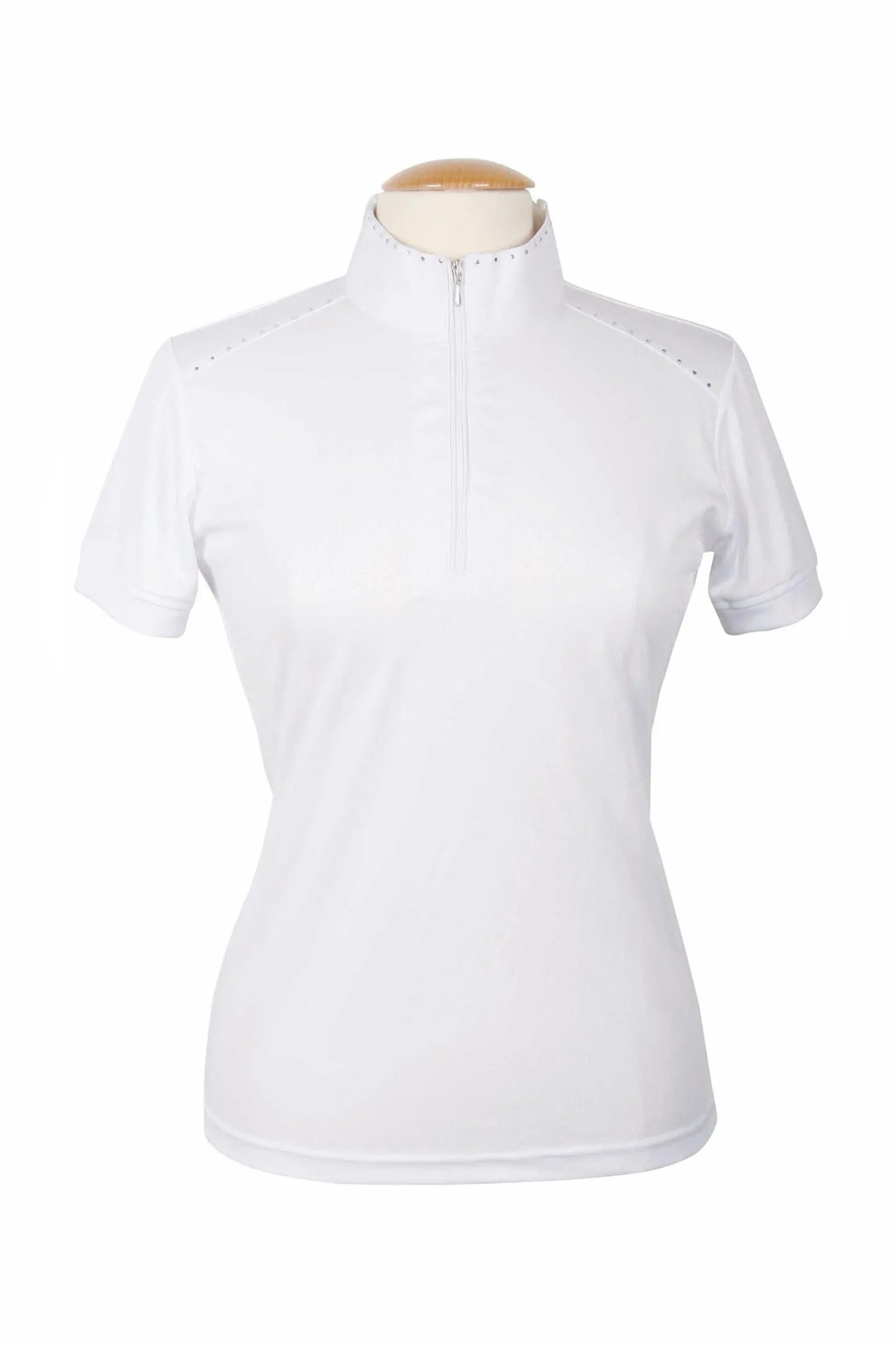 Luxuriöses Turniershirt mit Applikationi aus Strass-Kristallen, Reißverschluss und einem Stehkragen mit Schlaufen für die Krawatte.
