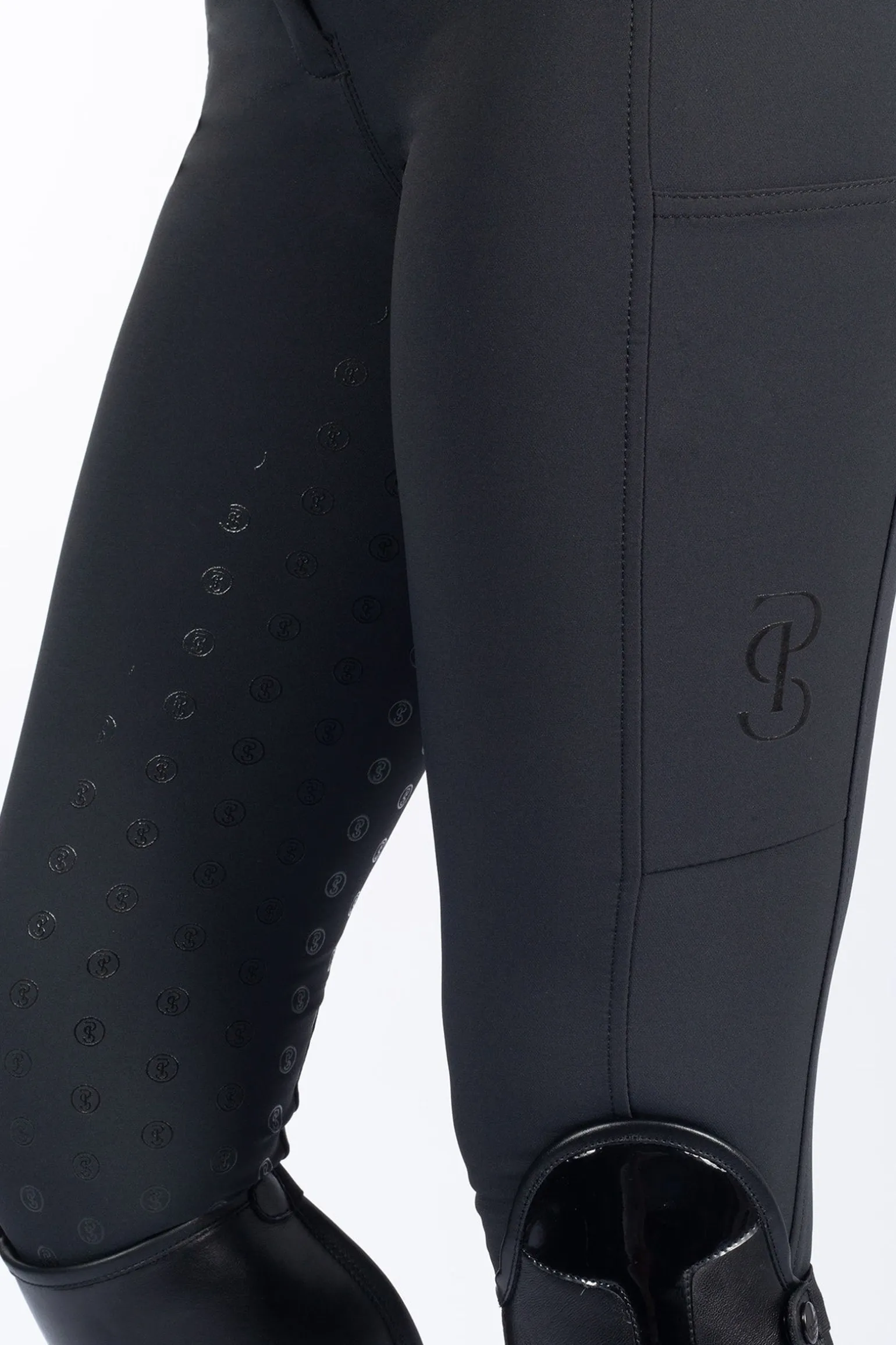 High Waist-Reithose mit Vollbesatz. Hergestellt aus Vier-Wege-Stretch-Material, das eine figurbetonte Passform und optimale Bewegungsfreiheit bietet. Farblich abgesetzte, elastische Socken an der Beinöffnung erzeugen Kompression und sorgen dafür, dass die Reithose entlang des Beins passt. Handytaschen auf beiden Seiten der Beine.