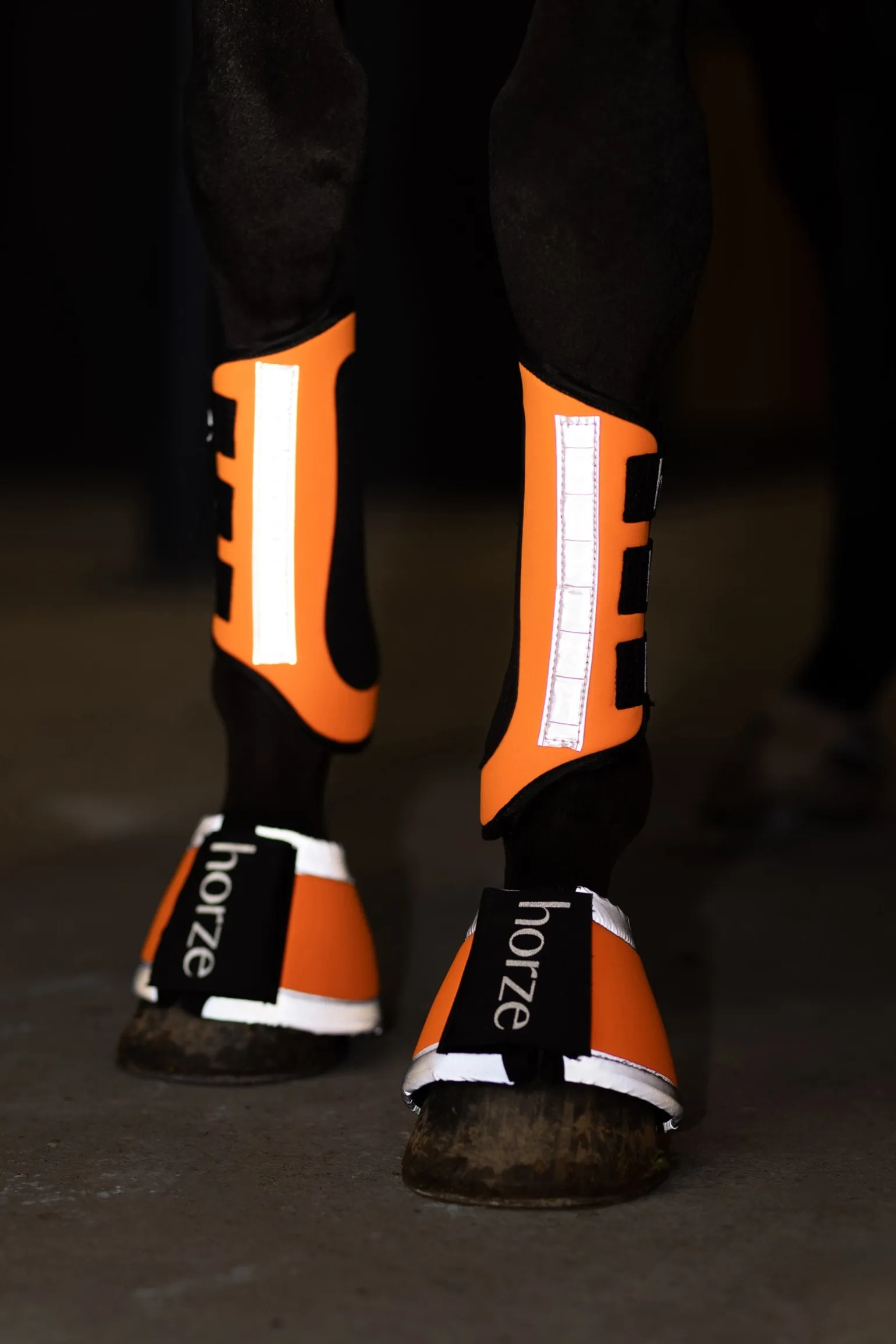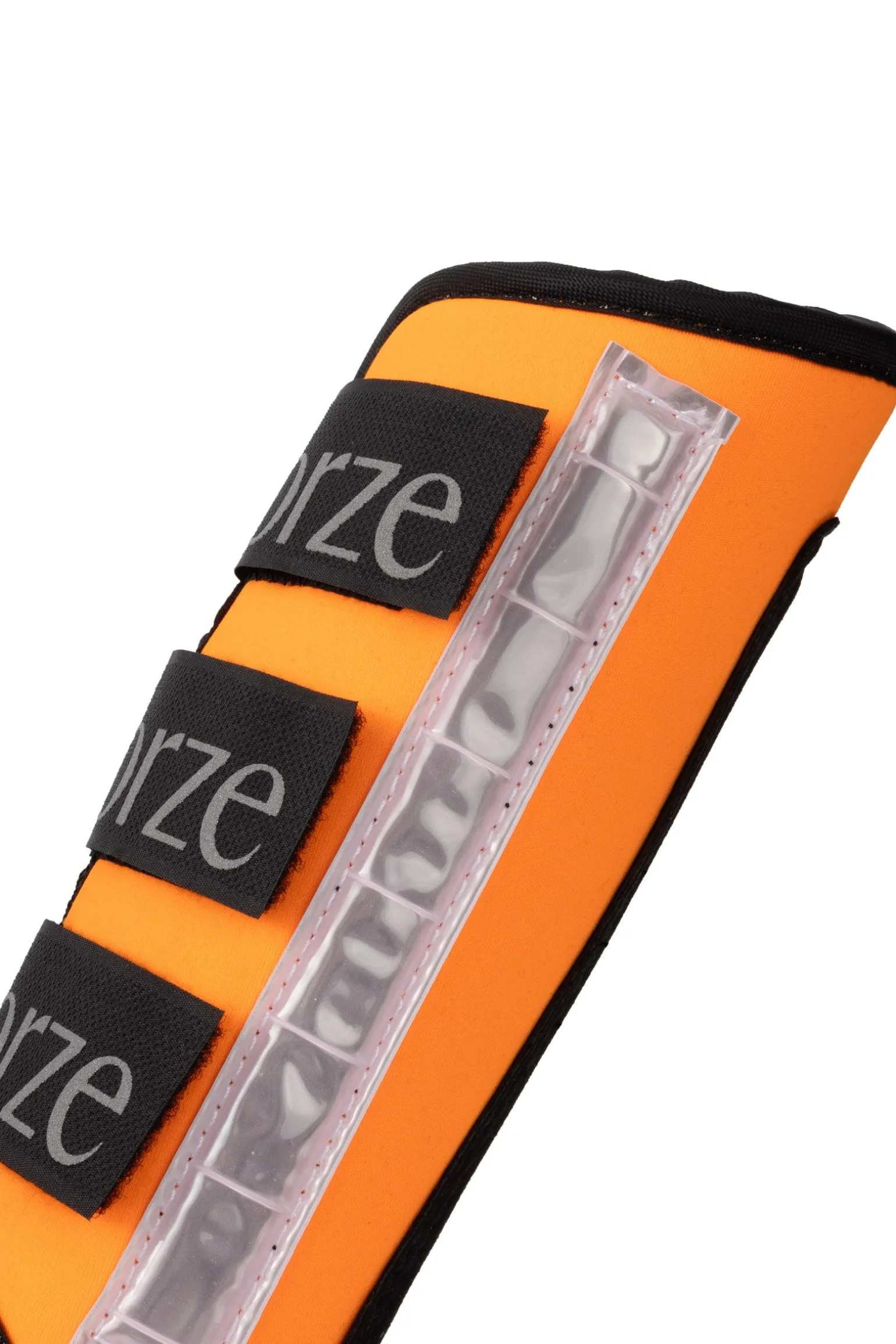 Neoprengamaschen in gut sichtbarem Orange mit breiten Reflektorstreifen. Guter, sichtbarer Schutz für Ihr Pferd. 1 Paar.