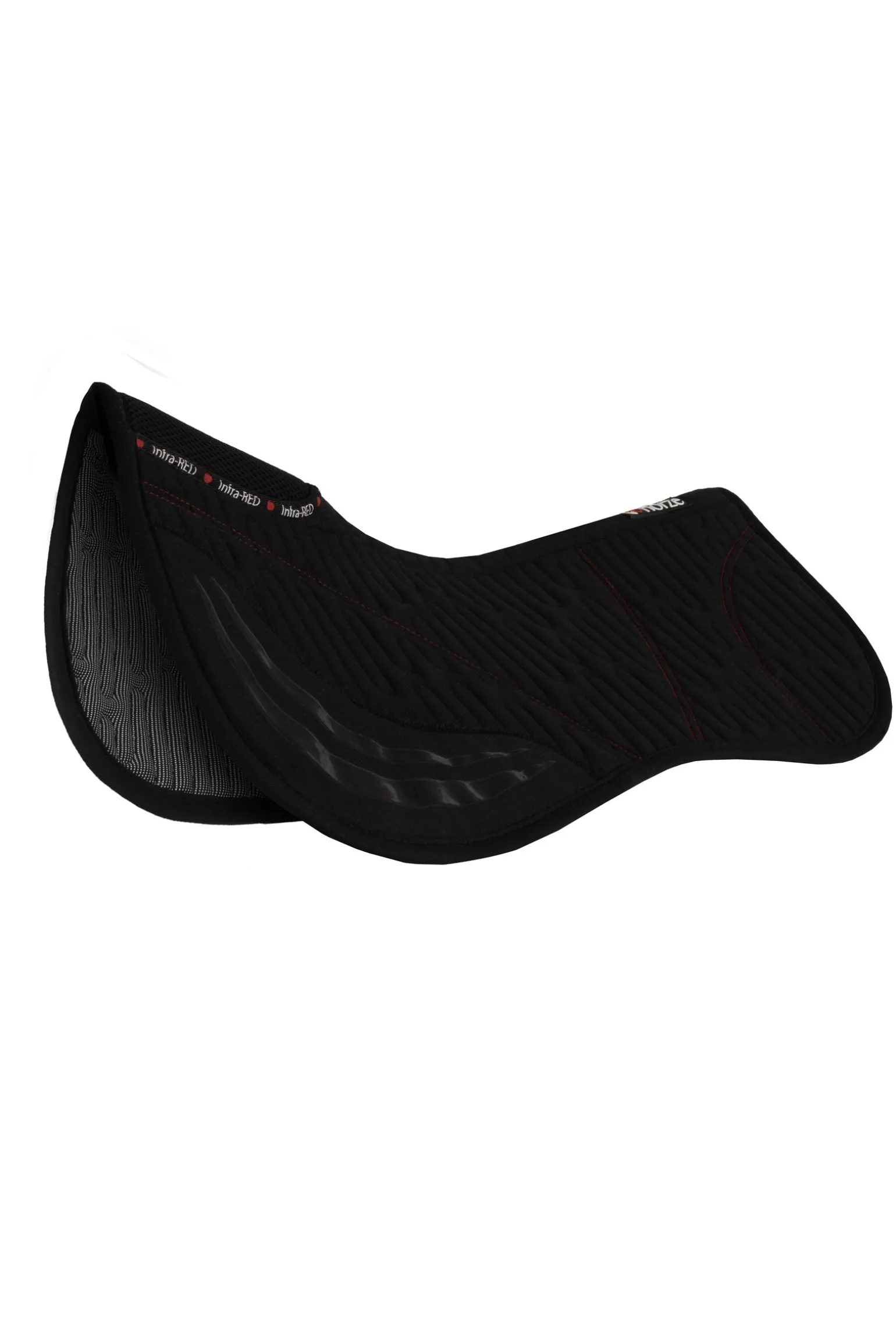 Anatomisch geformtes Sattelpad mit Infrarot-Gewebe, das die Körperwärme reflektiert und in das Gewebe eindringt, wo es sich positiv auf den Blutkreislauf und den Stoffwechsel auswirkt. Mesh am Widerrist für erhöhte Belüftung. Der Silikongrip verhindert das Verrutschen des Sattels. Stoßdämpfende und schnell trocknende Eigenschaften.