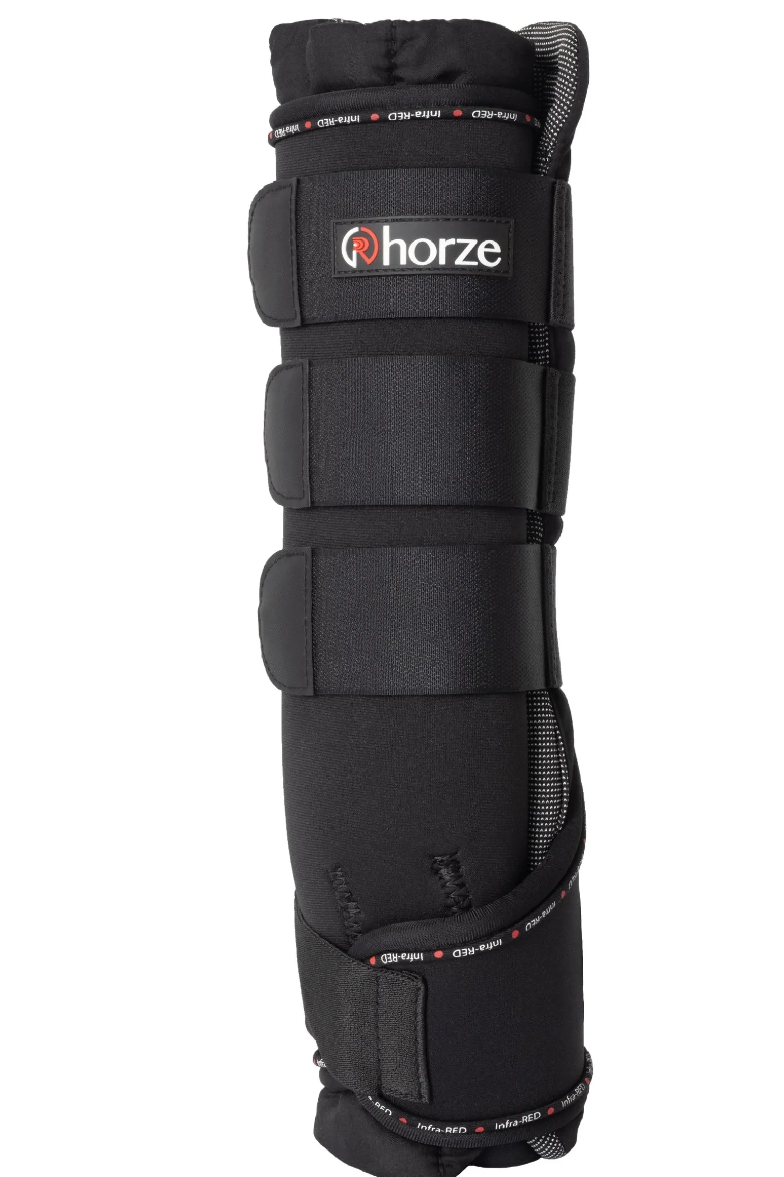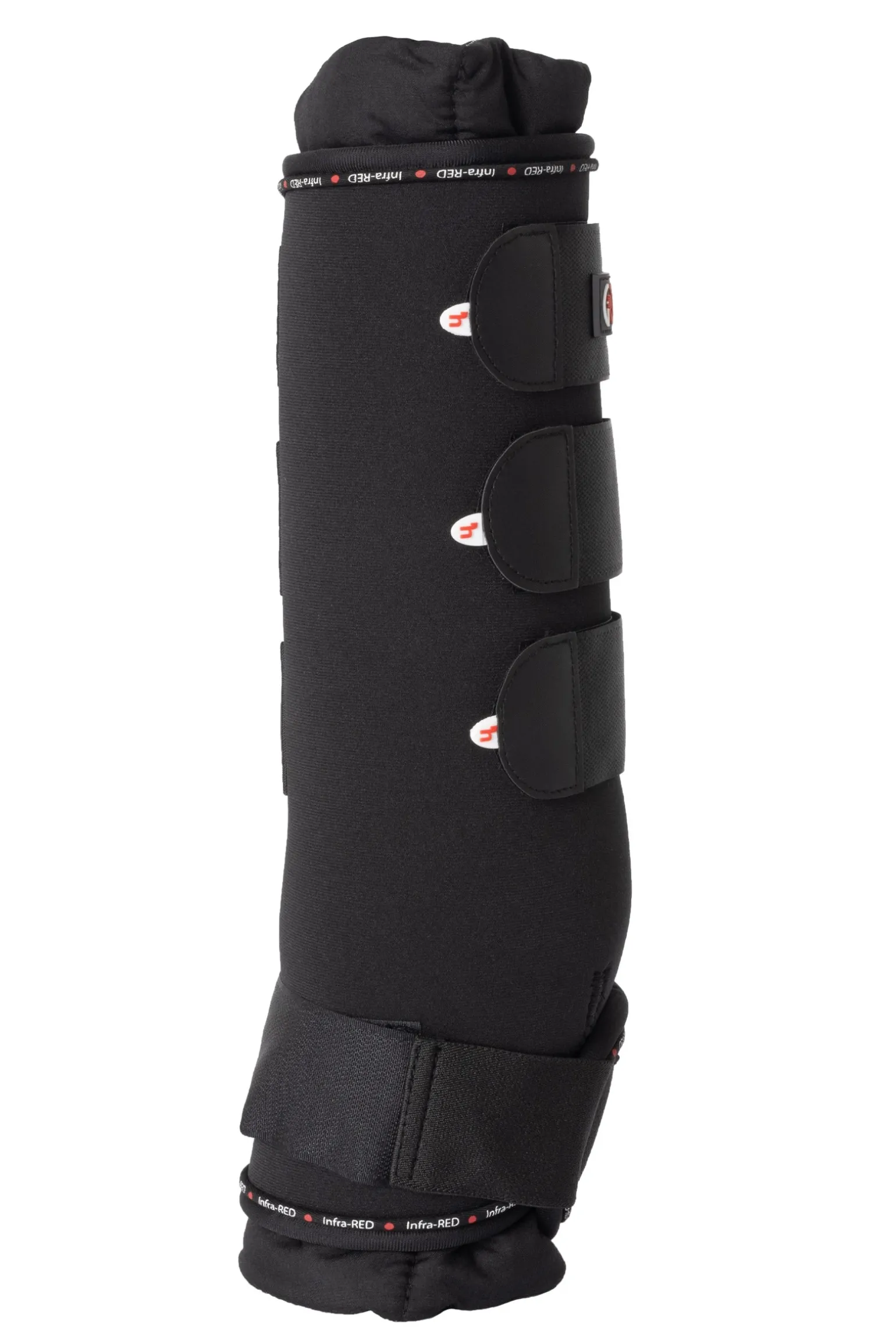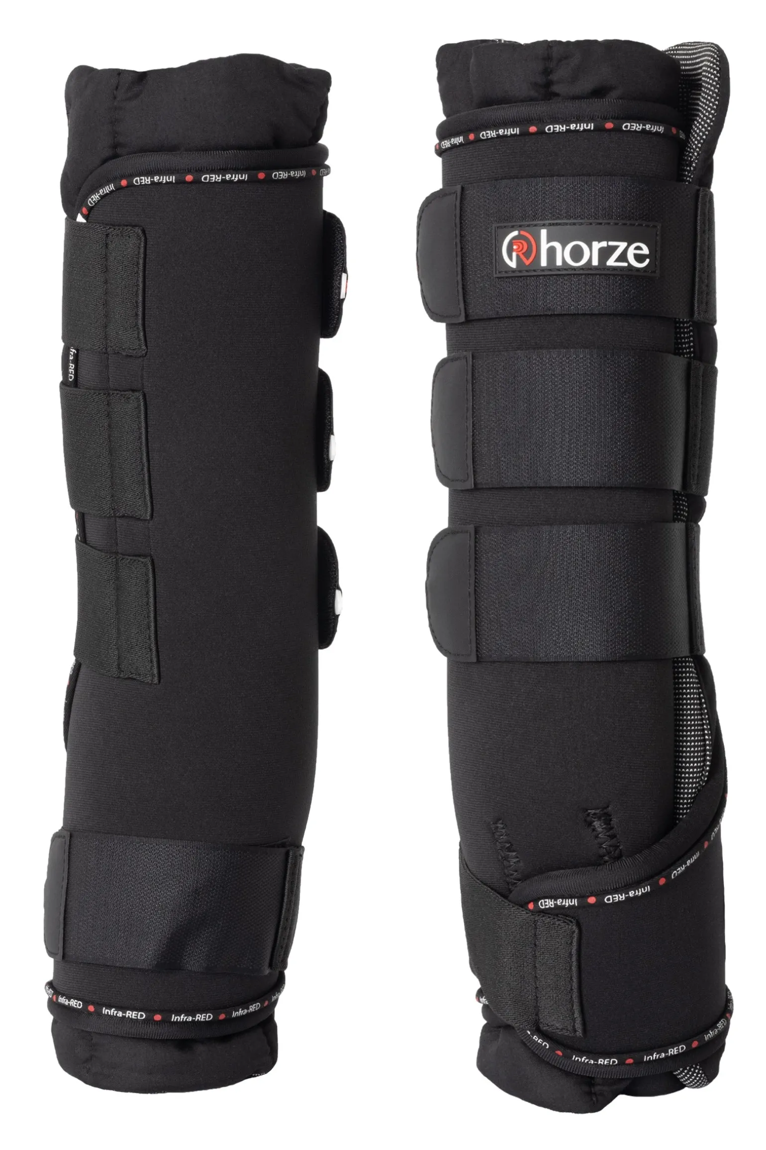 Therapeutische Stallgamaschen mit superweicher Polsterung und einem extra atmungsaktiven und strapazierfähigen Außenteil. 4 Klettverschlüsse halten die Gamaschen sicher an ihrem Platz. Infrarot-Stallgamaschen für eine erhöhte Blutzirkulation. Die in die Innenseite der dicken, weichen Polsterung eingewebten Keramikpartikel absorbieren die Körperenergie des Pferdes und geben Ferninfrarotstrahlen ab, die tief durch das Gewebe dringen und eine vitalisierende Wirkung auf die Blutzirkulation und damit den Stoffwechsel haben.