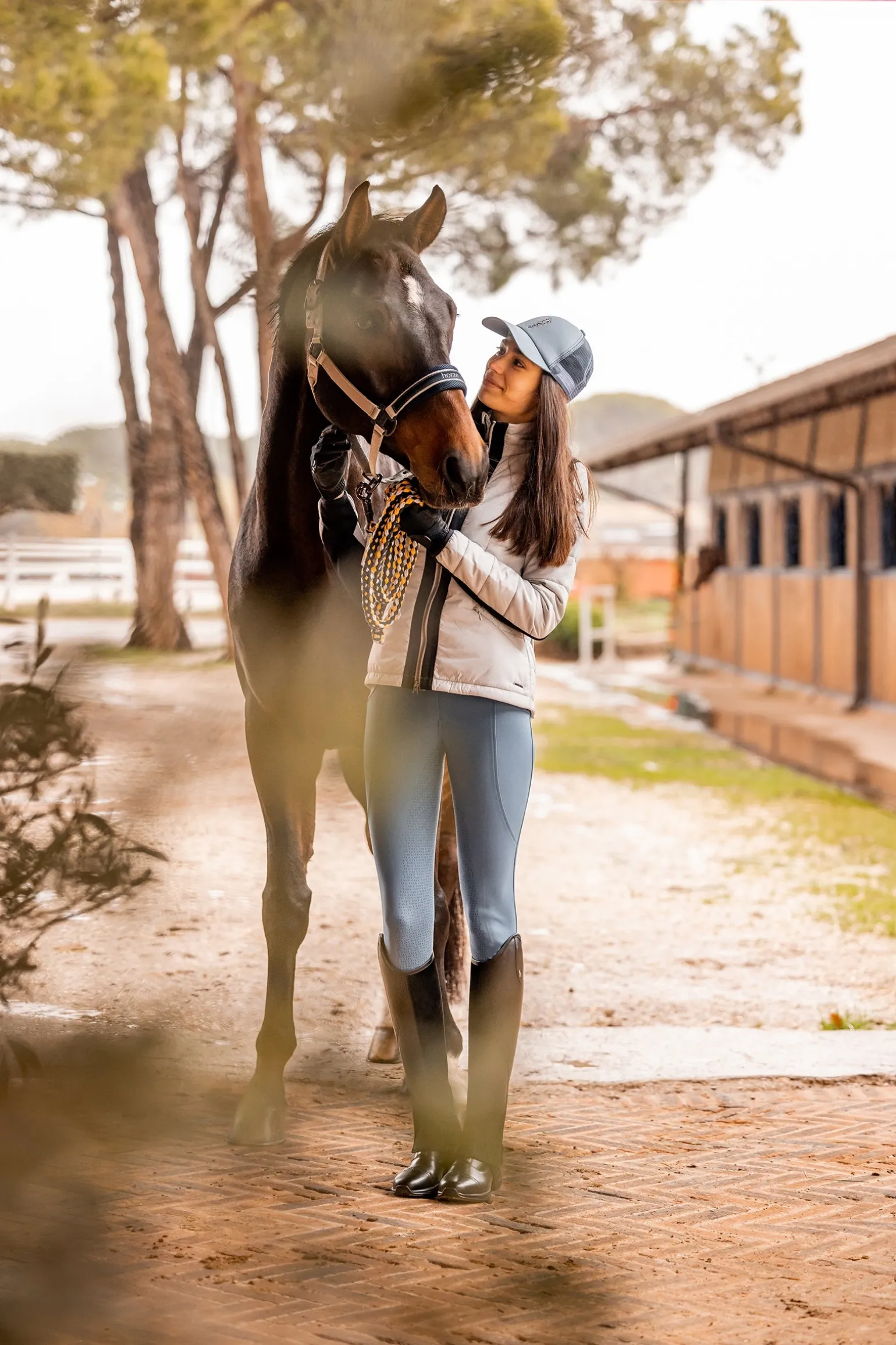 Diese funktionelle Damenjacke ist leicht wattiert, an den Seiten und Ärmeln gesteppt und hat einen einseitigen Stretch-Fleece-Einsatz am Rücken und an den Ärmeln. Kontrastfarbige Paspeln an den Ärmeln und am Reißverschluss. Sie ist wasserabweisend und winddicht und eignet sich perfekt zum Überziehen. 3D-Logoaufdruck auf der Rückseite unterhalb des Nackens und eine kleine Logoplatte aus Metall am vorderen Saum. Zwei versteckte Reißverschlusstaschen bewahren deine Sachen beim Reiten sicher auf. Die rückseitigen Knöpfe öffnen einen Reitschlitz für mehr Bewegungsfreiheit im Sattel.