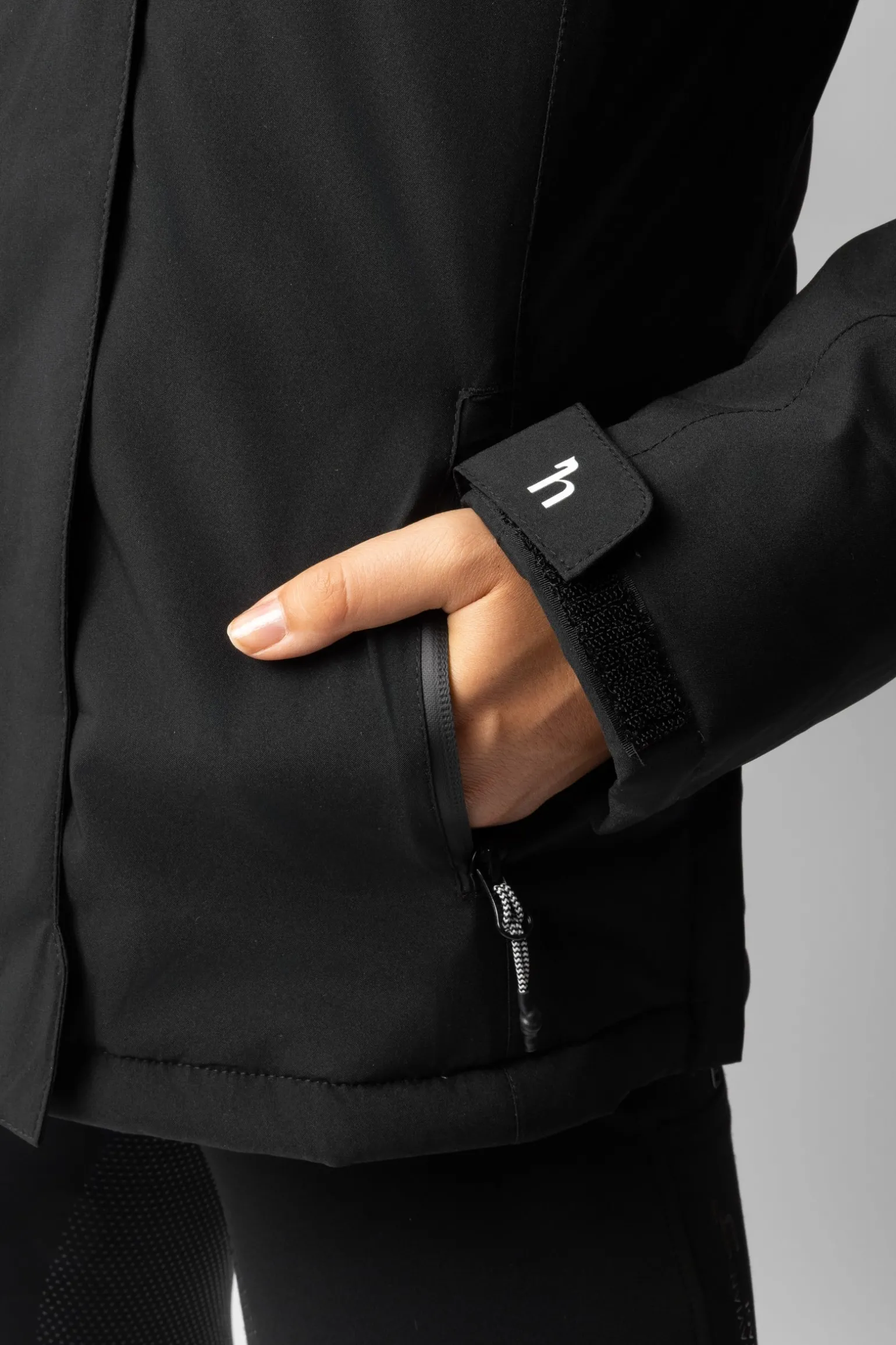 The Horze Camila Padded Jacket offers protection, warmth, and style. With 5000 mm waterproof fabric and fully taped seams, it ensures you stay dry in wet weather. Breathable fabric and 160 g padding provide comfort and insulation. A two-way zipper with cover and waterproof hip zippers add practicality, while an inside chest pocket offers secure storage. The hood can be detached when not needed, and adjustable cuffs and back slits provide a comfortable fit.
