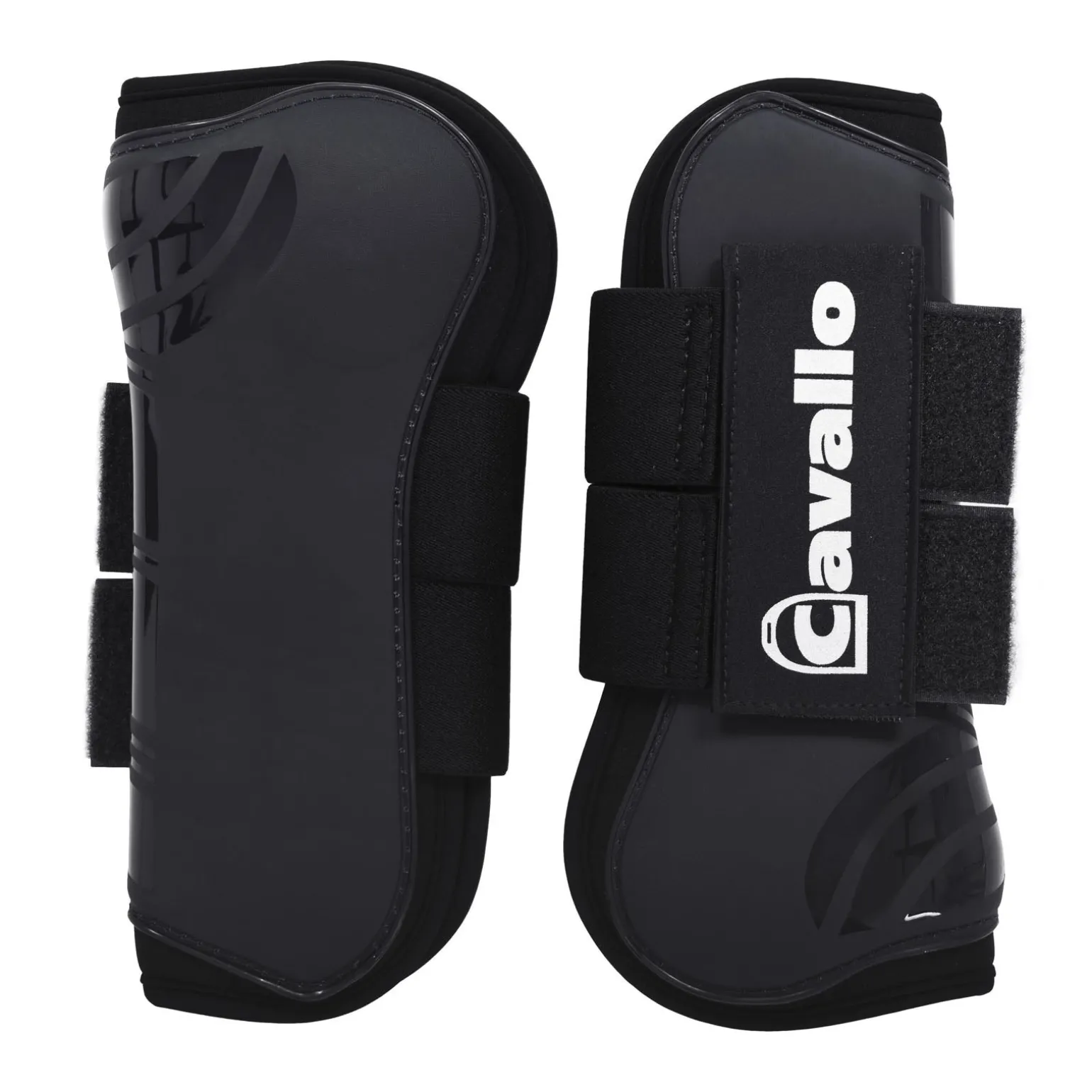 Strapazierfähige Hartschalen Gamaschen in cooler Optik. Die Innenseite der Gamasche ist mit angenehmen Neopren gefüttert. Im Bereich der Hinterseite oben weist die Hartschale eine kleine Aussparung auf und ermöglicht eine bessere Bewegungsfreiheit. Die Gamaschen sind mit zwei breiten Gummibändern und Flauschband zum Verschließen an der Außenseite versehen. Fixiert werden die Klettbänder mit einem doppelten, vertikalen Klettband. Auf der Oberseite des Klettbandes ist ein großes, silbernes Cavallo Logo aufgedruckt.
