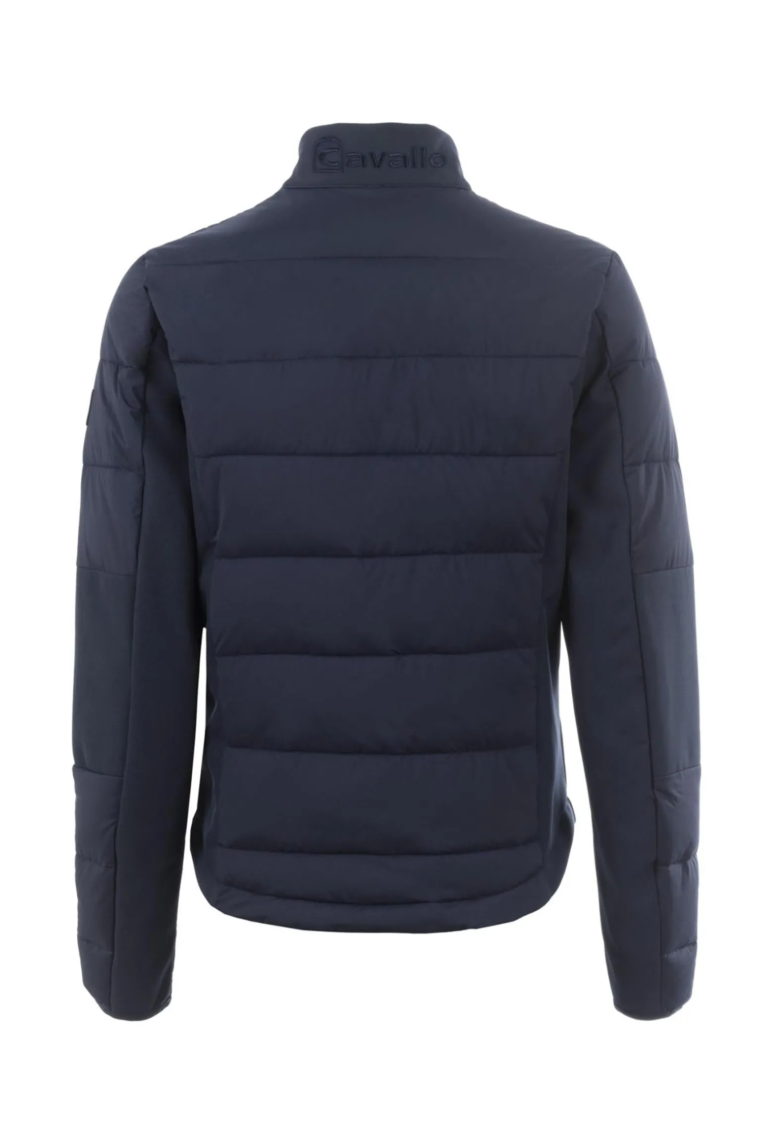 Die superleichte, sportliche Hybridjacke mit Stehkragen und Füllung aus Kunstdaune überzeugt durch horizontal abgestepptes Design an Vorder- und Rückseite sowie glatte Seitenteile. Seitenteile, Ellbogen und Kragen bestehen aus komfortablem Kontrastmaterial. Der praktische 2-Wege-Frontreißverschluss und zwei Reißverschlusstaschen bieten hohen Komfort. Ein elastisches Cavallo Einfassband am Ärmelsaum sorgt für perfekten Sitz. Hochwertige, tonige Steigbügel-Stickerei auf der linken Brust, ein reflektierendes Cavallo Logo-Patch am linken Oberarm sowie eine große Cavallo 3D-Stickerei mittig im Schulterbereich betonen den sportlichen Look. Der leicht abgerundete Saum rundet das Design ab.