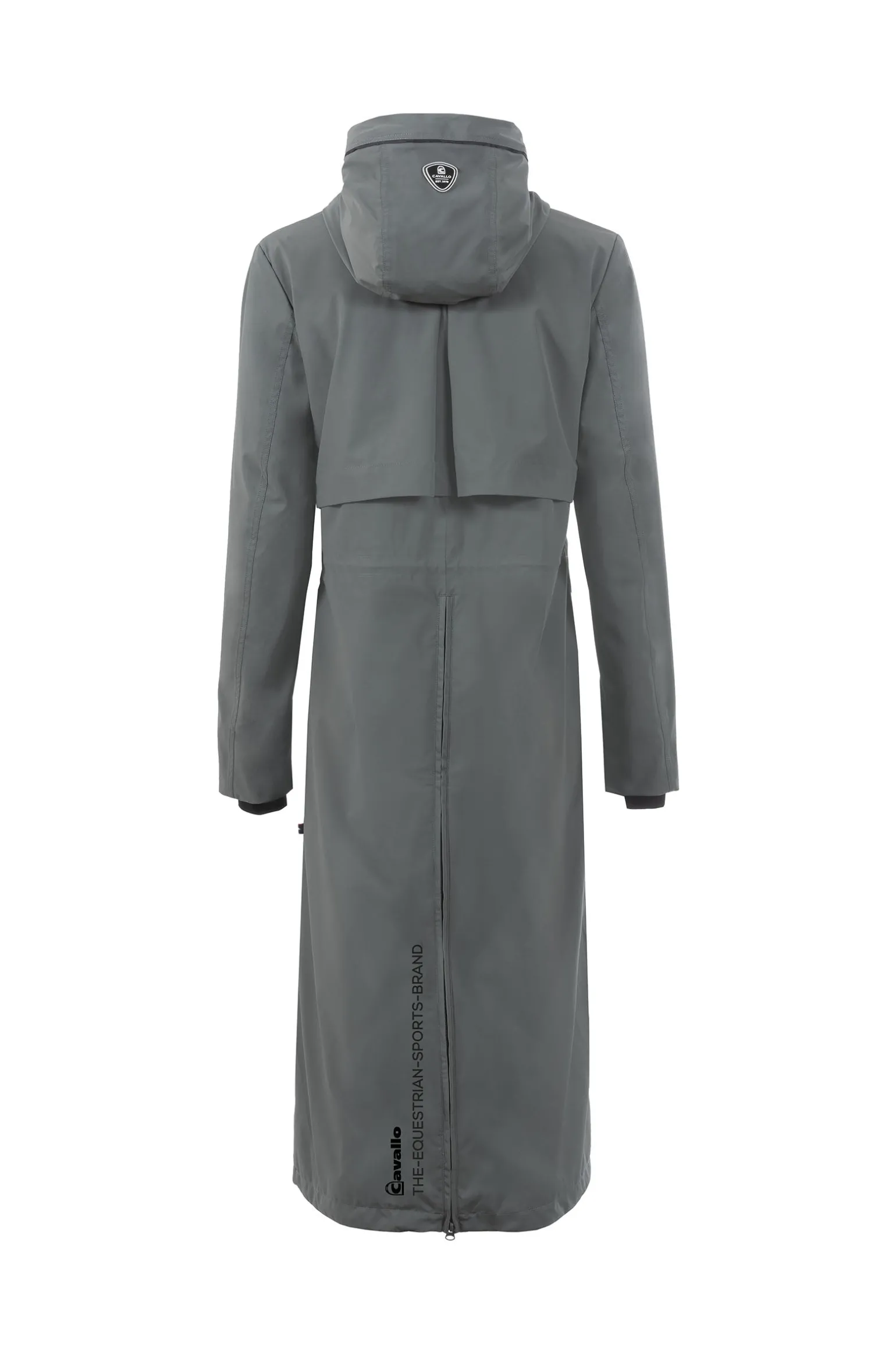 Der Cavallo Cavalnafisa Funktions-Regenmantel ist eine stilvolle und praktische Wahl für nasse Wetterbedingungen. Dieser lange Funktions-Regenmantel verfügt über eine angesetzte Kapuze mit hohem Kragen und einen individuell verstellbaren Kordelzug sowohl in der Kapuze als auch in der Taille für eine optimale Passform. Die Kapuze kann hinten mit einem Cavallo-Druckknopf fixiert werden, während ein hochwertiger Cavallo-Logo-Patch die Rückseite der Kapuze ziert. Für Leistung und Komfort entwickelt, bietet der Mantel einen schwarzen, wasserdichten 2-Wege-Frontreißverschluss, Schlitz-Taschen mit Reißverschluss und eine schmale, schwarze Rippblende für einen eleganten Look. Eine Frontpasse mit passendem Piping verleiht zusätzliche Raffinesse, während der schwarze 3D-Cavallo-Print auf der linken Brust und im Rückenschlitz das charakteristische Design betont. Im Inneren sorgt eine praktische Handytasche für zusätzlichen Komfort, während die Rückenpasse mit großer Kellerfalte und Mesh-Futter eine optimale Luftzirkulation und Bewegungsfreiheit gewährleistet. Der aufwendige Cavallo-Print in Off-White in der Mesh-Fütterung verleiht dem Design eine stilvolle Note. Ein Reißverschluss in der Rückenmitte vom Saum bis zu den Hüften ermöglicht bequemes Tragen beim Reiten, während der Rückenschlitz mit Einsatz und schwarzem Reflexstreifen das Sattelzeug vor Kratzern schützt. Ein schwarzer, reflektierender Cavallo-Print auf der rechten Tasche und eine wasserdichte Brusttasche mit Reißverschluss auf der linken Seite runden diesen hochfunktionalen und eleganten Regenmantel ab.