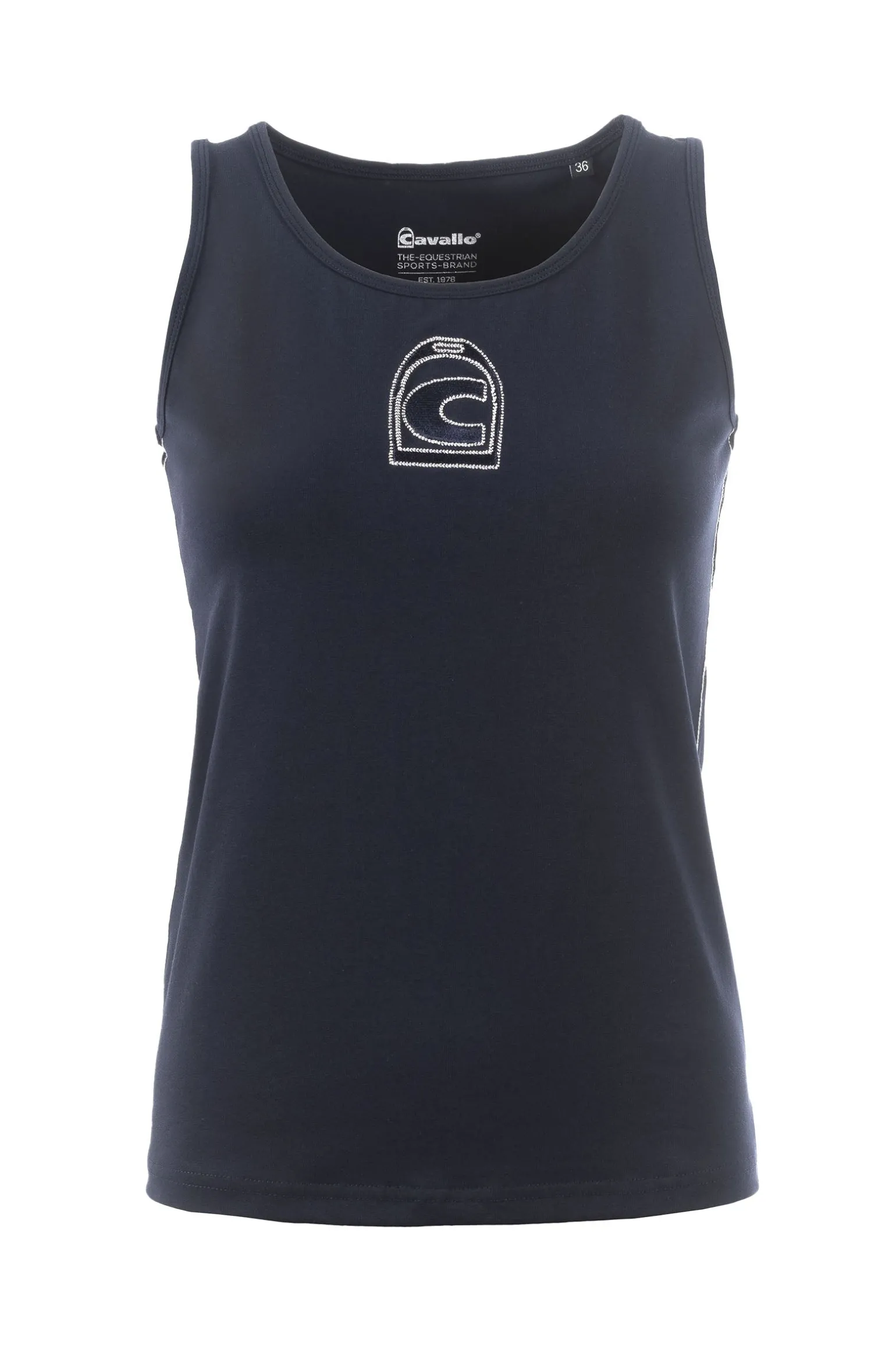 Das Cavallo Cavalnerys Damen-Top ist ein stilvolles und bequemes bi-elastisches Top aus Baumwolljersey. Mit einer großen, tonalen Cavallo-Steigbügelstickerei mit schimmernder silberner Umrandung auf der Brust verleiht es einen eleganten Touch. Schimmernde silberne Ziernähte entlang der Seitennähte unterstreichen die edle Optik. Ein Cavallo-Steigbügel-Print im Silber-Look in der Rückenmitte rundet das Design ab und macht dieses Top zur perfekten Kombination aus Stil und Funktionalität für den Alltag und das Reiten.