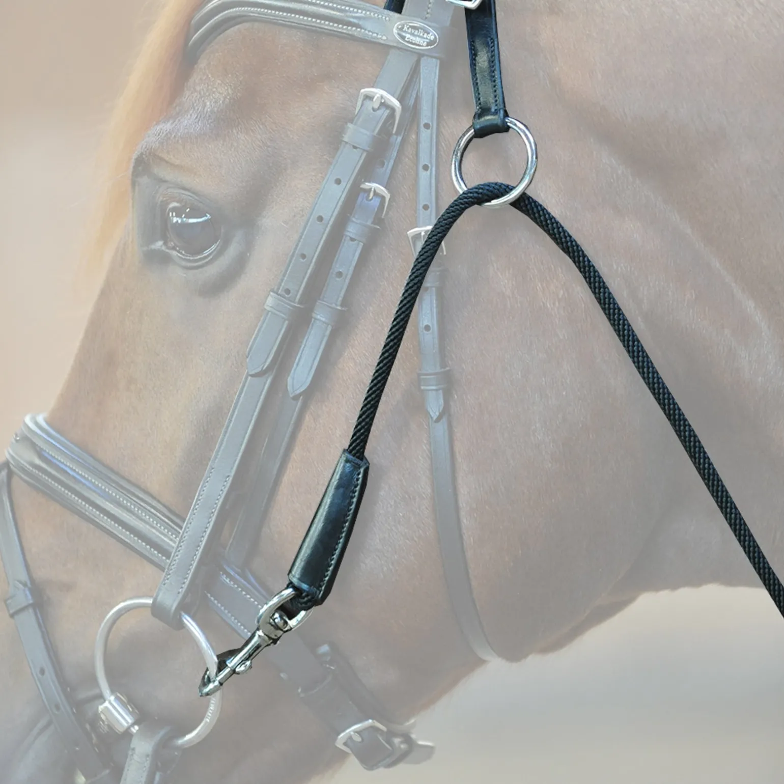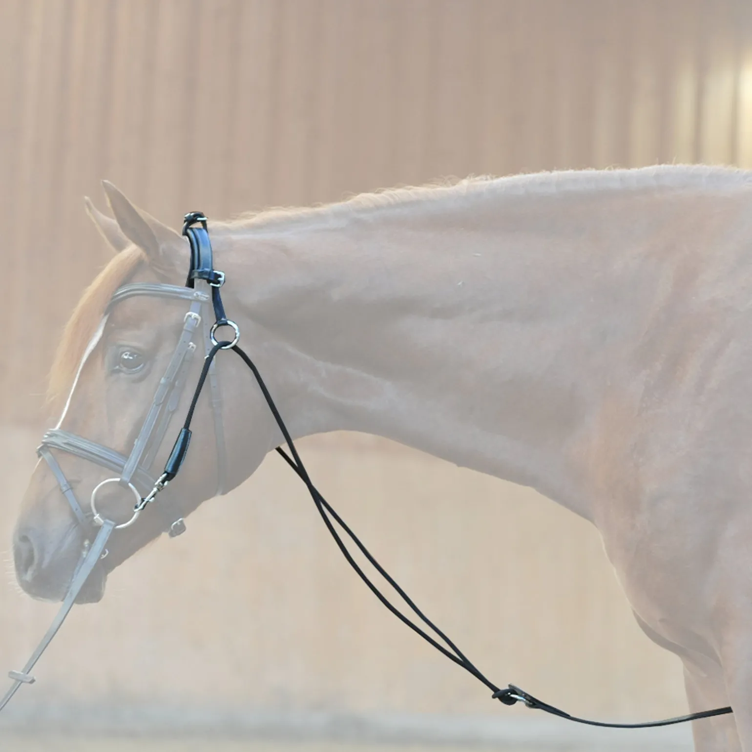 Das Chambon wird nur beim Longieren verwendet und soll ein Wegdrücken des Pferderückens verhindern. Es besteht aus drei Teilen und bringt dem Pferd durch Druck auf Genickstück und Maul bei, den Kopf zu senken und locker vorwärts-abwärts zu laufen.Das Chambon wird wie folgt verschnallt: Ein Riemen führt vom Sattelgurt zwischen den Vorderbeinen hindurch vor die Brust des Pferdes. Dort sind zwei lange Seile am Riemen angebracht, die durch die Ringe des Nackenstücks laufen und in die Gebissringe eingehakt werden. Bei hoher Kopfhaltung drückt das Chambon auf das Genick und die Maulwinkel des Pferdes. Sobald das Pferd Kopf und Hals senkt, lässt der Druck nach und fällt bei korrekter Haltung völlig weg. Dadurch entsteht eine Verlängerung des Halses vom Pferd. Es bevorteilt die ersten beiden Punkte der Skala der Ausbildung, Takt und Losgelassenheit. Dieser Hilfszügel eignet sich sehr gut für Pferde, die Mühe haben, den Hals fallen zu lassen und in die Dehnungshaltung zu finden. Das günstige Kavalkade-Chambon besteht aus einer hochwertigem Qualität, welches aus eeiner stabilen Perlonschnur und gutem reißfesten Leder besteht. Zudem überzeugt es durch enorme Langlebigkeit.
