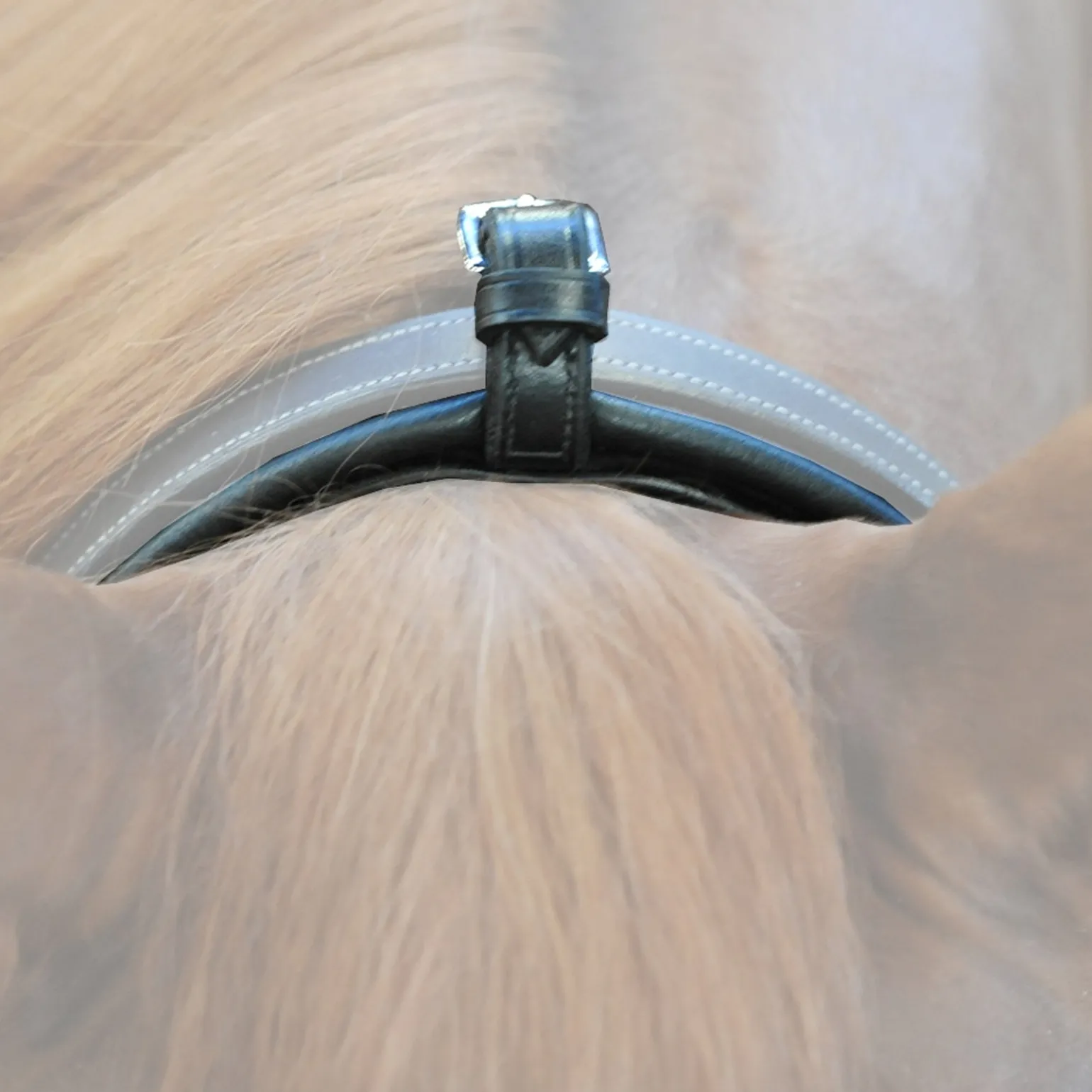 Made of quality leather. Consisting of head piece, leather loop for girth, round stitched nylonthread with hooks.