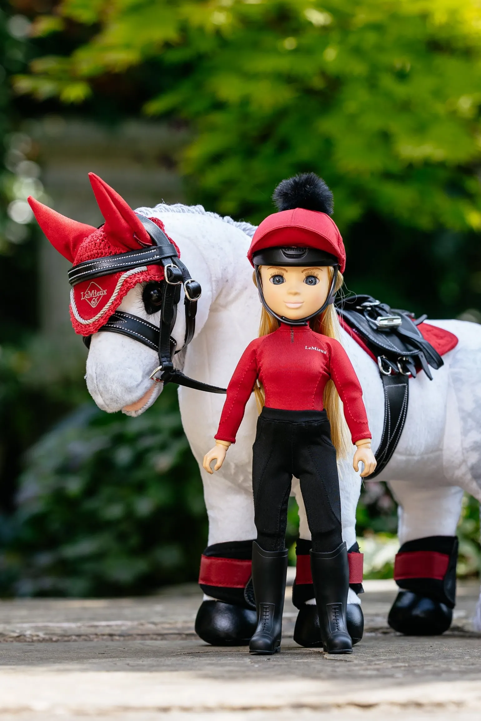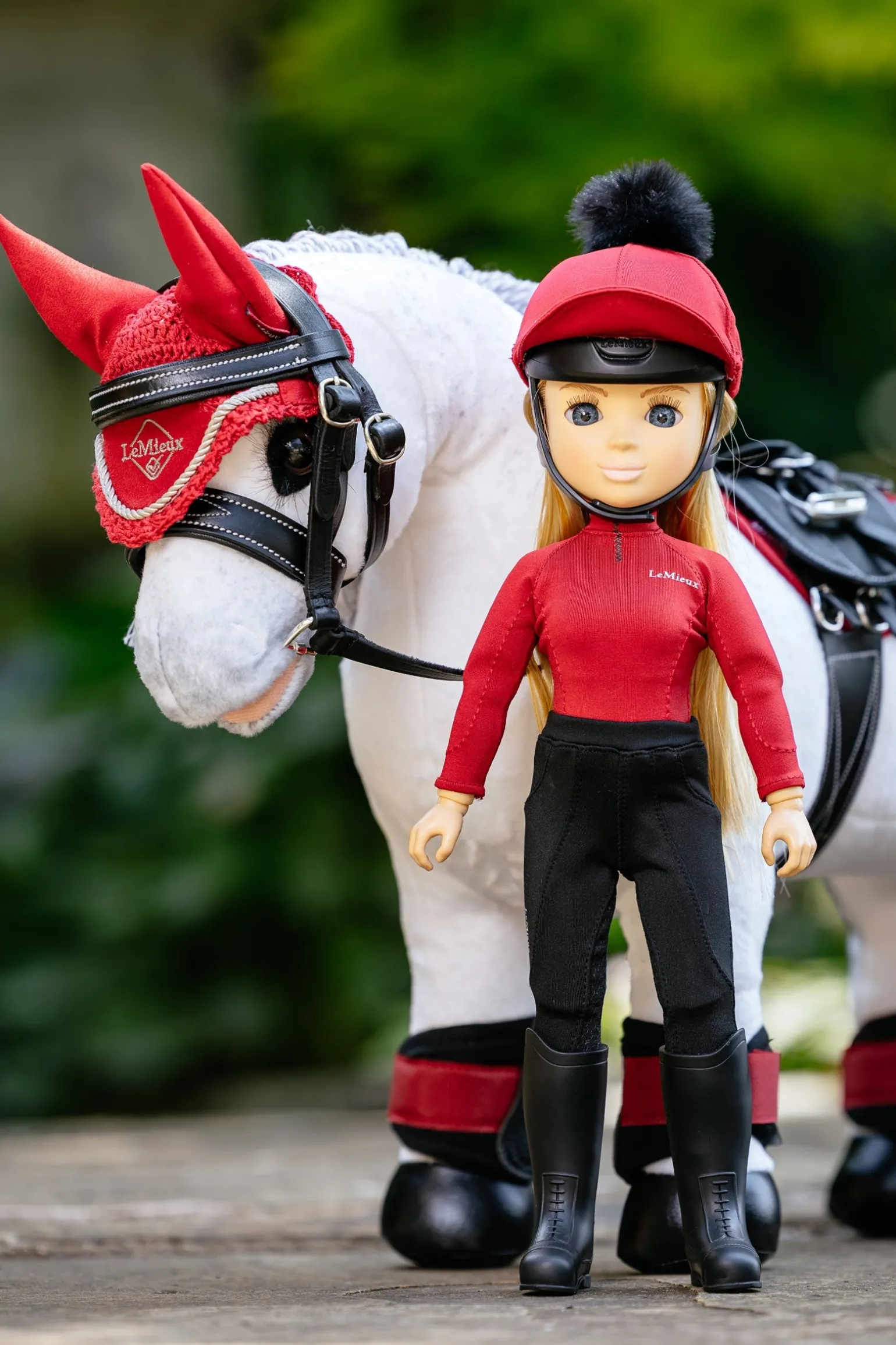 Chloe ist eine interaktive, voll bewegliche, hochwertige Reitpuppe mit Persönlichkeit und passenden Outfits in den LeMieux-Kernfarben. Sie hat weiches, langes, blondes Haar mit natürlichem Griff, das gebürstet werden kann, sowie Wimpern. Sie trägt ein abnehmbares Reitoutfit in Chilli Red – inklusive Reithelm und Reitstiefeln. Wenn Chloe auf einem Toy Pony mit Zubehör sitzt, reitet sie in korrekter Haltung, hält die Zügel und hat die Füße in den Steigbügeln. Sie kann selbstständig stehen und sitzt sicher im Sattel des Toy Ponys. Kinder lieben die realistischen Reiterspielszenen, die sie mit ihr gestalten können – und sie lernen dabei spielerisch alles rund ums Pferd und entwickeln ihre Reitfähigkeiten durch fantasievolles und sensorisches Rollenspiel.