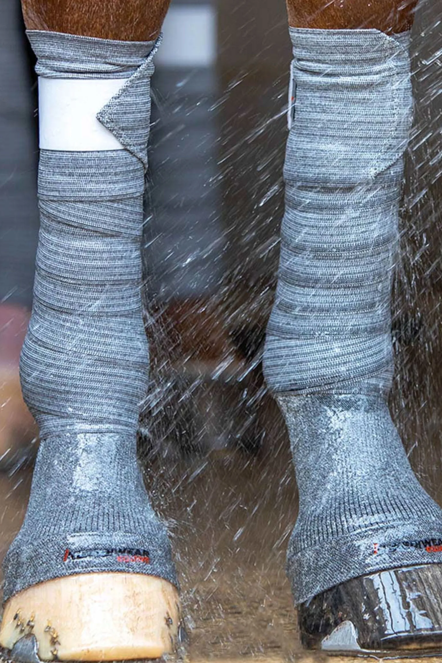 Besonderer Vorteil der Incrediwear Equine Bandagen: Im nassen Zustand wirken sie ähnlich wie ein Ice-Pack. Das Tiefengewebe wird gekühlt, während die Körperwärme auf der Oberfläche der Haut und der Bandagen abtransportiert wird. Dazu ist kein Kühlpack notwendig und die Wirkung kann unendlich oft wiederholt werden.