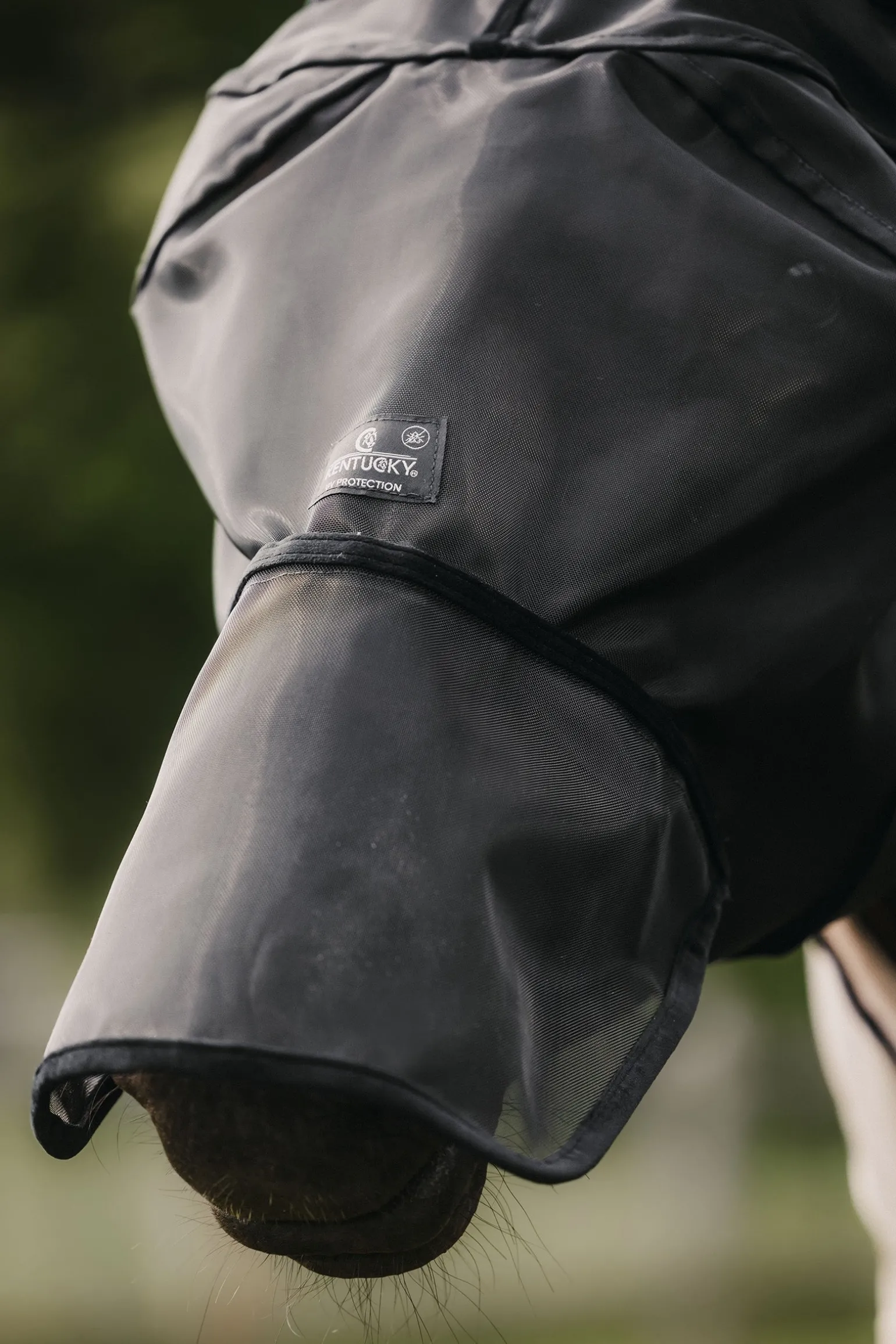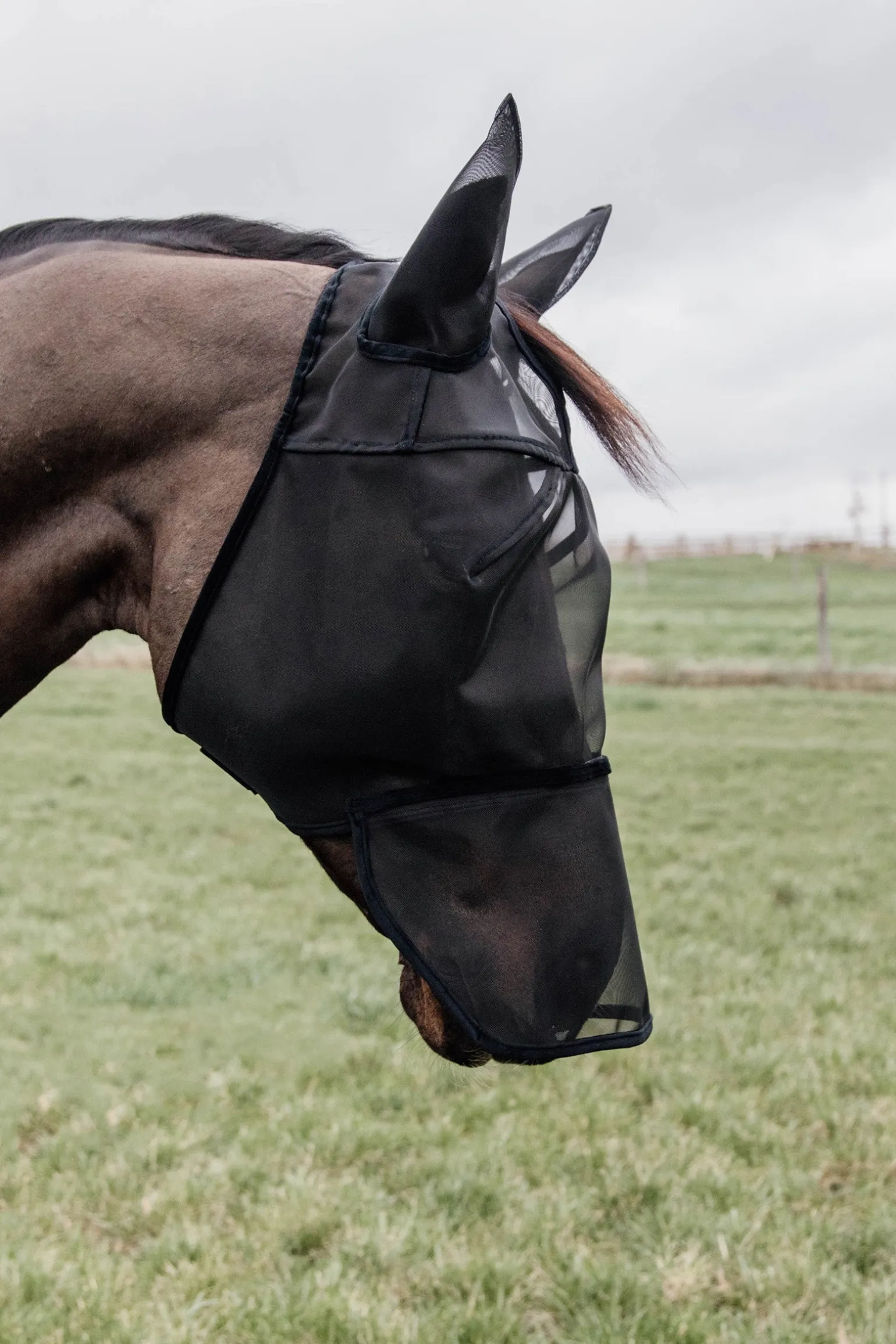 Die Fliegenmaske Classic mit Ohren- & Nüsternschutz bietet maximalen Schutz vor Insekten, ohne dabei das Pferd zu stören. Sie ist ideal für Pferde, die sehr empfindlich auf Insekten reagieren. Die Maske ist aus robustem und dennoch atmungsaktivem Mesh-Gewebe gefertigt. Die Ohren der Fliegenmaske bestehen aus robustem, sehr effektivem Fliegen Strickgewebe. Sie ist sehr atmungsaktiv und für heiße Sommertage angenehm leicht. Der Nasenschutz ist mit einem Klettverschluss befestigt und kann abgenommen werden, so lässt sich die Art des Schutzes, den die Maske bietet, leicht verändern.