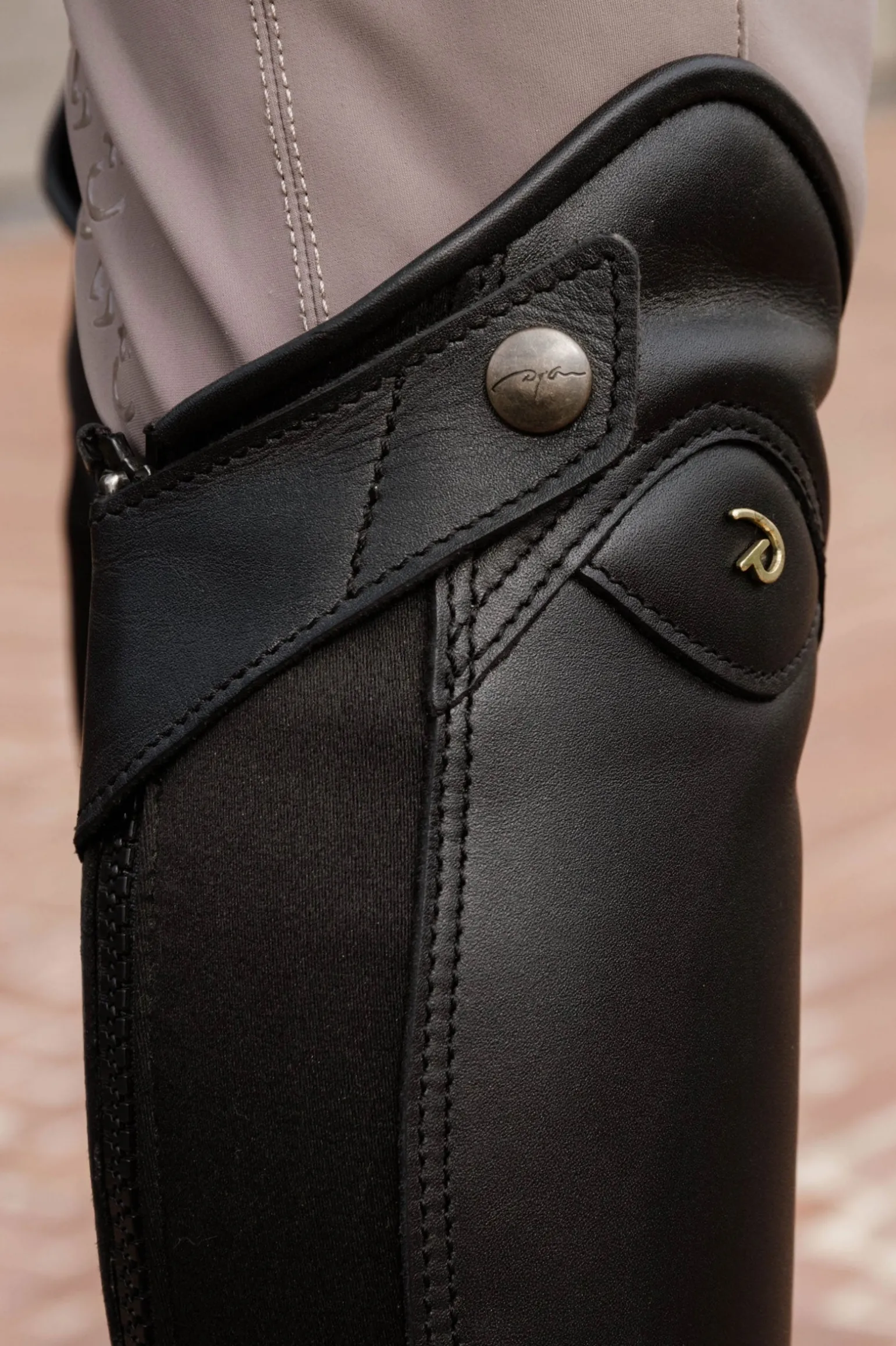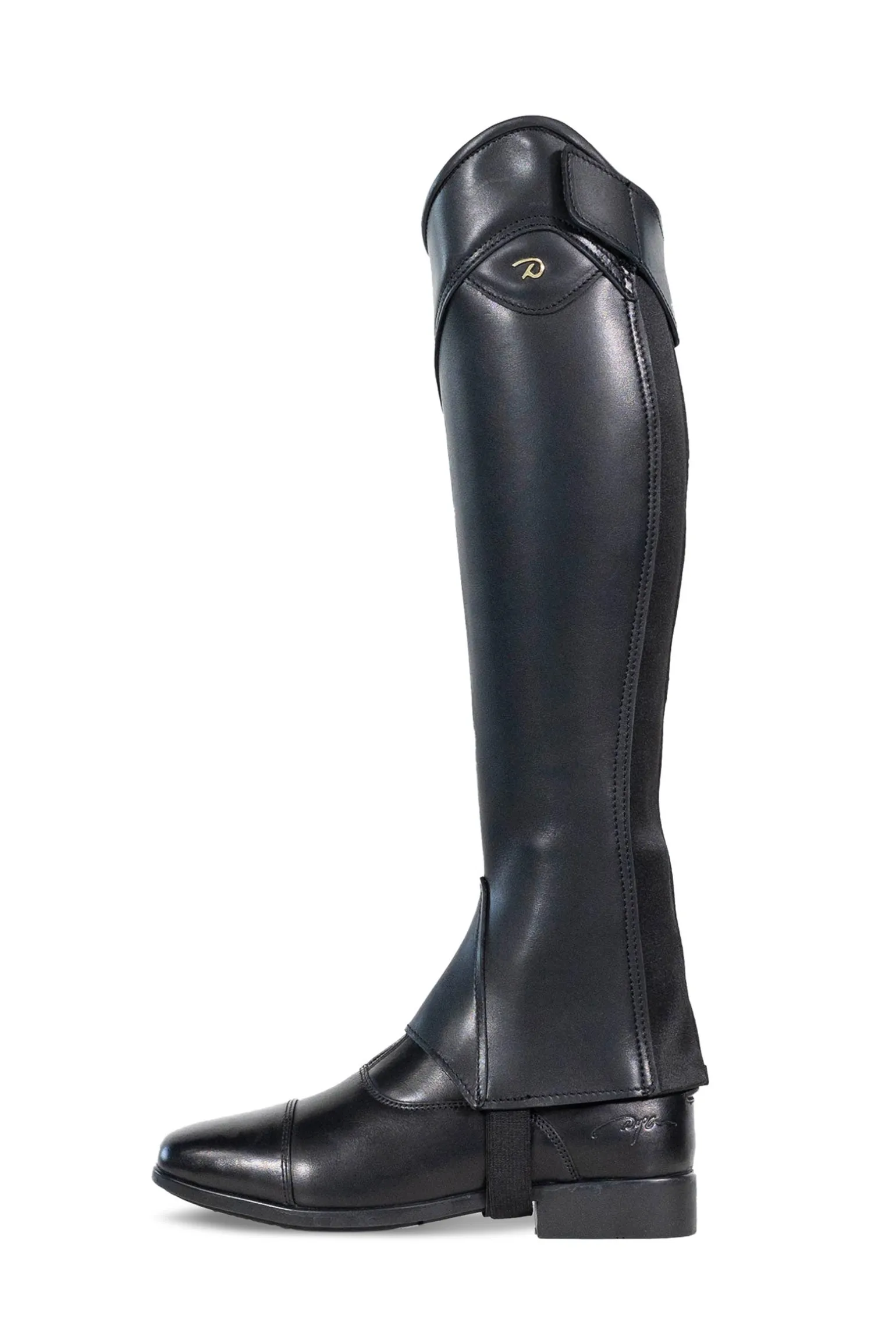 Diese Minichaps sind speziell für eine langlebige Leistung entwickelt und damit ein unverzichtbarer Bestandteil deiner Reitausrüstung für Turniere. Sie bieten einen sicheren und bequemen Sitz und gewährleisten gleichzeitig festen Halt im Sattel, was optimale Leistung und ein elegantes Erscheinungsbild ermöglicht. Dank des elastischen Streifens entlang der Beinrückseite sowie der elastischen Bänder unter Knie und Fuß bieten sie Flexibilität und passen sich deinen Bewegungen an. Der Verschluss mit Schutzpolster und eingebrachtem Klettband sorgt für einfache Anpassung, sicheren Sitz und optimalen Komfort.