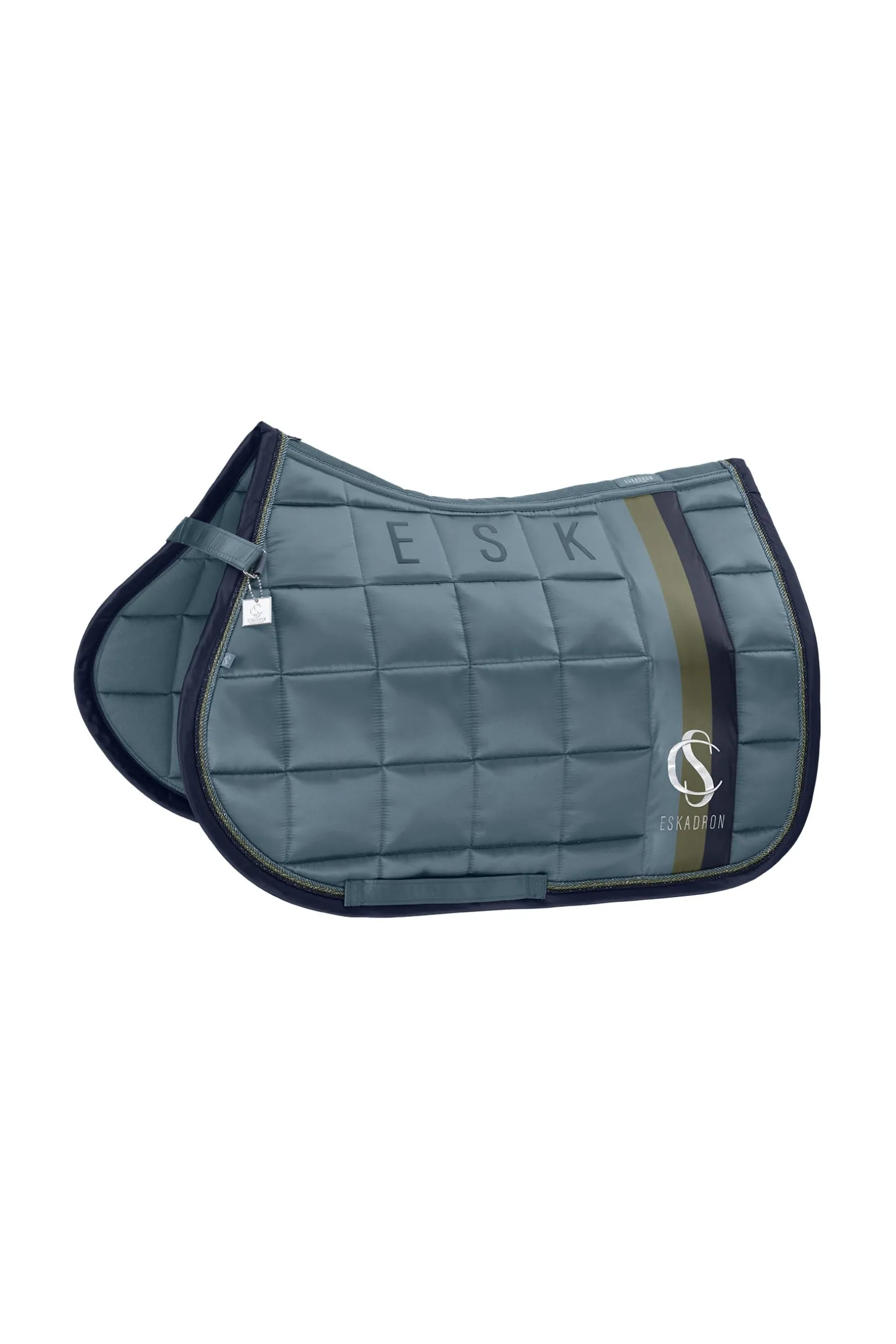 Die Eskadron Classic Sports SS25 Big Square Mattgloss Vielseitigkeitsschabracke vereint Eleganz und Funktionalität. Das edle mattglänzende Obermaterial verleiht ihr eine hochwertige Optik, während das cool-dry Innenfutter für optimale Feuchtigkeitsregulierung sorgt. Die voluminöse Big Square-Steppung bietet hervorragende Polsterung und Komfort für dein Pferd. Für höchste Performance ausgestattet, verfügt diese Schabracke über rutschfeste Silikonflächen im Sattelbereich für mehr Stabilität. Die vertikalen Streifen mit dem Classic Sports-Emblem setzen einen stilvollen Akzent, ergänzt durch die dreifache Lurex-Kordel auf der mattglänzenden Einfassung. Für maximale Atmungsaktivität sorgt ein Mesh-Rückenkanal für optimale Luftzirkulation, während das Innostrap-System eine sichere Frontfixierung ermöglicht. Das Gurtband mit dreifacher Befestigungsmöglichkeit sorgt für eine flexible Anpassung und perfekten Sitz.