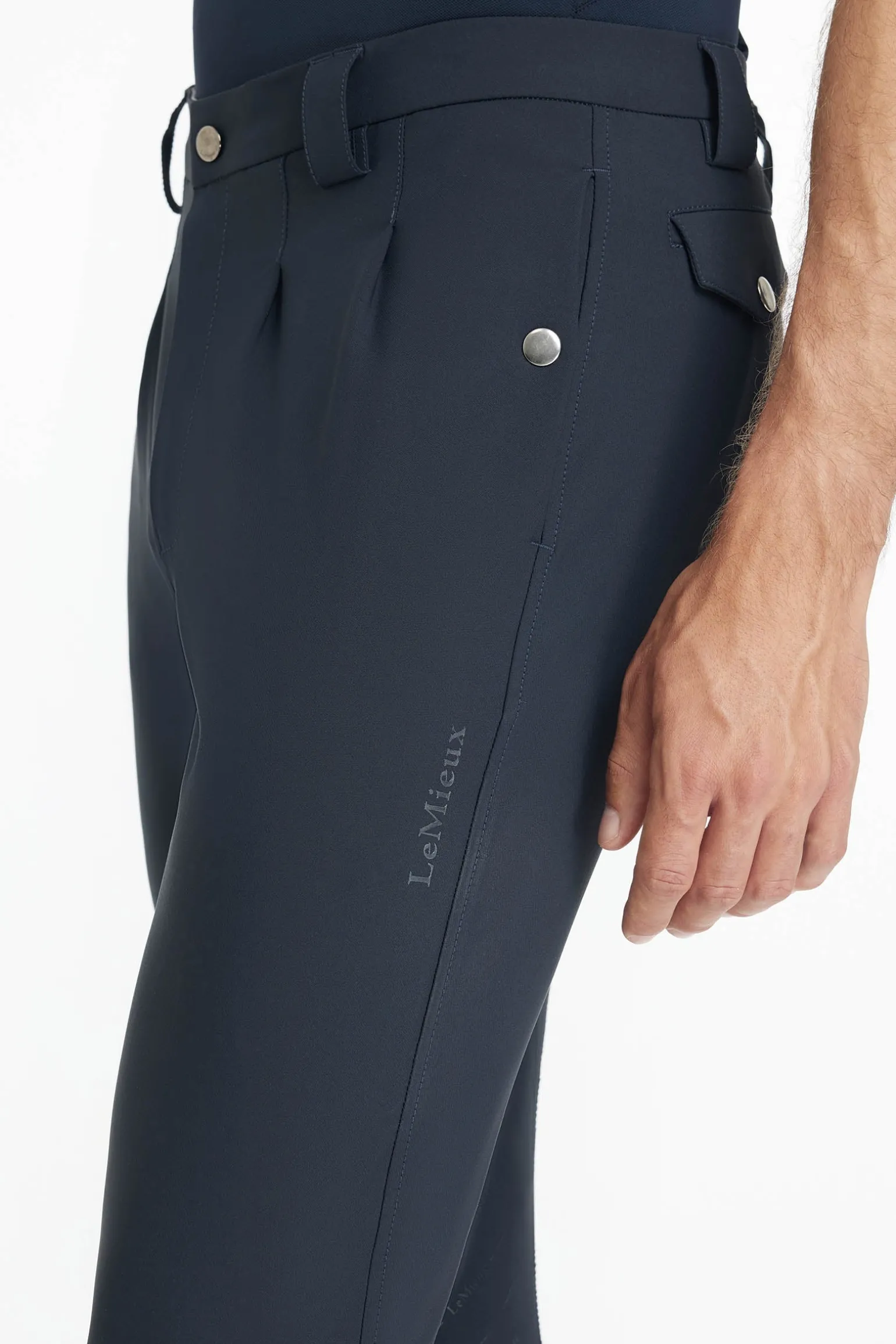 Diese Must-Have-Reithose wurden speziell für Männer mit all der Funktionalität und dem Stil entwickelt, den du von LeMieux erwartest. Die weit geschnittene Reithose aus nachgiebigem Vier-Wege-Stretch mit Falten vorne für Komfort und uneingeschränkte Bewegungsfreiheit unterstützt dich bei jeder Bewegung. Der schmal zulaufende Beinschnitt fühlt sich unter Stiefeln glatt an und die praktischen Taschen vorne und hinten bieten Platz für alle Notwendigkeiten. Das griffige Silikonband innen am Bund verhindert, dass sie bei egal welchen Aktivitäten nach oben oder unten rutscht.