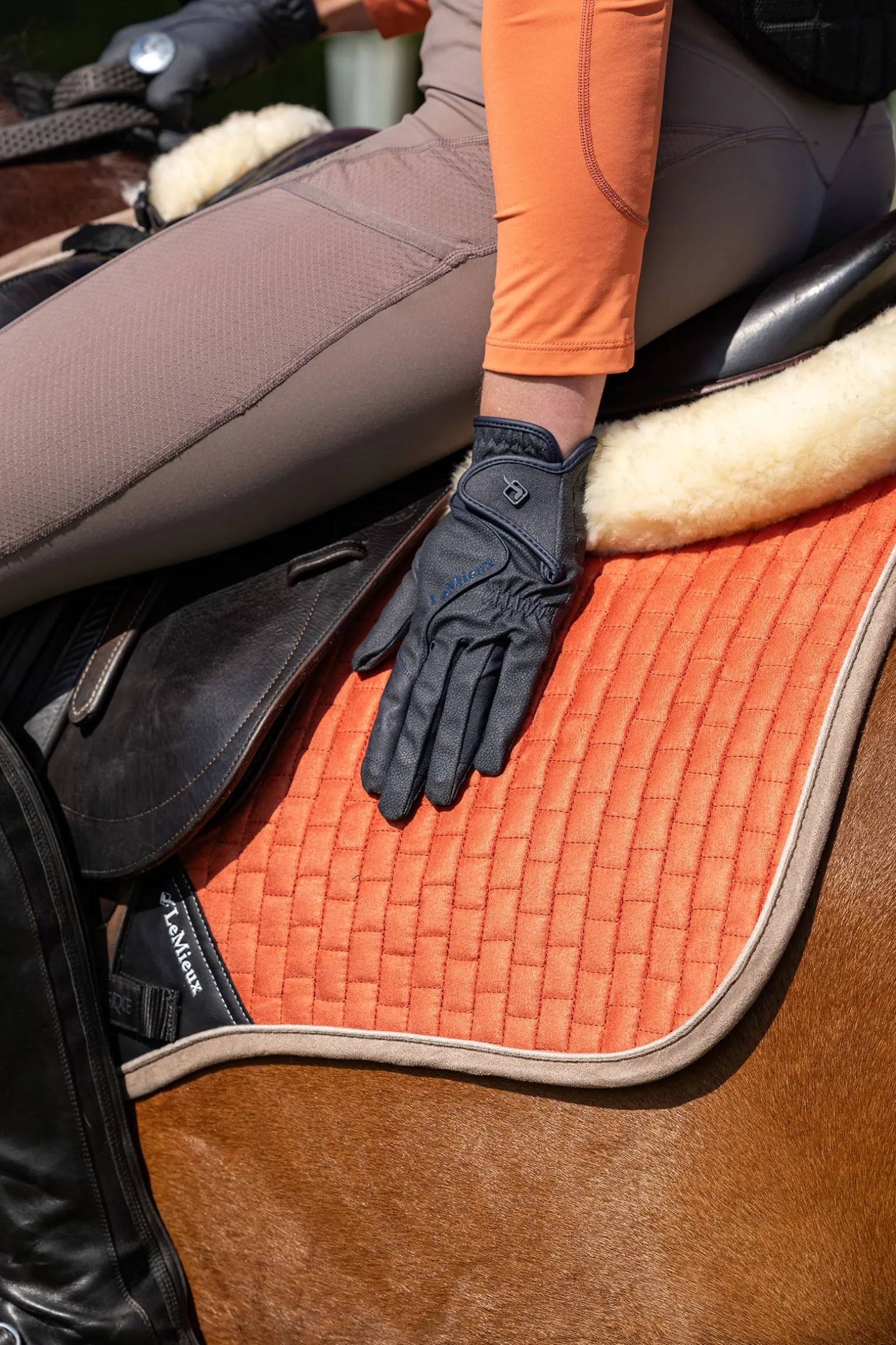 Aus einem neuen, innovativen Funktionsmaterial mit klassischer Optik gefertigt, bieten die Close Contact Reithandschuhe hohe Atmungsaktivität – für ein angenehm kühles und komfortables Tragegefühl an aktiven Reittagen. Ideal zum Reiten: Der doppelte Zügelgrip und die neue Nahtführung ermöglichen eine besonders feine Verbindung zum Pferdemaul. Ein sicherer Klettverschluss und das strukturierte LeMieux-Branding runden das Design stilvoll ab.