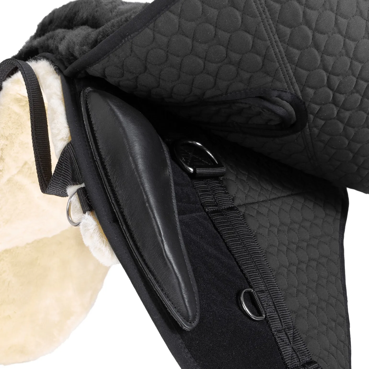 Der Fellsattel CLOUD Spezial hat auf der Unterseite komplett Lammfell. Wie bei den Satteldecken Spezial ist die Wollhöhe im Kissenbereich 30mm und an den Seiten 15mm. Der CLOUD Spezial hat ein Sattelblatt und ein Schweißblatt was die Verwendung der klettbaren Lederpauschen ermöglicht. Diese geben zusätzlichen Halt und ermöglichen auch gymnastische Sprünge. Das Hinterzwiesel erhält seine Passform durch einen speziellen Verbundschaumkern, der bereits als Sitz vorgeformt ist. Wie bei allen CHRIST Fellsätteln können Steigbügel angebracht werden. Verbundschaumeinlagen sind serienmäßig enthalten.