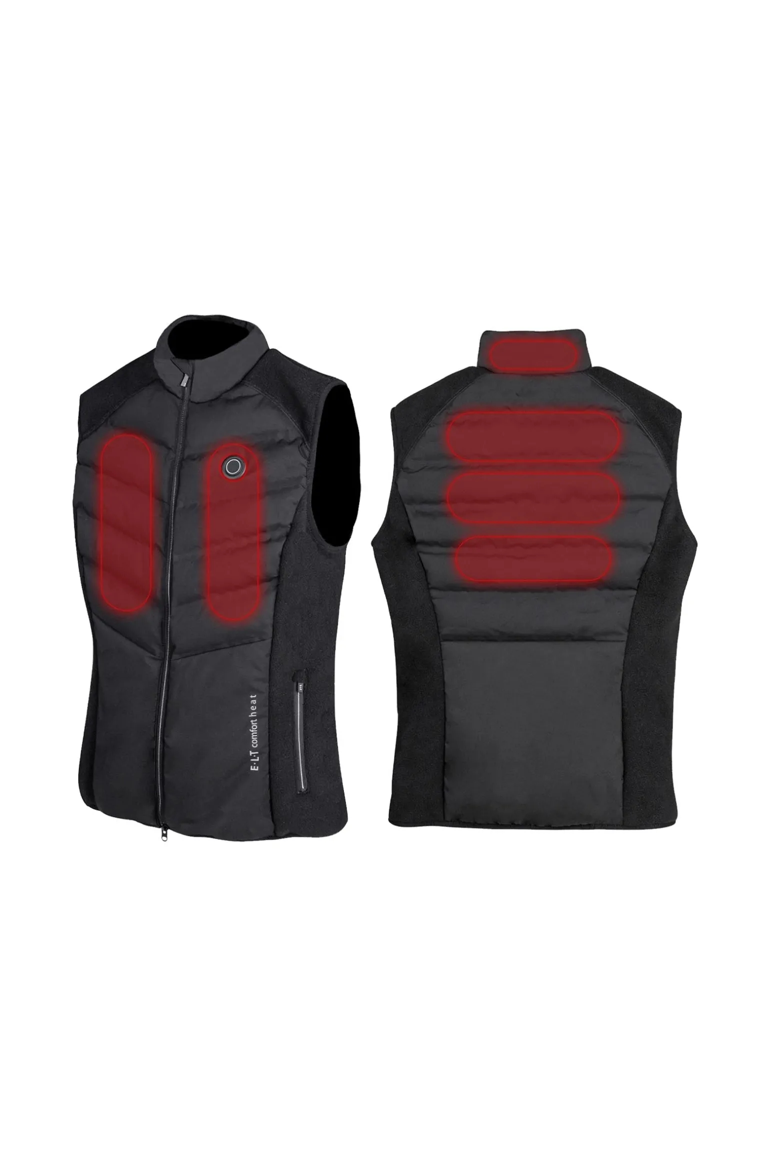 Die beheizbare Steppweste überzeugt mit einer leicht taillierten Passform und einem durchdachten Material-Mix: Vorder- und Rückenteil aus wind- und wasserabweisender Webware, Seitenteile und Schulterpartie aus Fleece. Das integrierte Fern-Infrarot Heizsystem (5 V 2A USB) ermöglicht die Nutzung mit handelsüblichen Powerbanks. Mit 6 Heizelementen – 2 vorne, 1 im hinteren Kragen und 3 im Rücken – bietet die Weste drei einstellbare Heiztemperaturen (45 °C, 50 °C, 55 °C), die farblich am Einschaltknopf angezeigt werden. Praktische Details wie eine Innentasche mit USB-Anschluss, hochwertige 2-Wege-Reißverschlüsse mit Semi-lock Puller und seitliche Reißverschlusstaschen machen die Weste besonders komfortabel. Der E·L·T Comfort Heat Schriftzug ergänzt das moderne Design. Hinweis: Powerbank nicht im Lieferumfang enthalten, passende Waldhausen Powerbank separat erhältlich.
