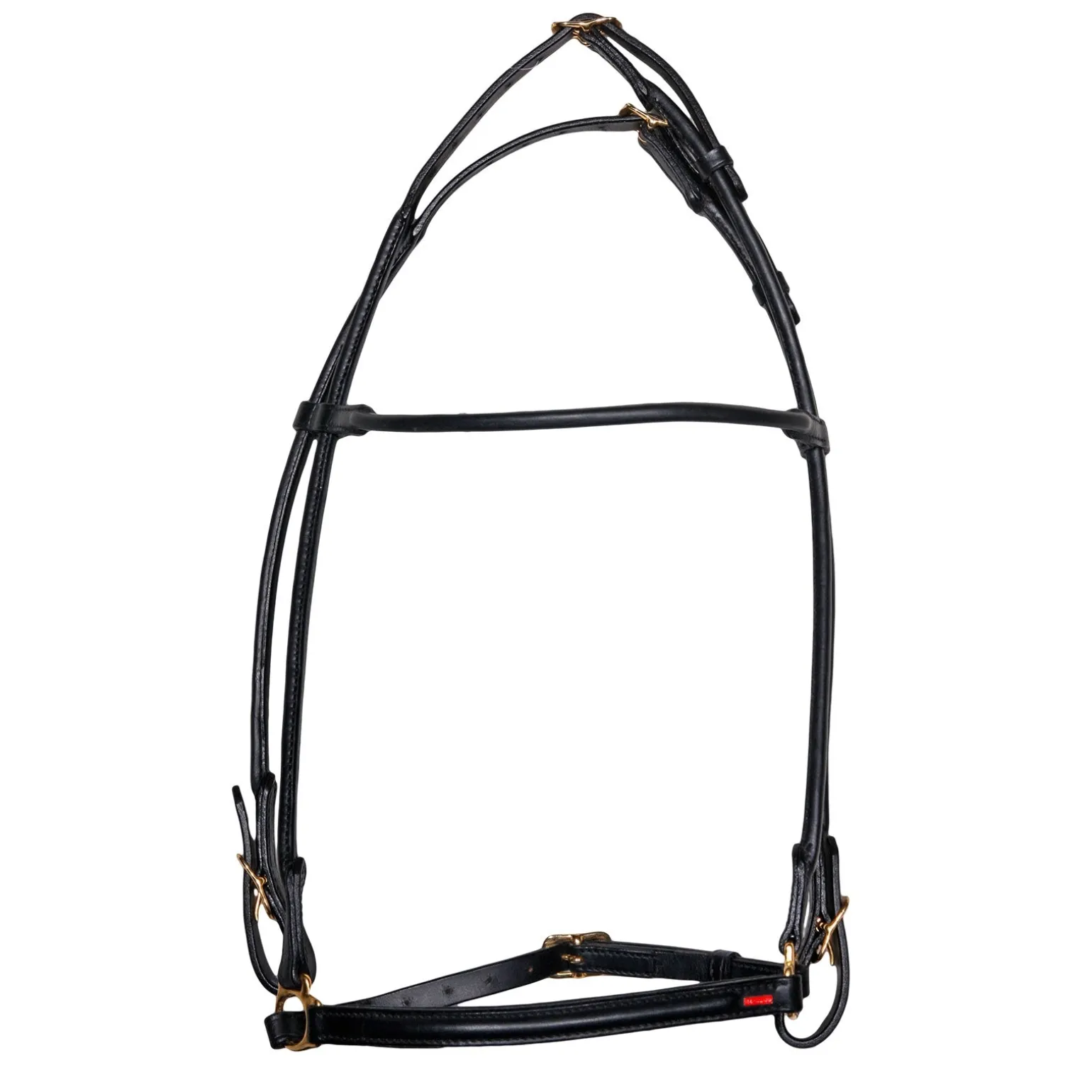 Eleganter, rundgenähter Zaum in sehr guter Qualität. Aus einem Stück hergestellt, sodass die Seitenteile parallel verlaufen.