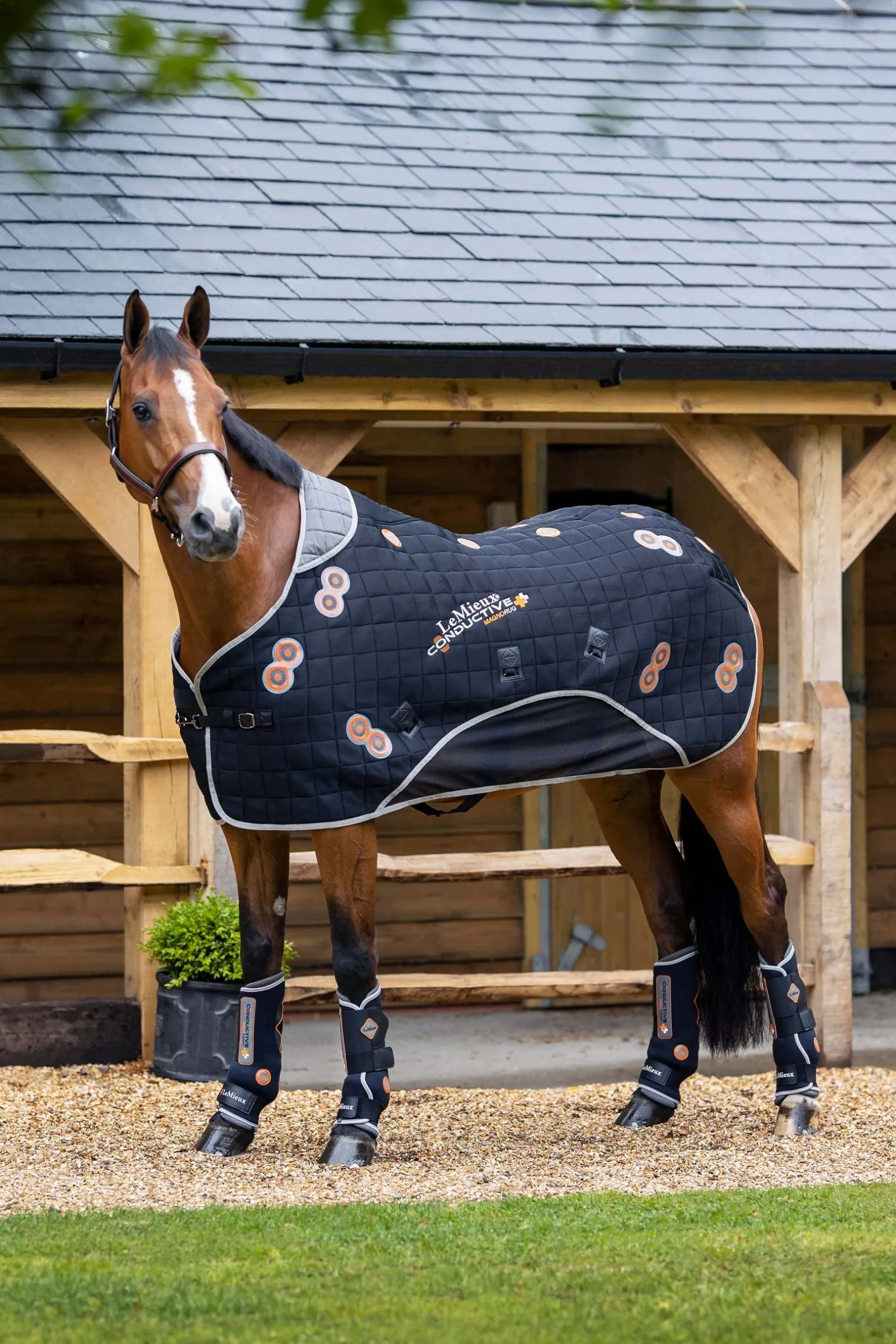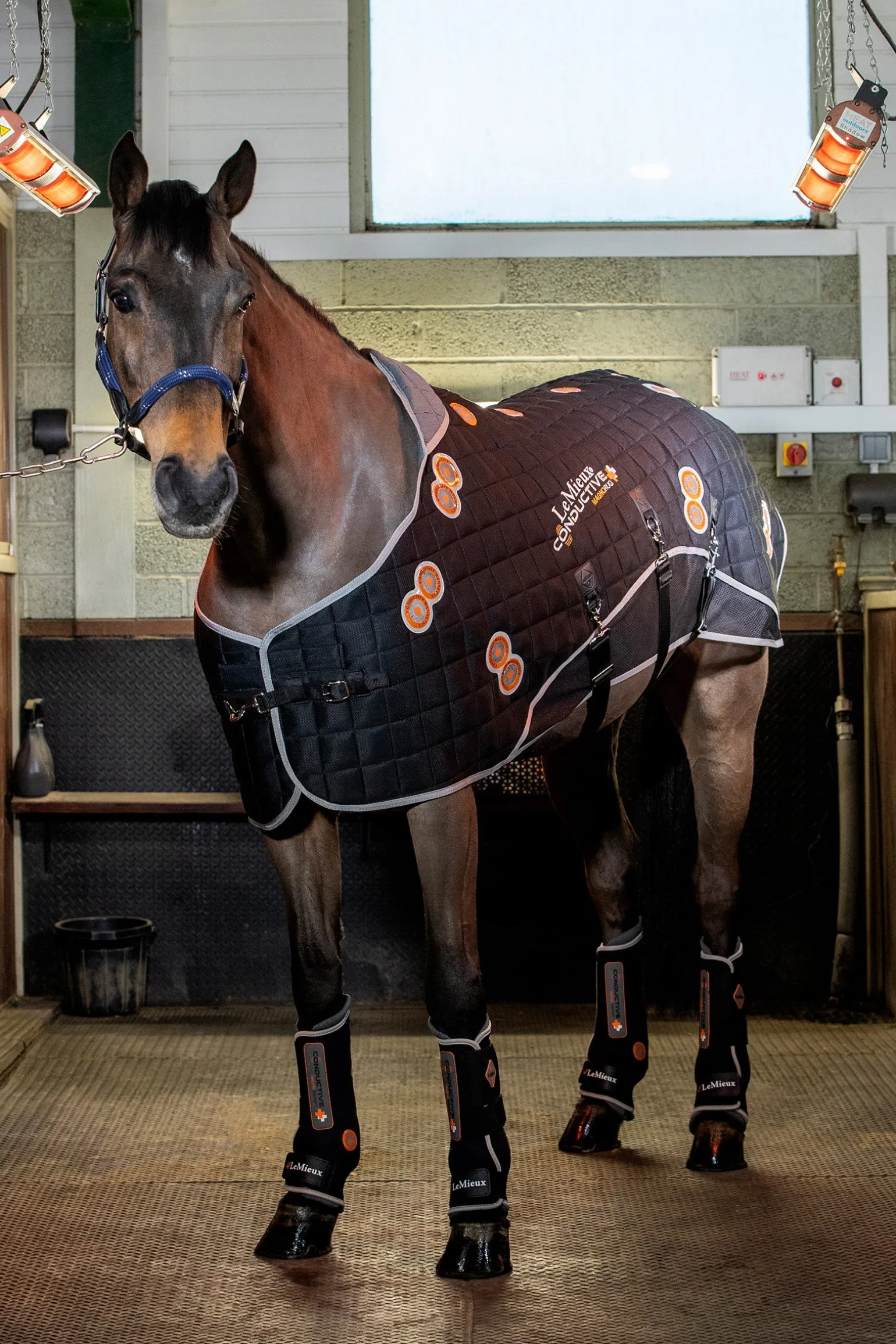 Die LeMieux Conductive Magno Rug läutet einen neuen Ansatz in der Magnettherapie ein. Einzigartige Innenschichten enthalten eine gewebte Schicht aus Stahlfasern direkt unter leistungsstarken 2600-Gauss-Doppelmagneten, die an Schlüsselstellen über Schulter, Ellenbogen, Hüfte, Kniegelenk, Oberschenkel und an beiden Seiten der Wirbelsäule platziert sind. Die Stahlfäden leiten die magnetischen Wellen gleichmäßig um das Futter herum und bringen so den gesamten Oberkörper in das Magnetfeld. Die atmungsaktive Oberseite aus 3D Mesh leitet die von den Magneten aufgestaute Wärme ab. Mit den 3-fach verstellbaren Bauchgurten kannst du die Decke gut an dein Pferd anpassen und so die optimale Magnetwirkung erzielen.