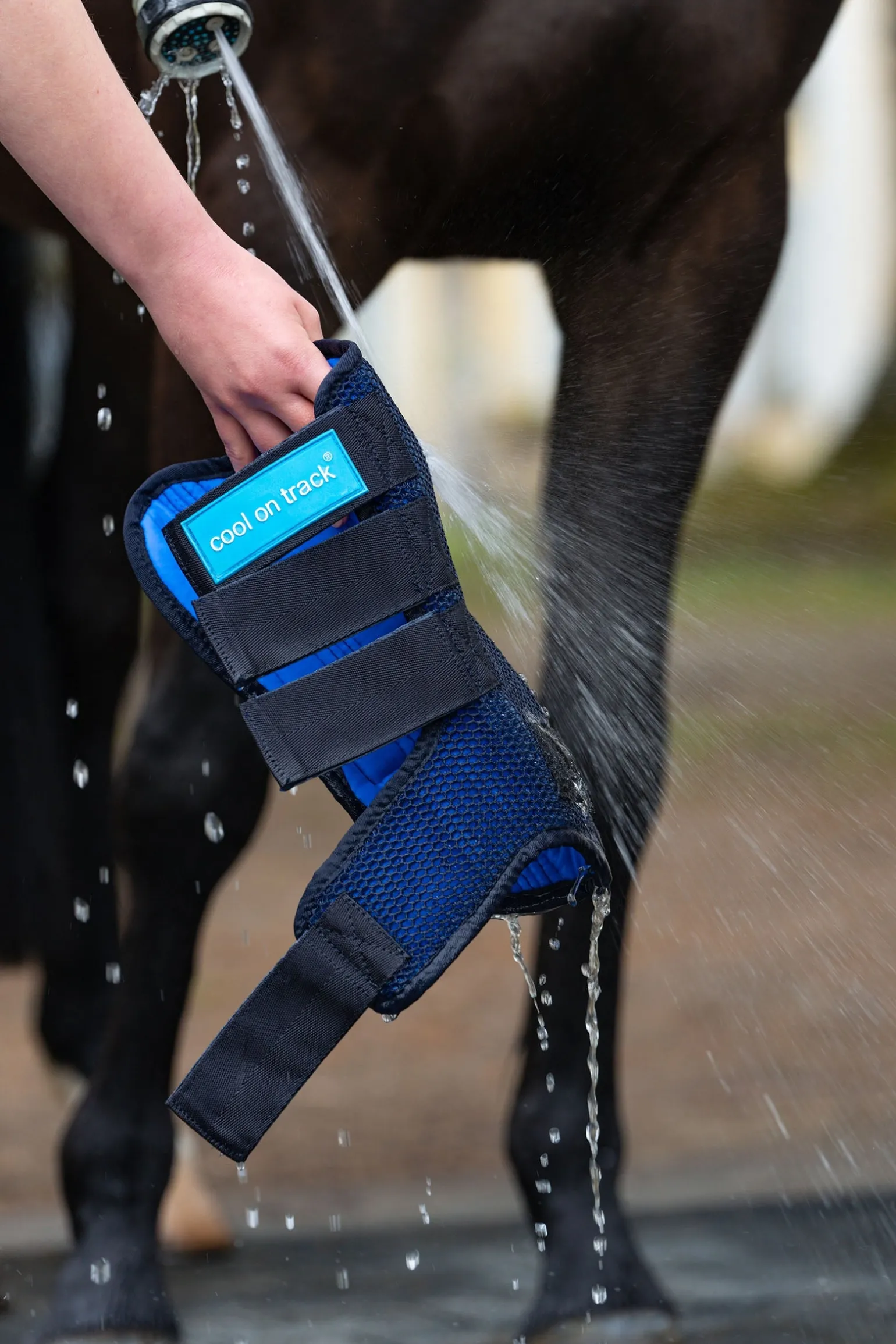 Hochwertige Gamaschen, die den unteren Teil des Pferdebeins präzise umschließen und eine kühlende Wirkung auf die Sehnen ausüben. Cool on Track™️ Gamaschen helfen, die Temperatur nach intensiver Arbeit und Bewegung zu senken. Die Kältetherapie kann das Risiko von Problemen durch überhitztes Gewebe verringern sowie Entzündungen, Schwellungen und Schmerzen lindern. Cool on Track™️ ist ein technisches, sehr saugfähiges Material, das die Temperatur durch die Verdunstung von Wasser um etwa 6° C senkt. Es kommen keine Chemikalien zum Einsatz und es ist keine Tiefkühlung erforderlich. Das Produkt wird einfach in Wasser getränkt, und sobald das überschüssige Wasser herausgedrückt ist, ist es einsatzbereit. Das Material behält seine Kühlwirkung, solange es feucht bleibt. Das Produkt kann durch erneutes Eintauchen wiederverwendet werden. Die Außenseite besteht aus einem robusten Netzgewebe mit großen Maschen, die eine effiziente Verdunstung des Wassers ermöglichen und die Form der Gamasche beibehalten. Die Cool on Track™️ Gamaschen werden mit Klettbändern geschlossen und fixiert. Wird paarweise verkauft, für das rechte und linke Bein.