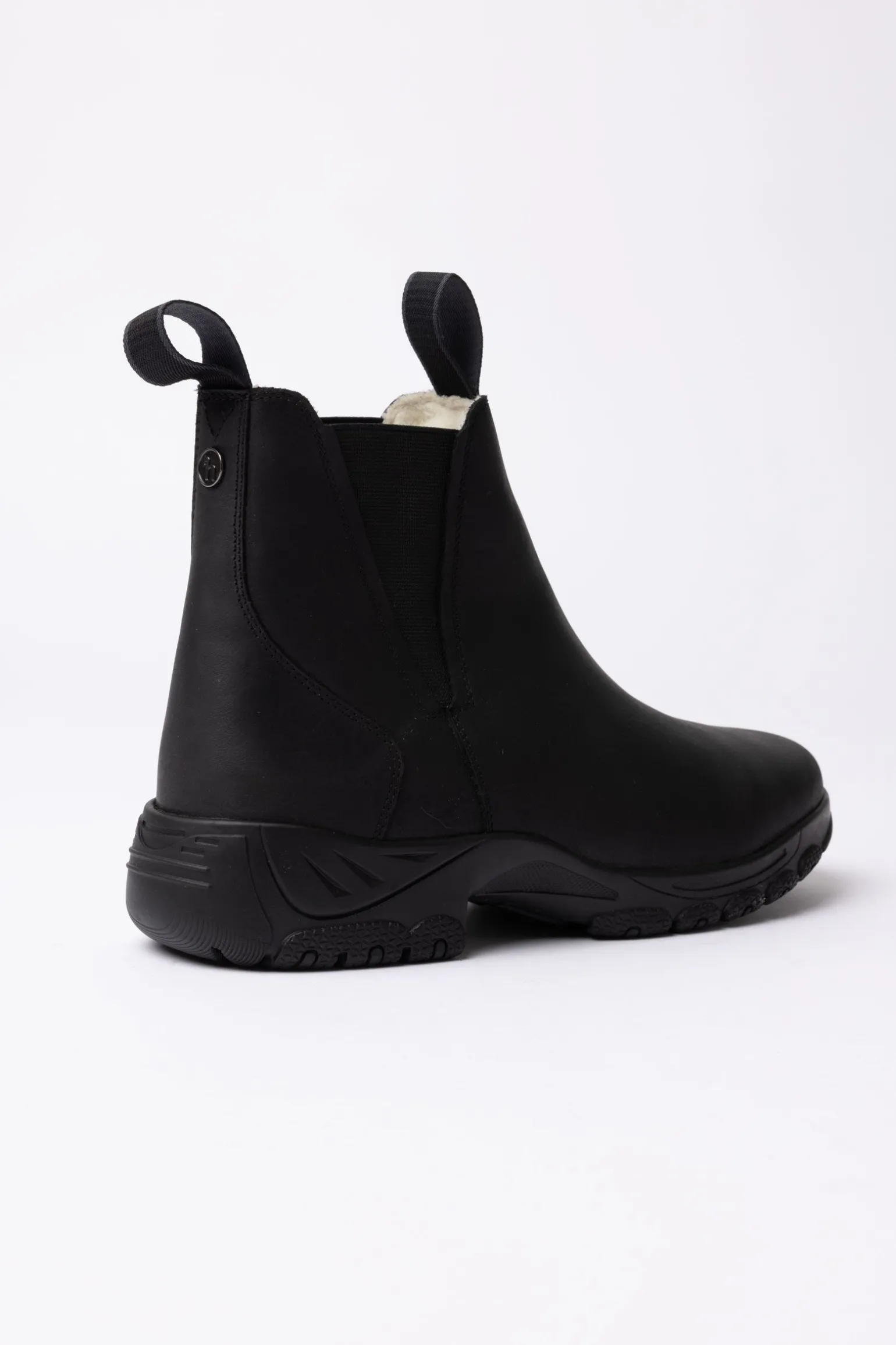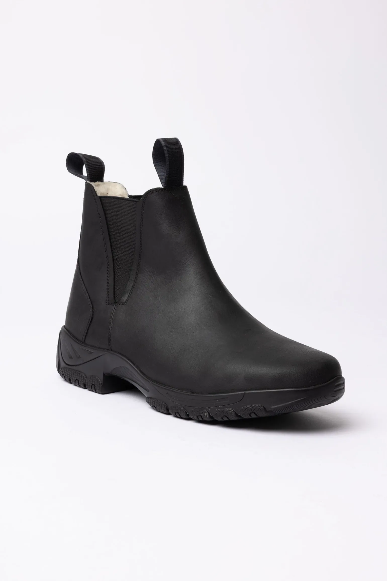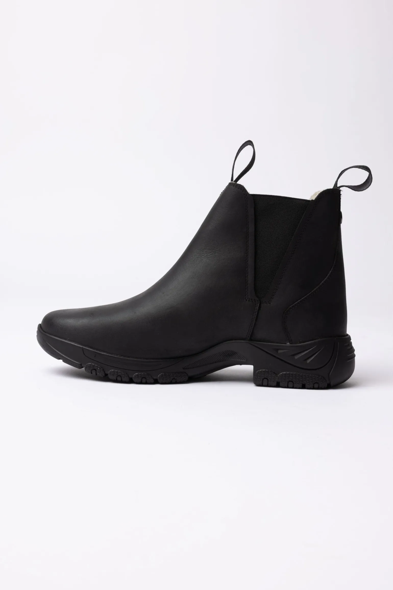 Diese Jodhpur-Stiefel verbinden zeitlosen Stil mit kuscheligem Komfort. Gefertigt aus echtem Leder mit wasserabweisender Oberfläche bieten sie Strapazierfähigkeit und Schutz bei feuchtem Wetter. Das Futter aus 100 % Wolle hält deine Füße angenehm warm, während elastische Einsätze an den Seiten Flexibilität und eine bequeme Passform gewährleisten. Mit den Zuglaschen vorne und hinten lassen sich die Stiefel leicht an- und ausziehen – eine praktische und stilvolle Wahl für kalte Tage im Stall oder in der Stadt.
