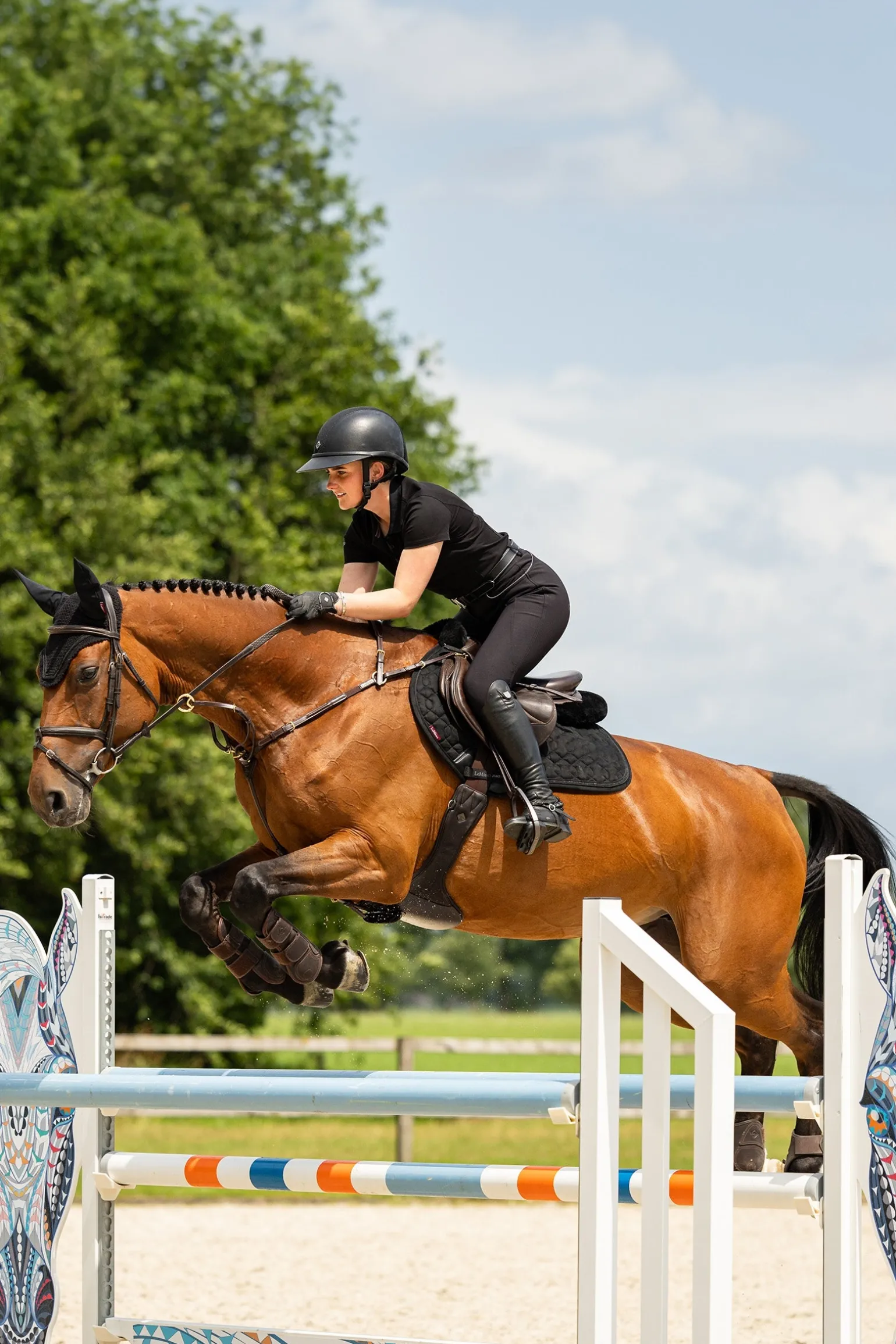 Die Schabracke ist so geformt, dass sie unter vorgeschnittenen Springsätteln sicher sitzt, egal ob du im Parcours bist oder auf dem Reitplatz trainierst. Außerdem ist sie mit einem temperaturregulierenden Bambusfutter ausgestattet, das Schweiß und Feuchtigkeit direkt von der Haut deines Pferdes ableitet, damit es sich bei jedem Wetter wohl fühlt. Ein weiterer Vorteil von Bambus ist, dass es die Reibung minimiert, was diese Schabracke besonders für Pferde mit empfindlicher Haut interessant macht.