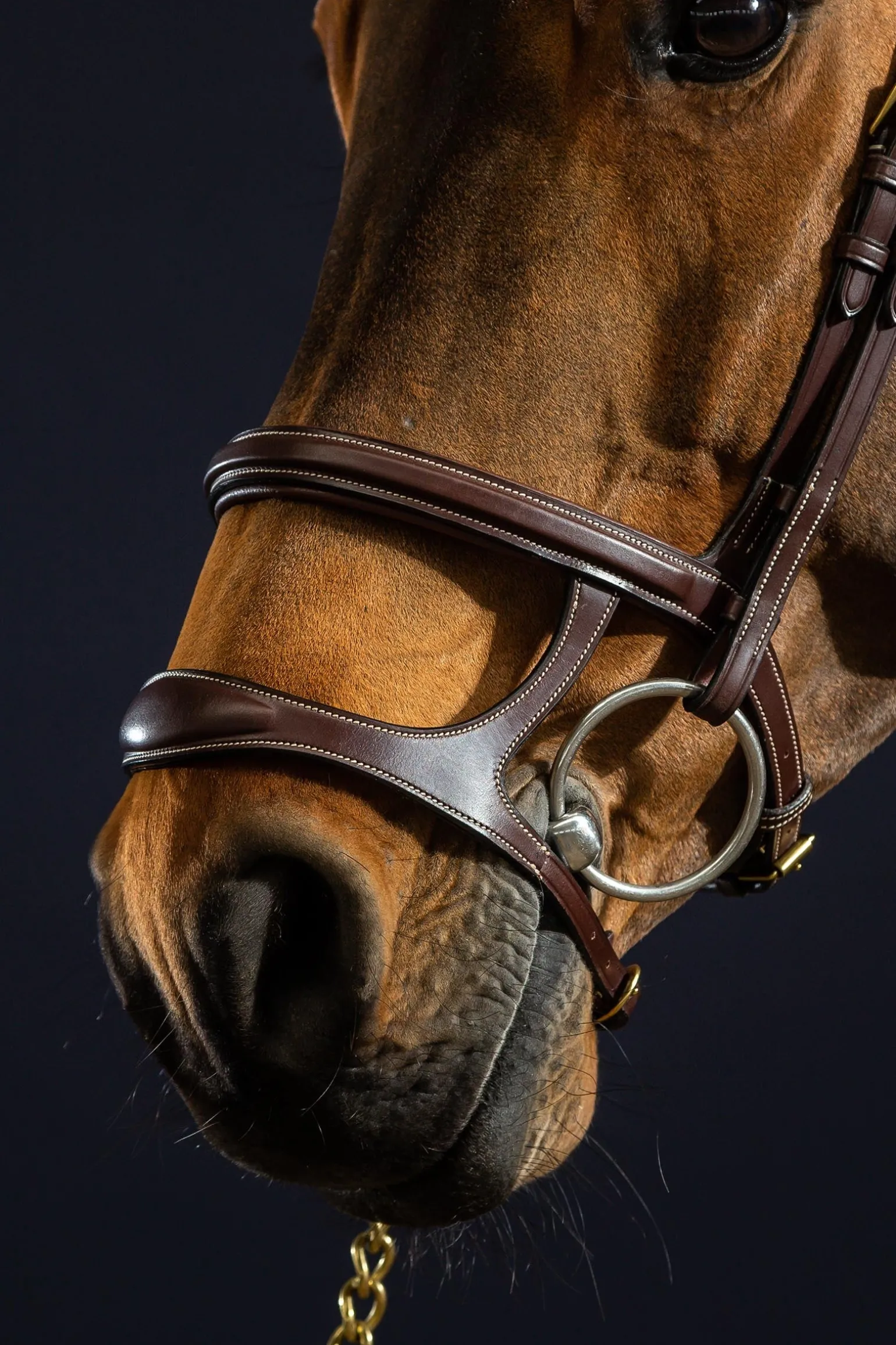Entdecke unvergleichliche Kontrolle und stilvolle Eleganz mit der Dy’on Trense mit Doppelnasenriemen. Das innovative Design mit zwei parallel verlaufenden Nasenriemen bietet mehrere Kontaktpunkte und sorgt für mehr Kontrolle, indem es das Maul deines Pferdes geschlossen hält und die Konzentration sowie die Reaktionsbereitschaft fördert. Besonders nützlich ist sie für Pferde, die zusätzliche Führung und Stabilität benötigen. Der Tragekomfort steht an erster Stelle: Weiche Polster verhindern Scheuern und sorgen für eine gleichmäßige Druckverteilung. Die verstellbaren Backenstücke ermöglichen eine individuelle Anpassung an verschiedene Kopfformen und -größen, sodass sie perfekt sitzt. Kombiniere sie mit passenden Dy’on-Zügeln oder einem Martingal für einen stimmigen und professionellen Look.