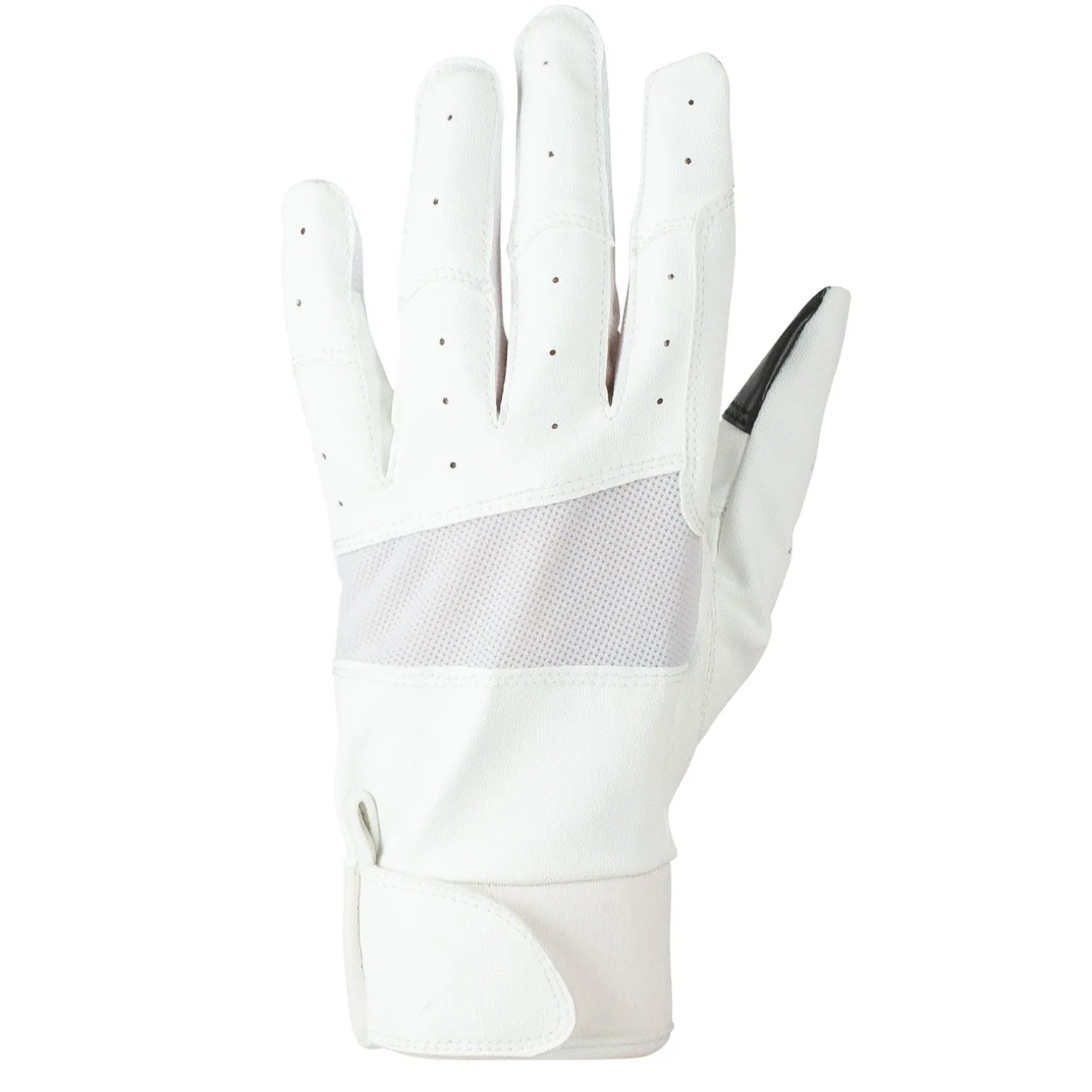 Diese Reithandschuhe aus weichem Kunstleder mit Netzeinsätzen bieten die ideale Belüftung. Die Bündchen aus weichem Neopren sind bequem und elastisch, und der verstellbare Riemen sorgt für die perfekte Passform. Synthetisches Leder auf der Handfläche sorgt für guten Halt, und das kleine Metall-Logo ist ein dezentes Detail.